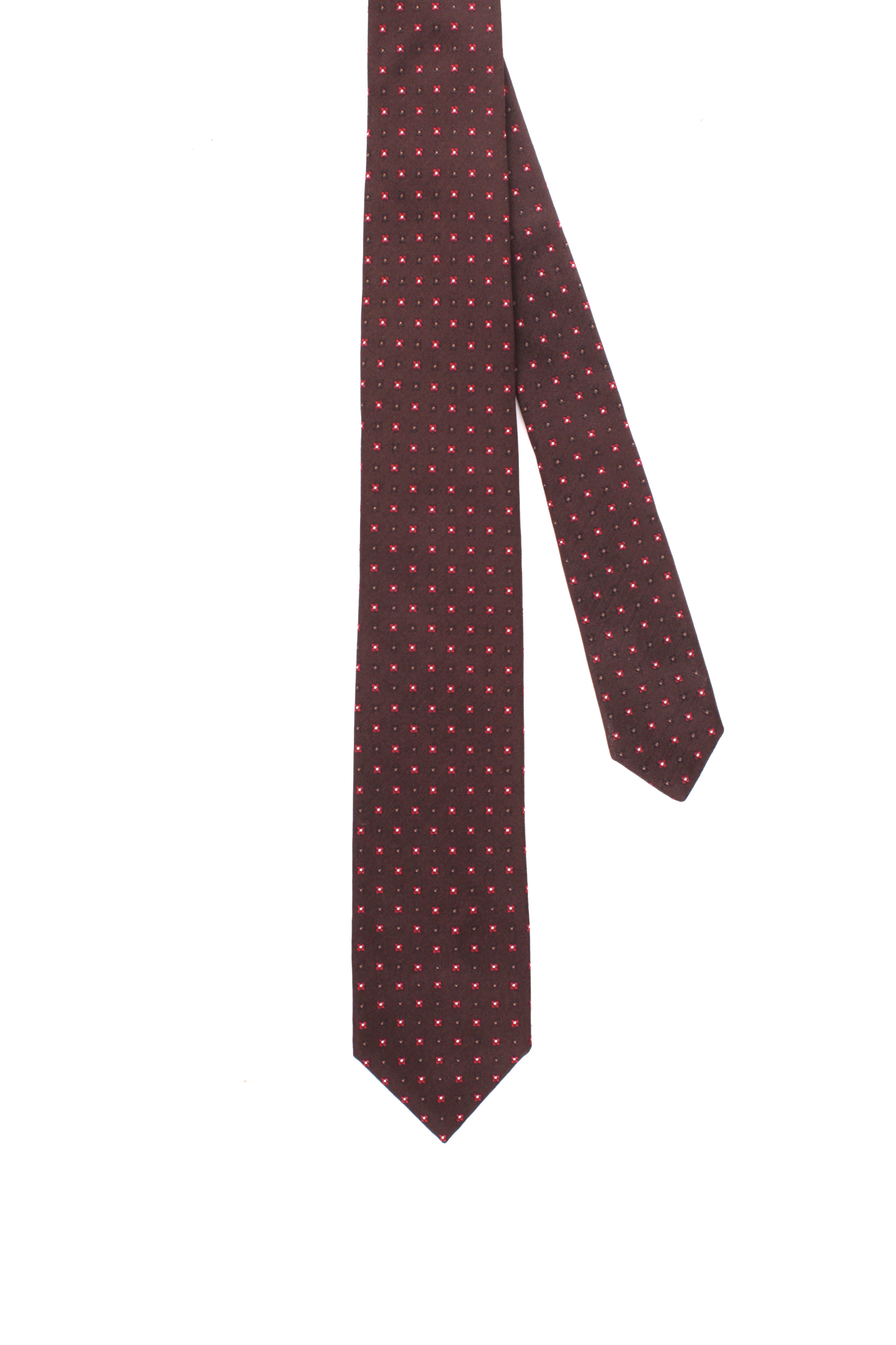 CRAVATTA IN SETA MARRONE 7 PIEGHE CON MICRO FANTASIA ROSSA BARBA