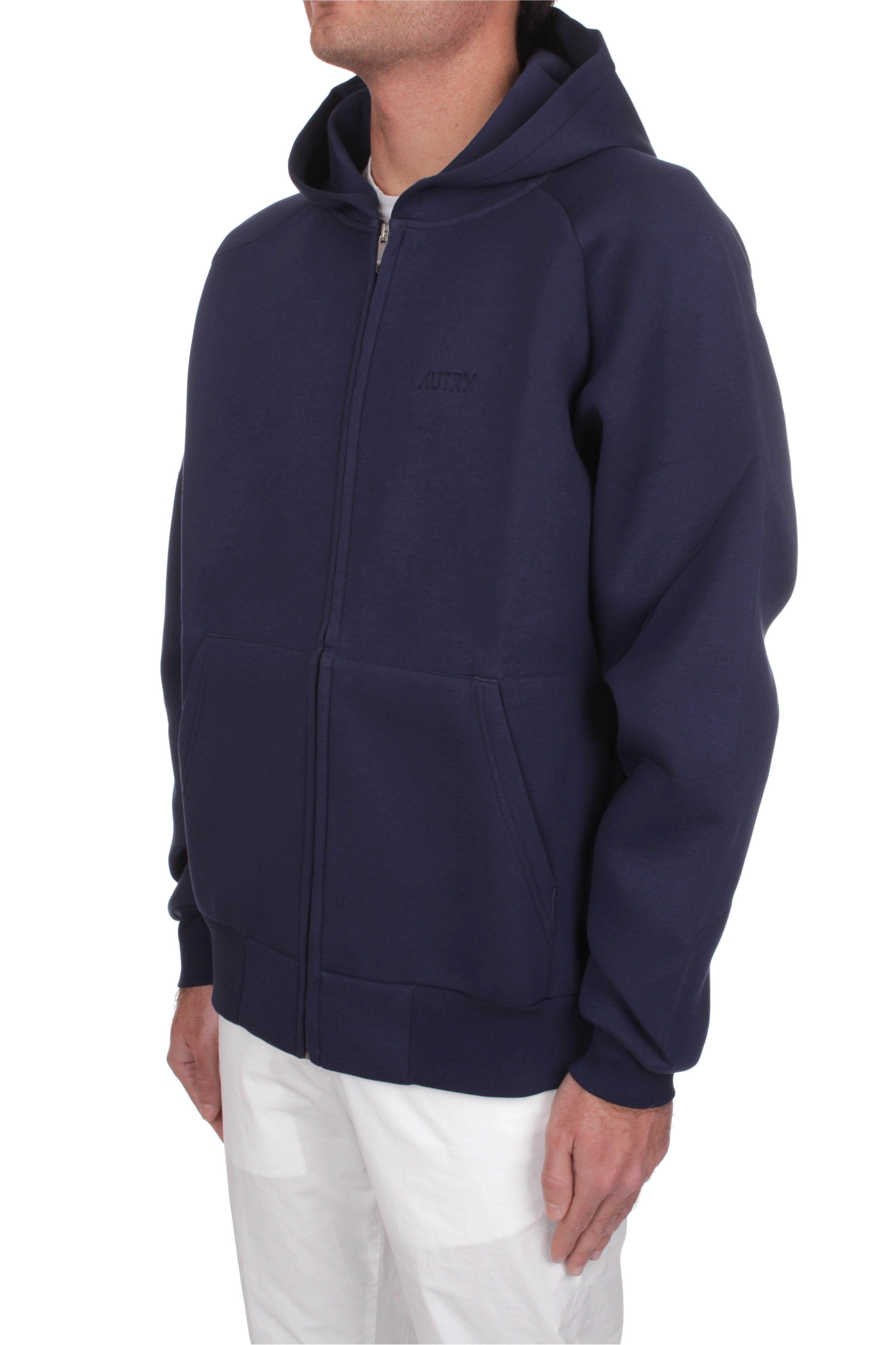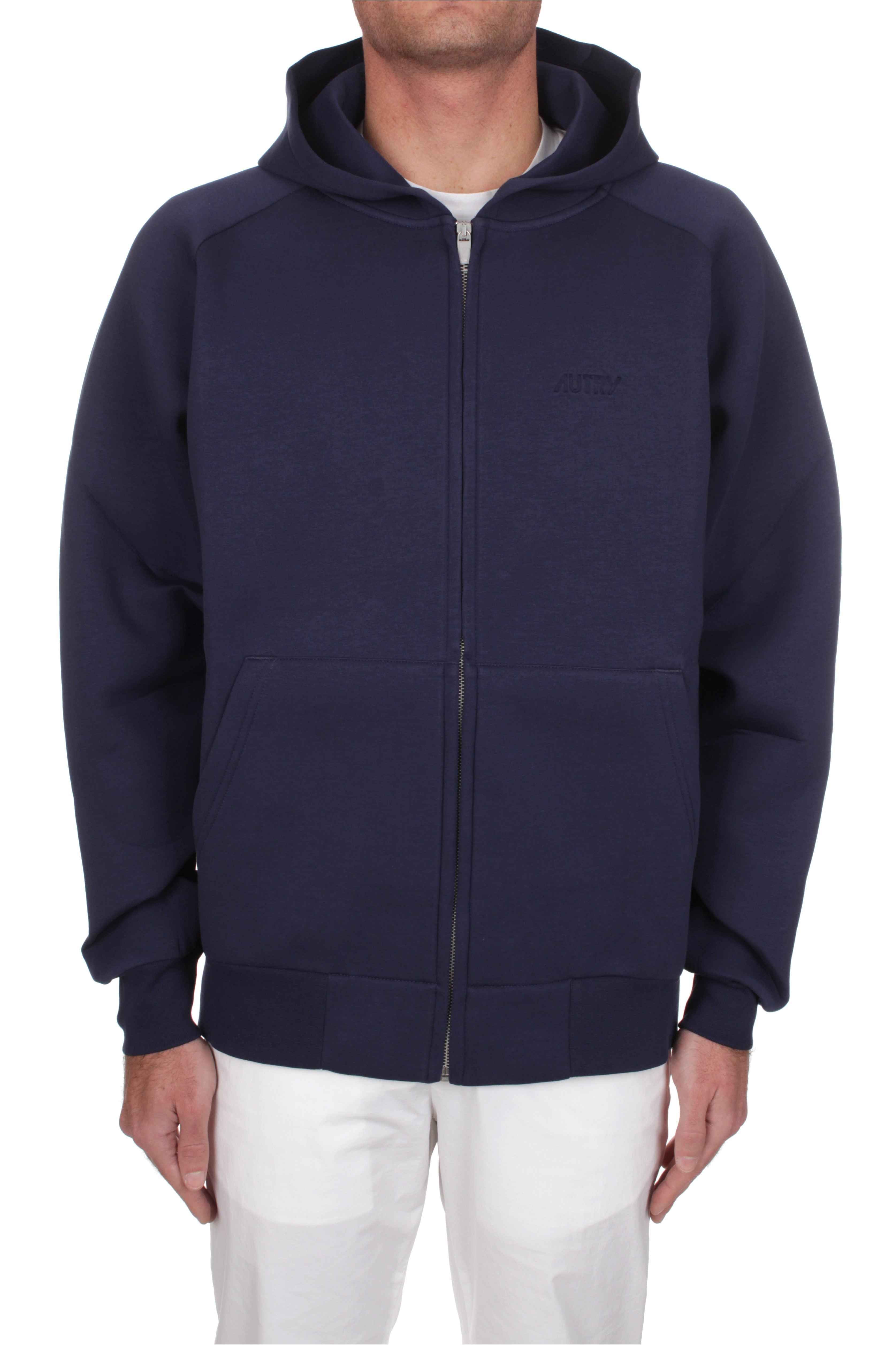 Il giubbino in neoprene Autry è realizzato in cotone 75% e poliuretano 25% e presenta la chiusura con zip, due tasche laterali e il logo del brand sul petto. Vestibilità regolare. Il modello è alto 180 cm e indossa la taglia M. Made in Portogallo.