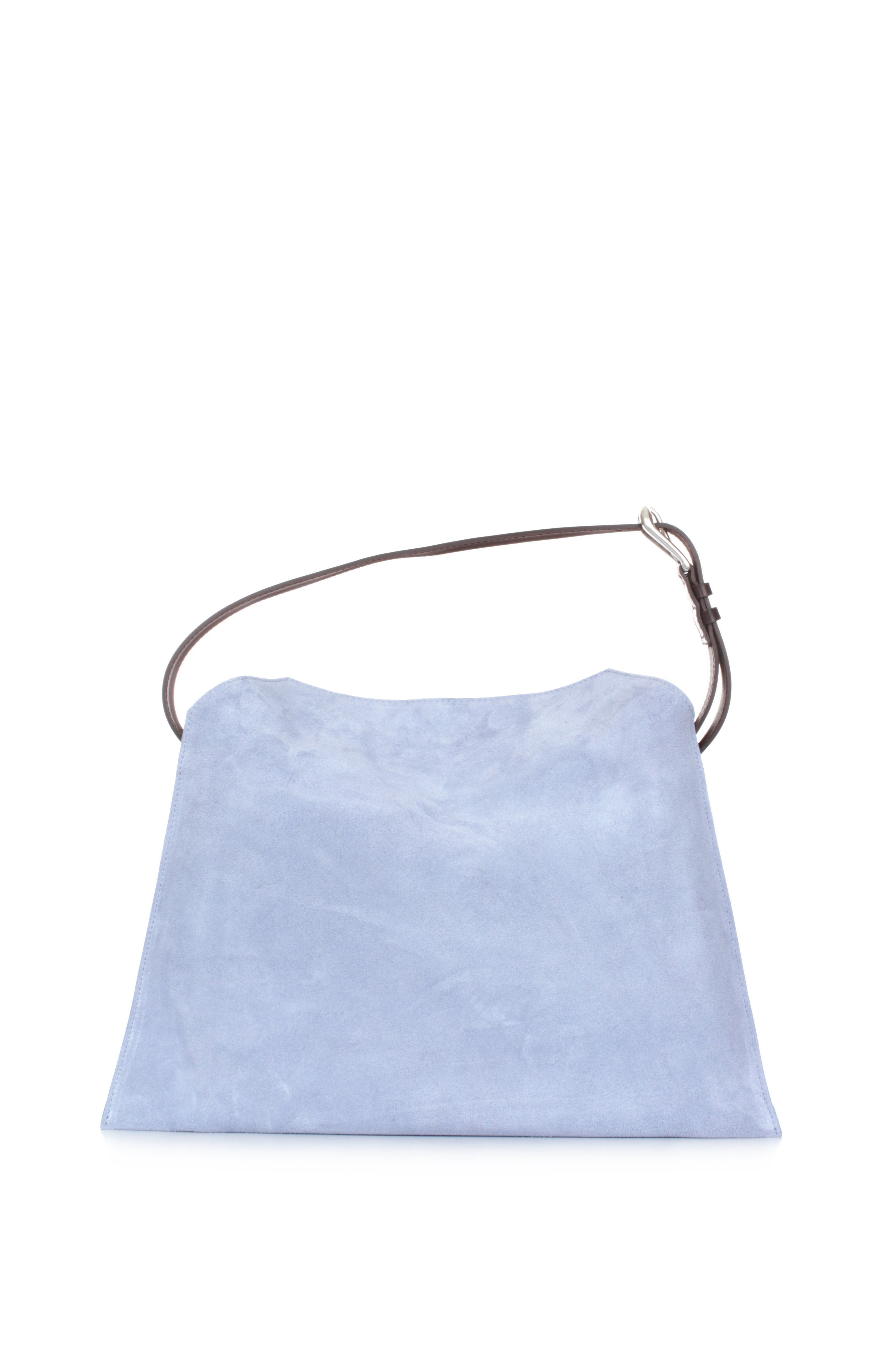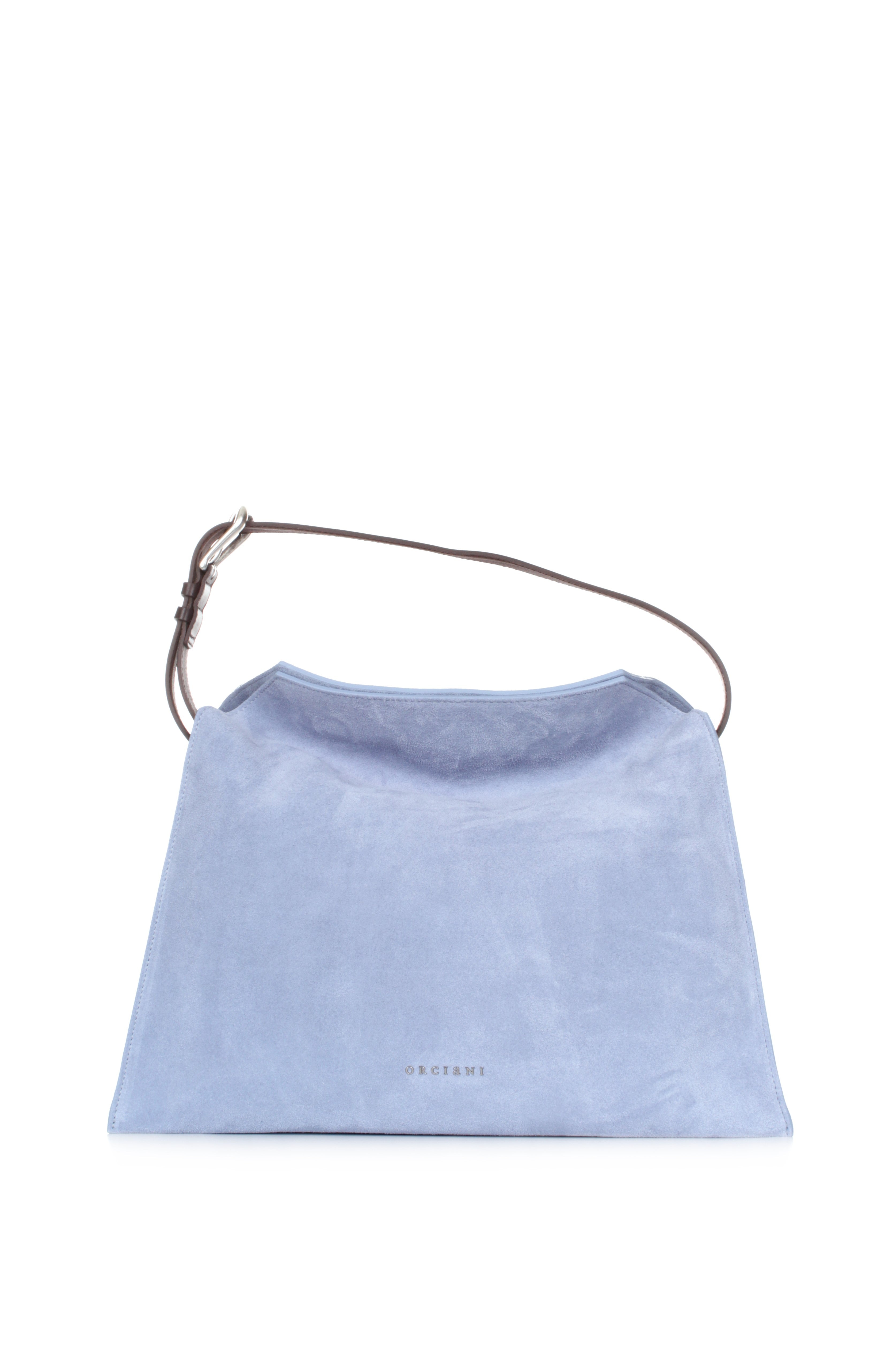 BORSA A SPALLA ORCIANI TRINITY PEACH MIDI IN PELLE SCAMOSCIATA AZZURRO CIELO