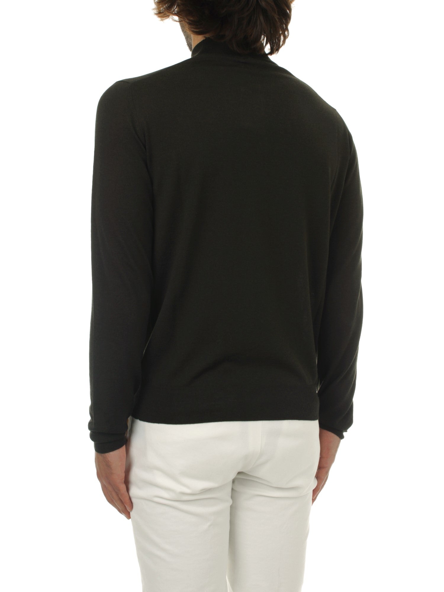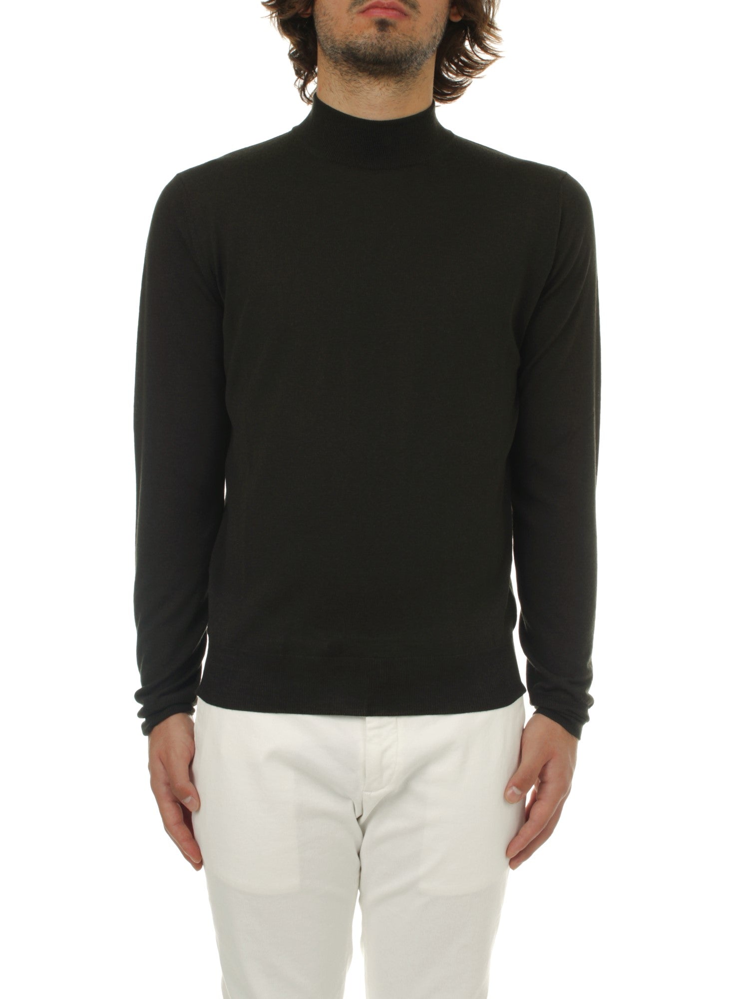 Arrows mock turtleneck sweater is made of 100% 120s superfine merino wool. Slim fit. Model is 180 cm tall and wears size 48. Made in Italy.