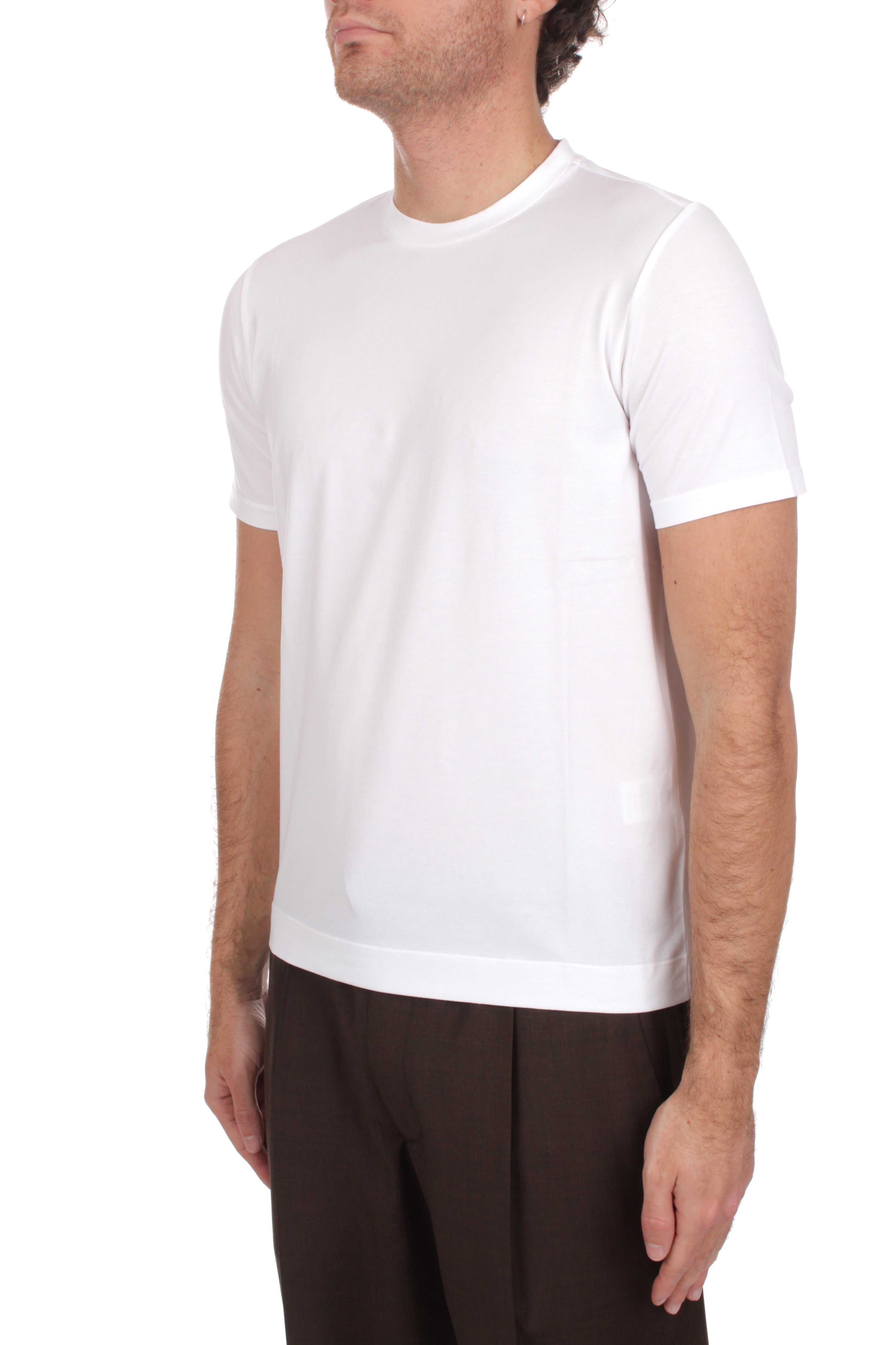 Pure, minimal and timeless, the white crew-neck T-shirt by Cruciani embodies the essence of everyday Italian luxury. A foundational piece designed to elevate the wardrobe with effortless refinement and lasting versatility. Crafted from premium stretch cotton, it offers a soft, breathable feel and a slim fit that enhances the silhouette while ensuring all-day comfort. The clean crew neck and short sleeves reflect a precise, minimalist design elevated by expert Italian craftsmanship. Made in Italy, this T-shirt works seamlessly on its own or layered, becoming an essential element of a modern spring–summer wardrobe. A discreet statement of quality, balance and enduring style.