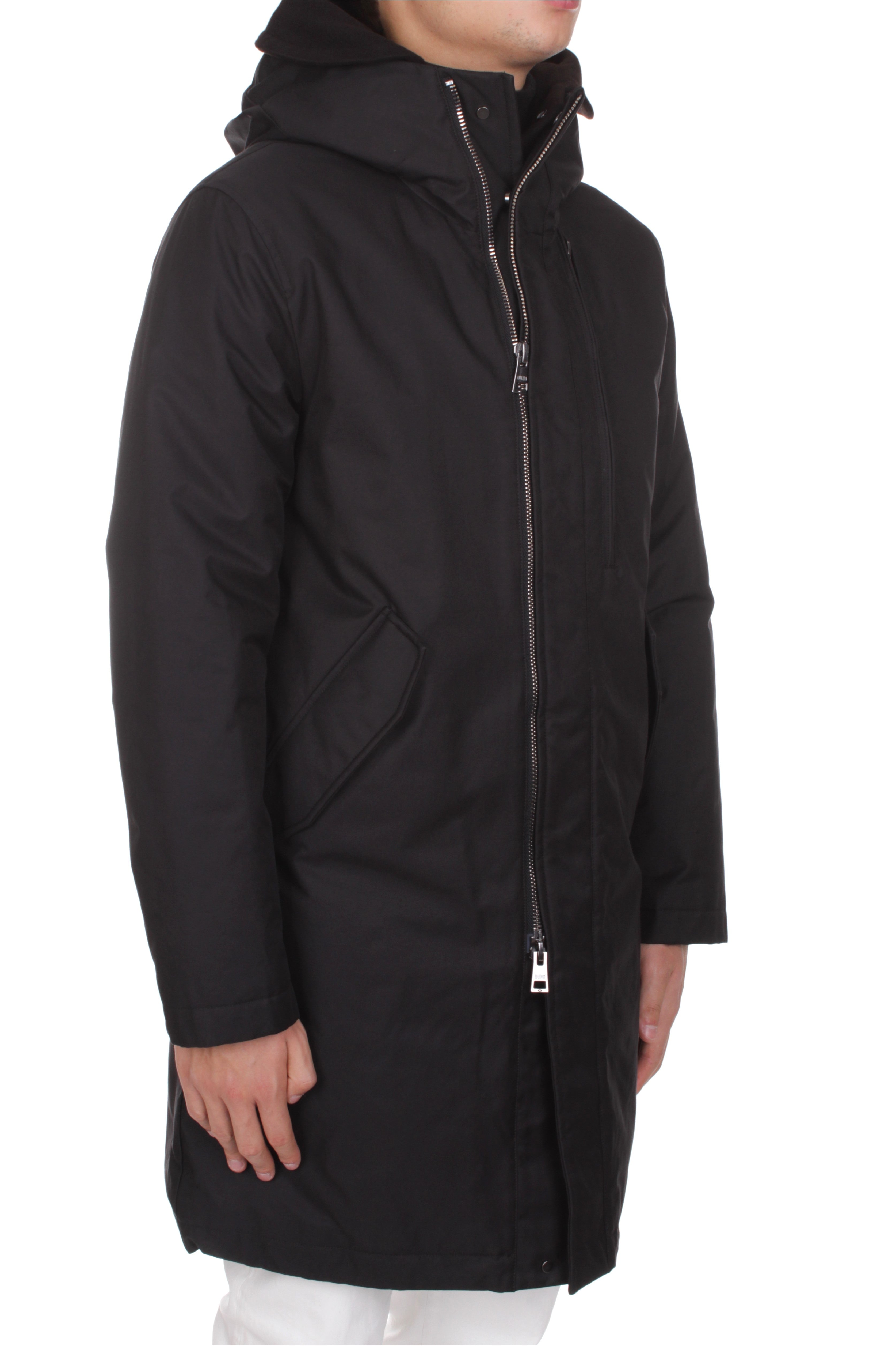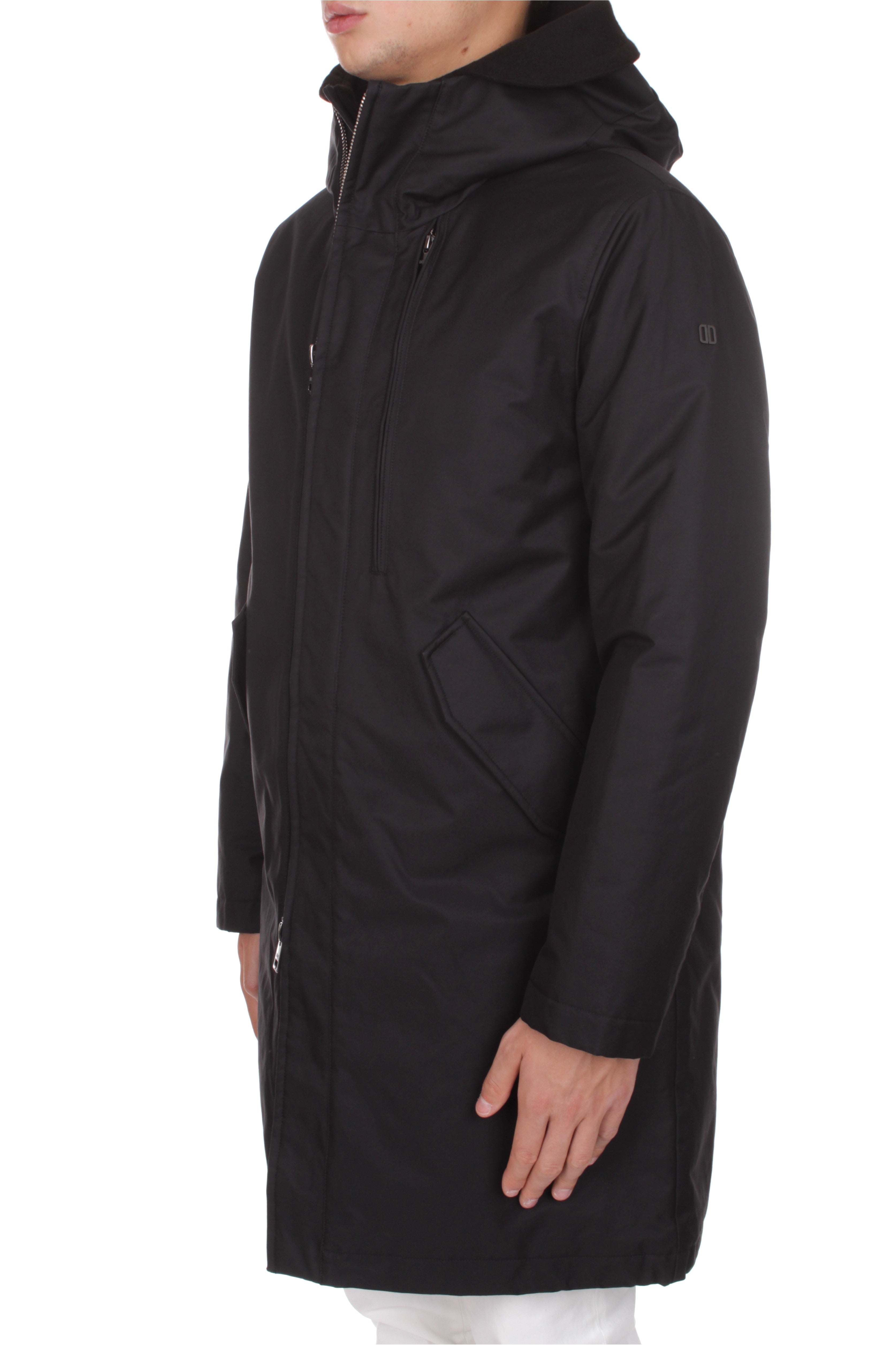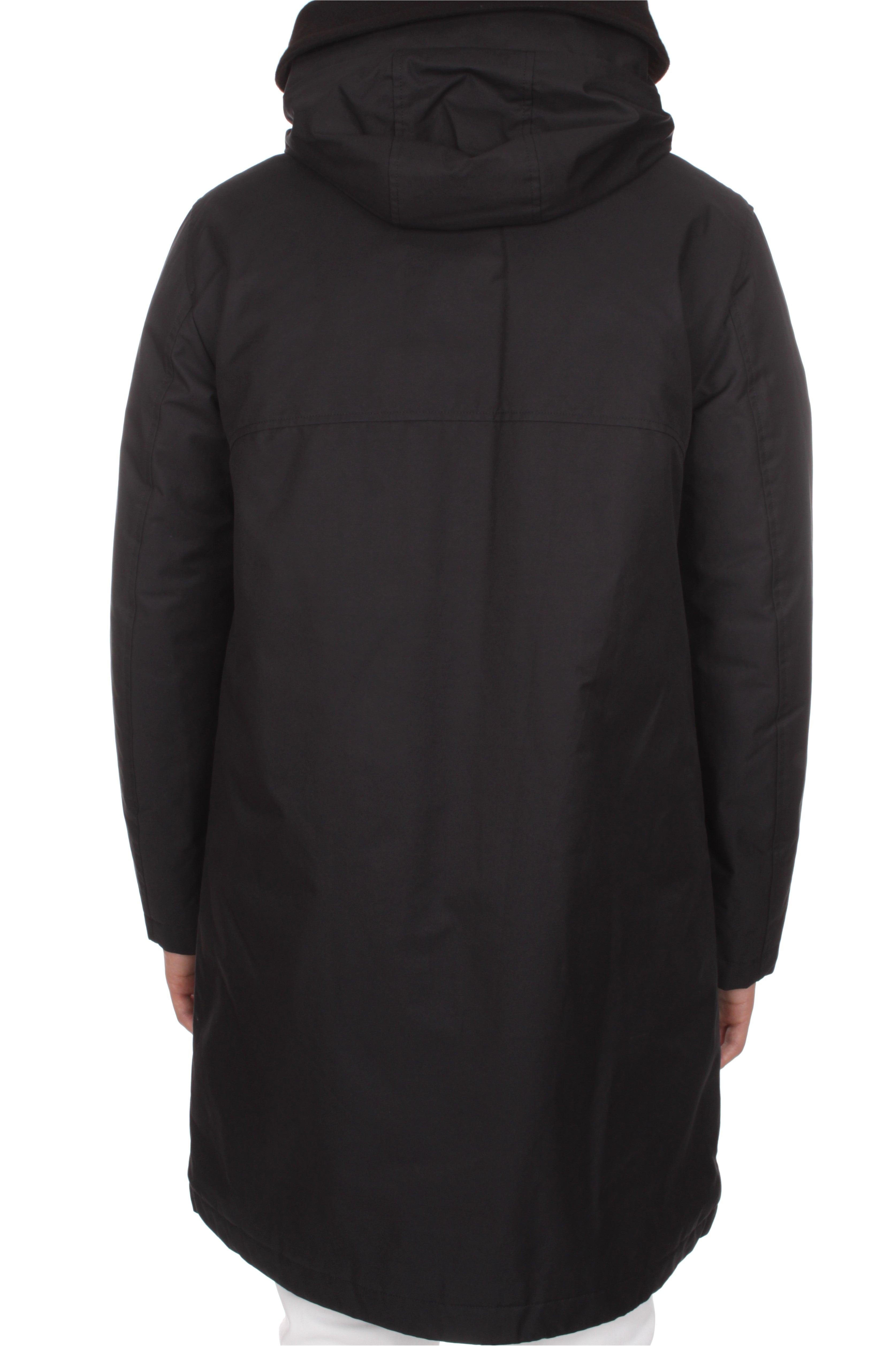 The Duno Starck parka in black blends military inspiration with urban sophistication in a modern, versatile silhouette. Crafted from 3-layer technical cotton (66% cotton, 34% polyester) with a waterproof and breathable membrane, it ensures maximum protection and comfort in all weather conditions. Key details include a double hood with detachable felt inner layer, dual front closure with zip and hidden snaps, multiple functional pockets inside and out, and an adjustable drawstring hem. High-performance synthetic padding provides warmth without bulk. Relaxed fit.