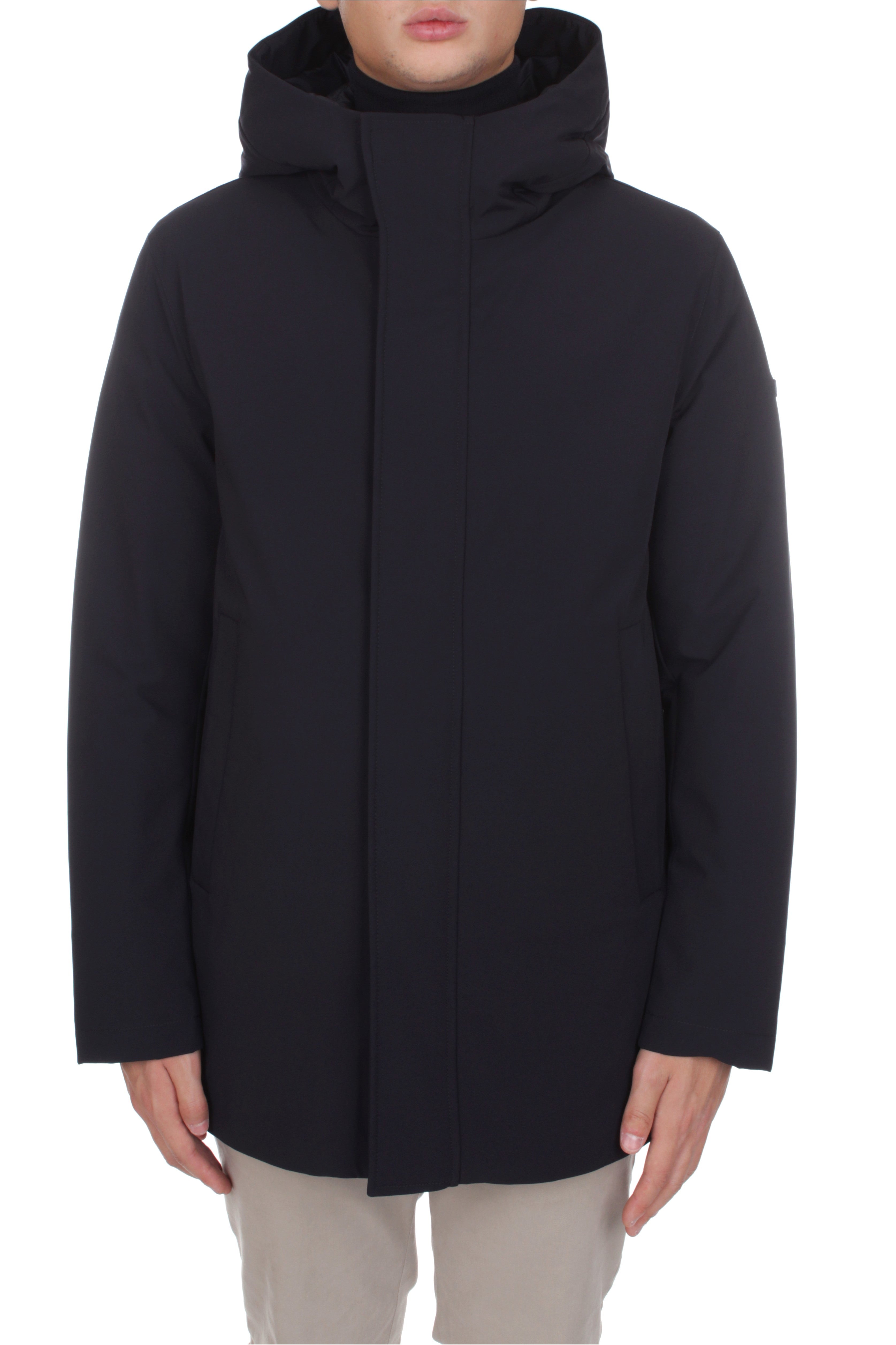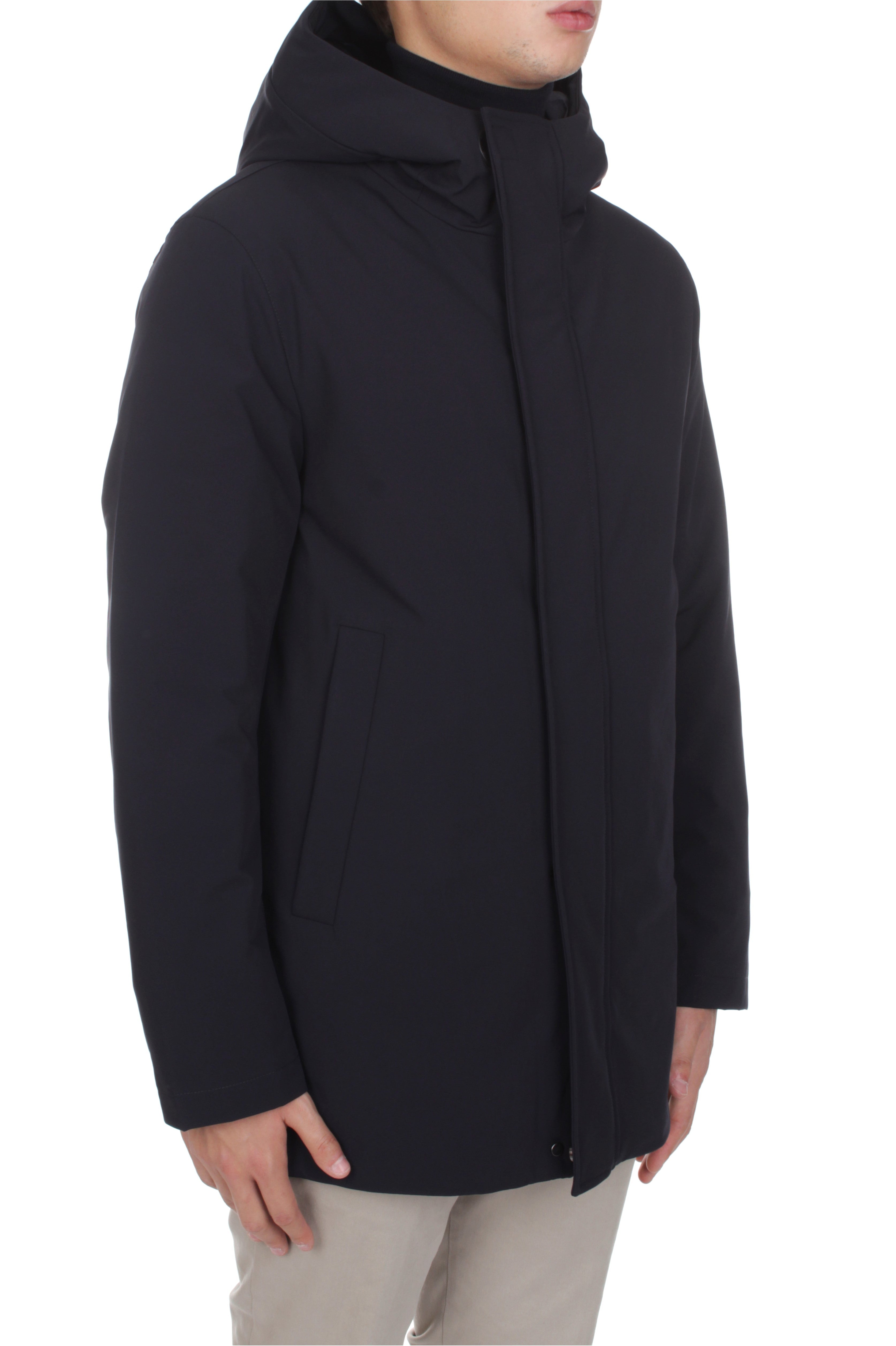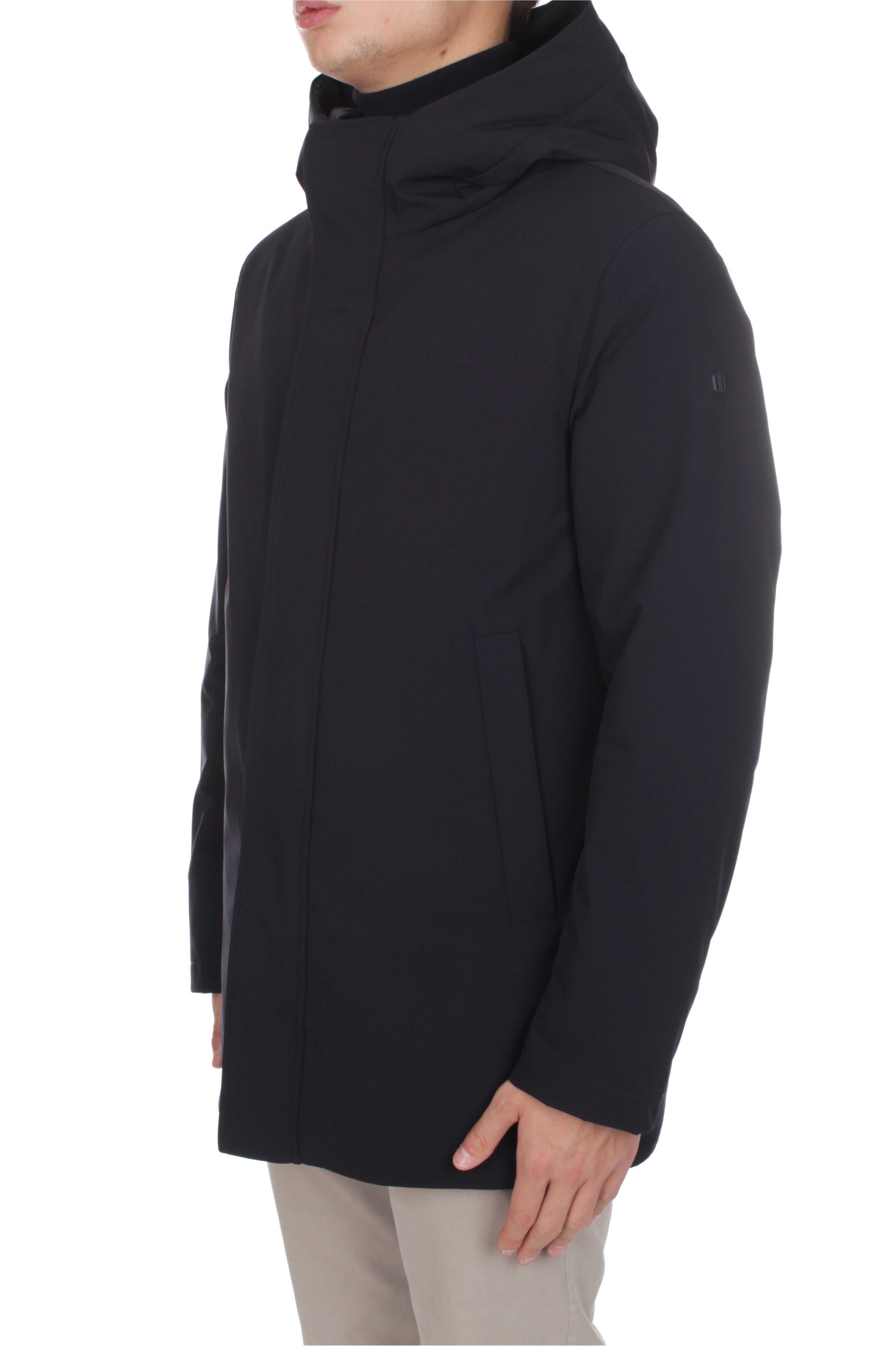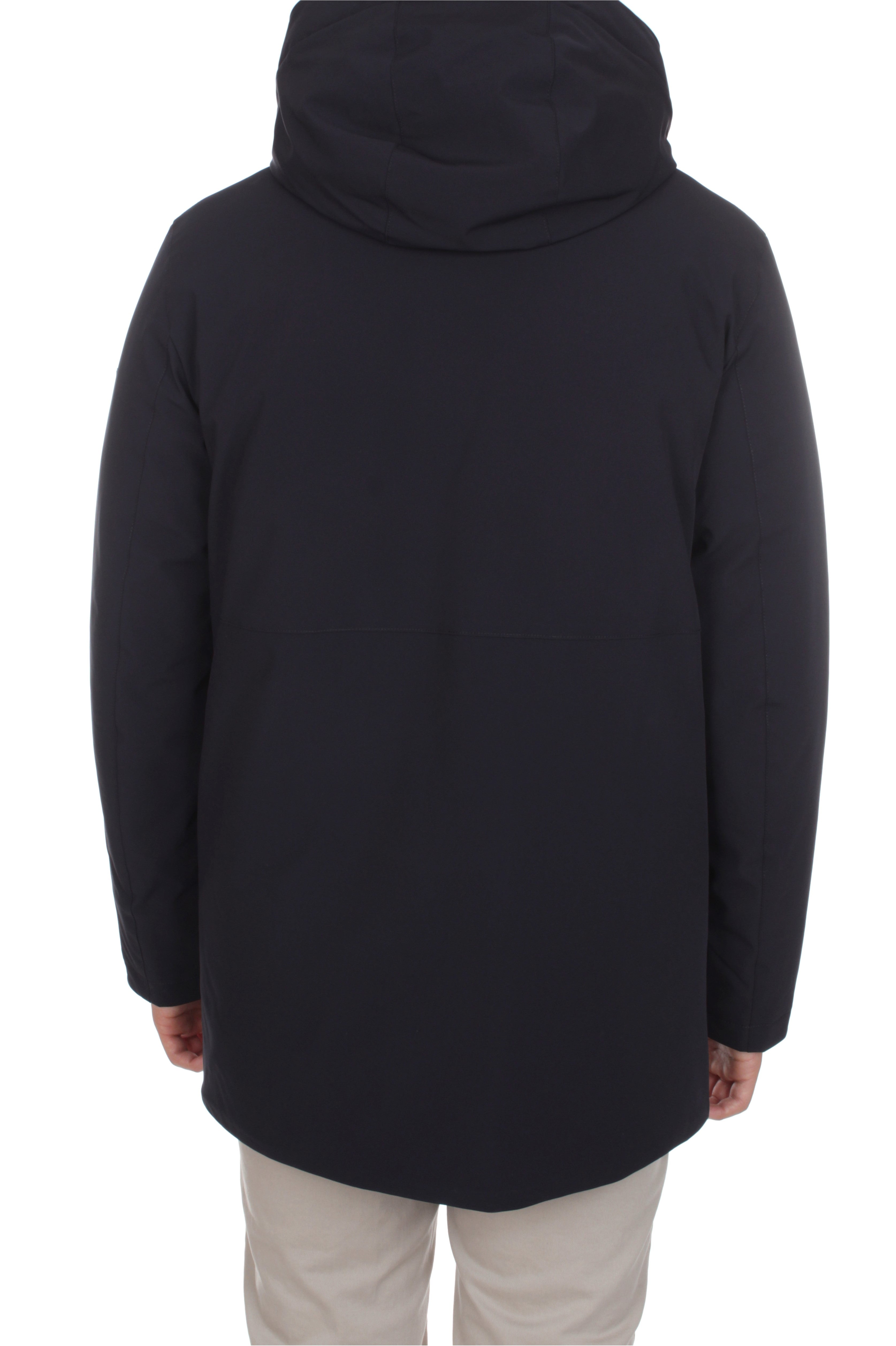 Duno Sulphur down jacket is made of 83% polyamide and 17% elastane and features down insulation, double slider zip and snap button closure, two side welt pockets with zip closure and brand logo patch on the left sleeve. Regular fit. Model is 180 cm tall and wears size 48.