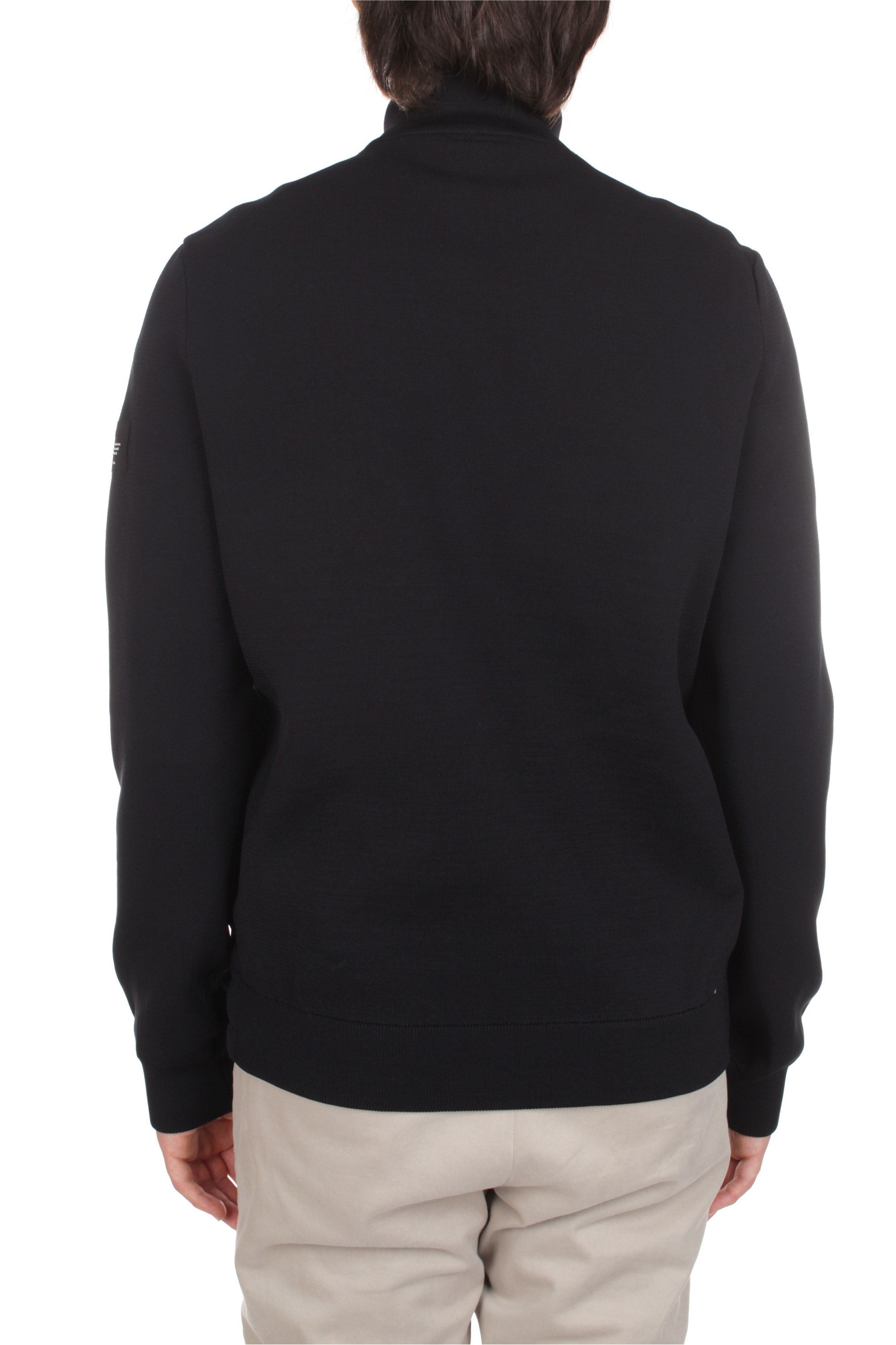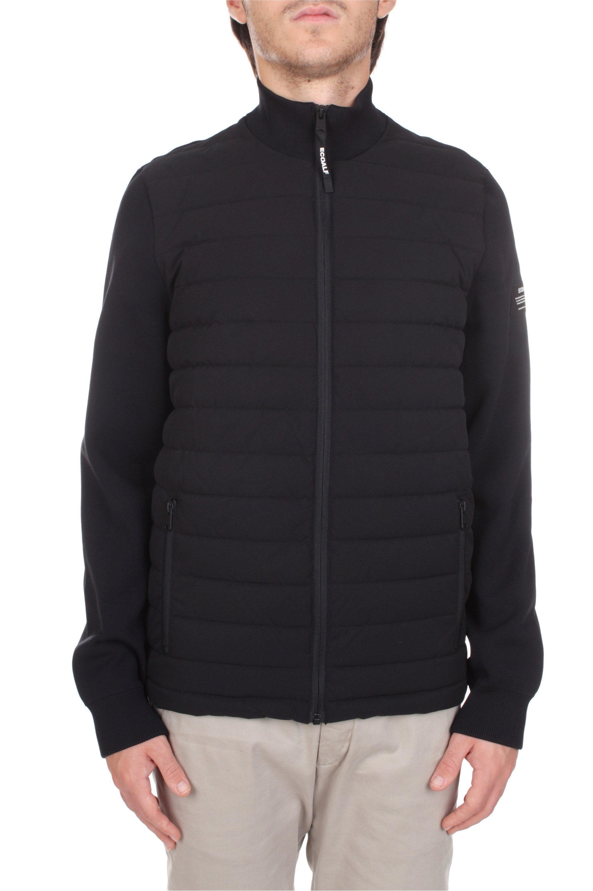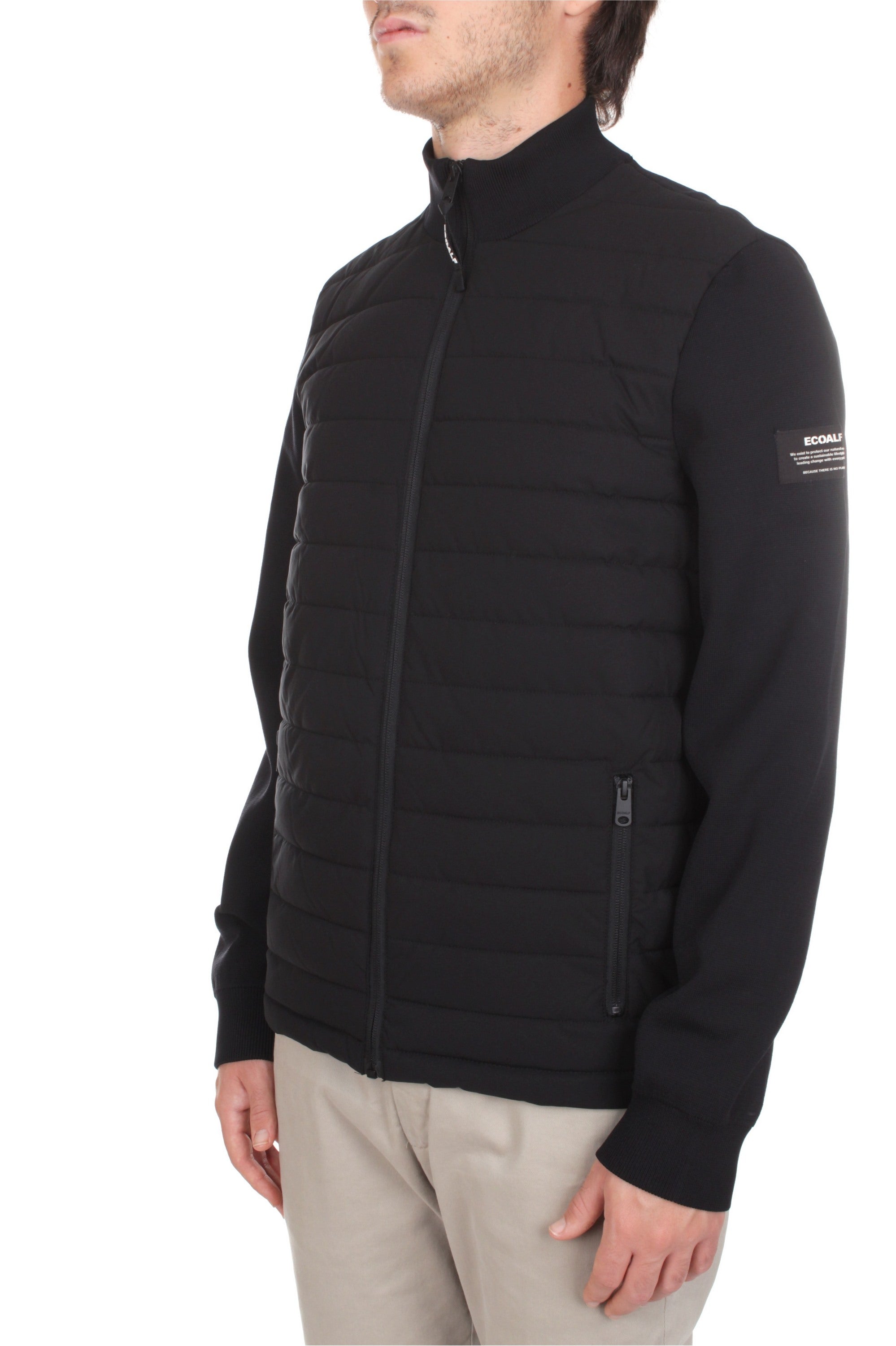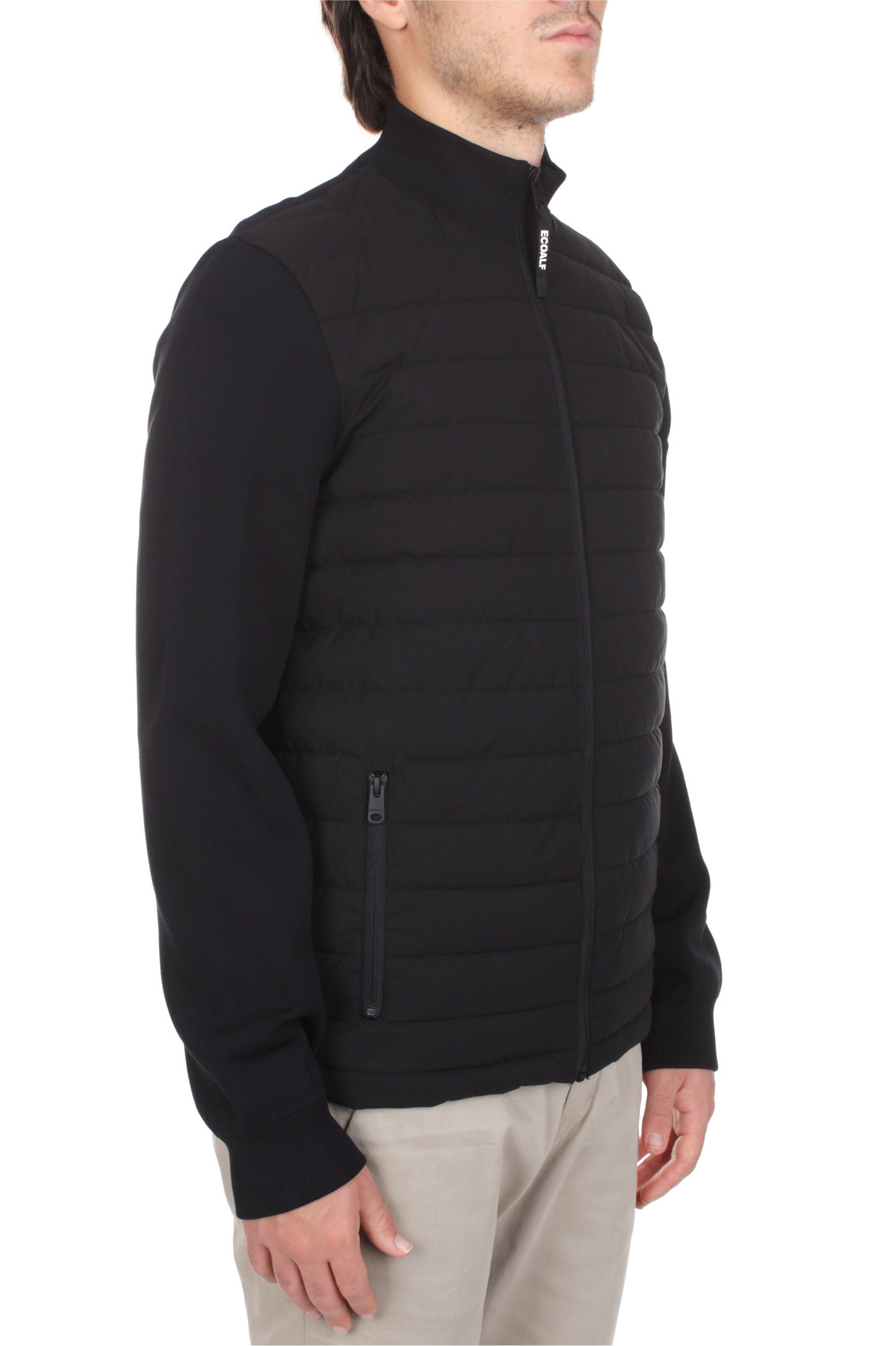 Ecoalf Meru black jacket blends refined simplicity with sustainable innovation, making it the ideal choice for transitional weather. Crafted entirely from 100% recycled polyester, sourced from post-consumer PET bottles and plastic waste, it reduces environmental impact while maintaining the durability and softness of virgin fibers. Fully lined and padded with recycled polyester, it offers lightweight warmth and comfort. The mixed design — featuring 12GG knit sleeves and a padded puff-effect body — adds visual depth and texture, while the ribbed mock neck, cuffs, and hem ensure a regular, structured fit. A custom front zipper, zippered side pockets, and subtle branded finishes complete the look. Produced with renewable energy and fully vegan, the Meru represents Ecoalf’s vision of conscious elegance — a jacket that combines functionality, versatility, and timeless design for modern everyday wear.