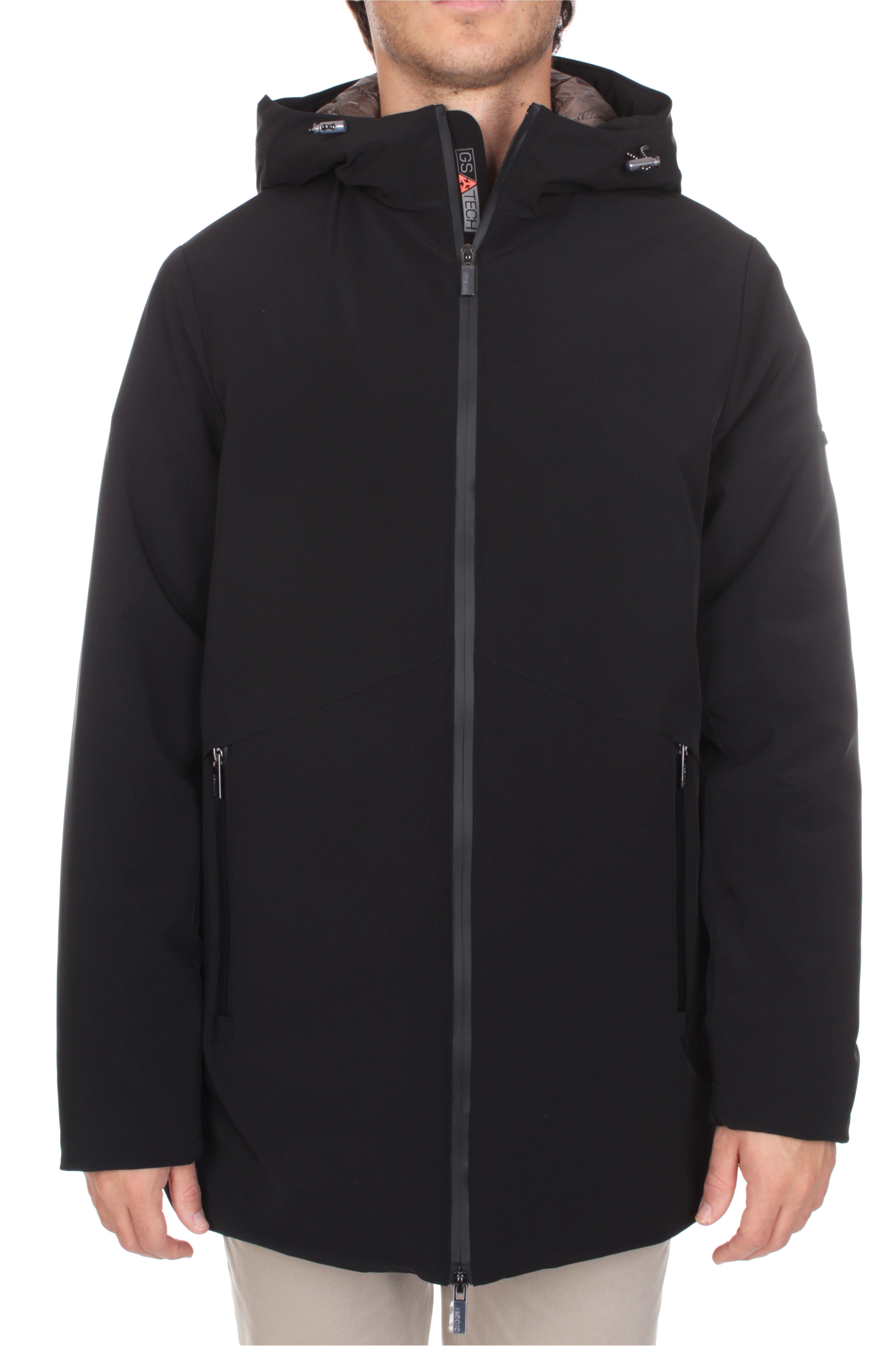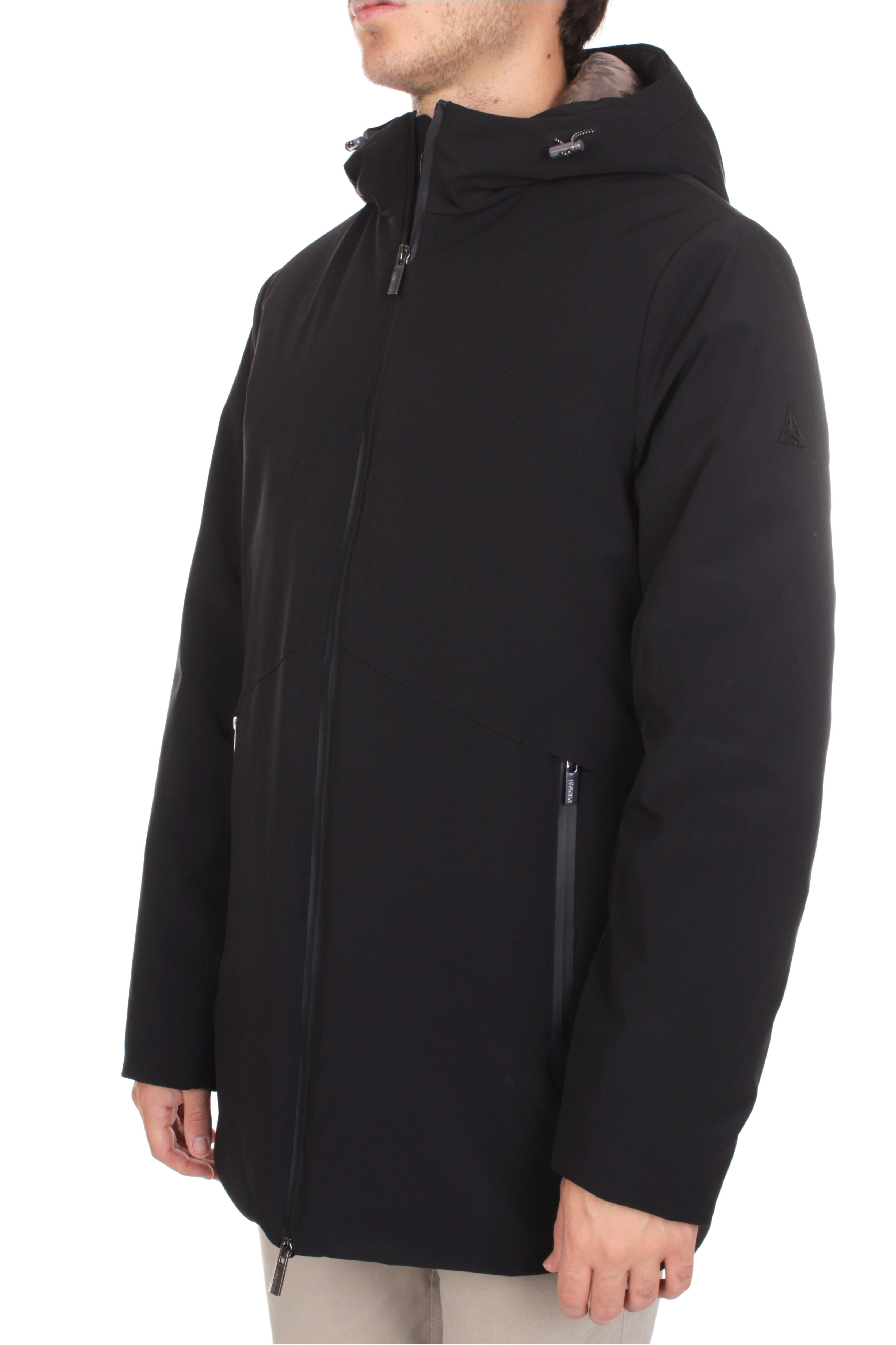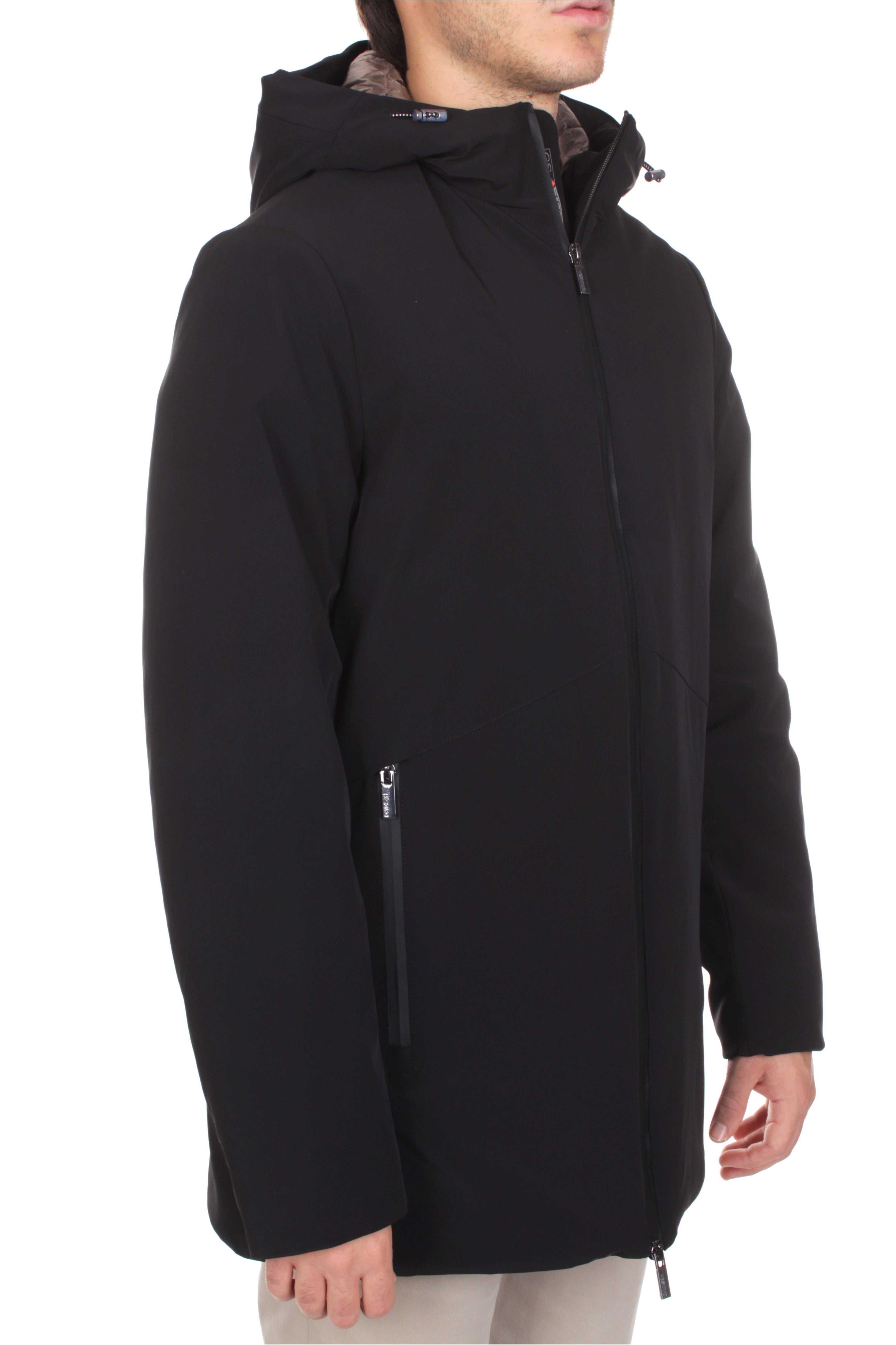 Heskimo jacket is made of 90% nylon and 10% elastane and features polyester insulation, double slider zip closure, two side pockets with zip closure and brand logo patch on the left sleeve. Regular fit. Model is 180 cm tall and wears size 48.
