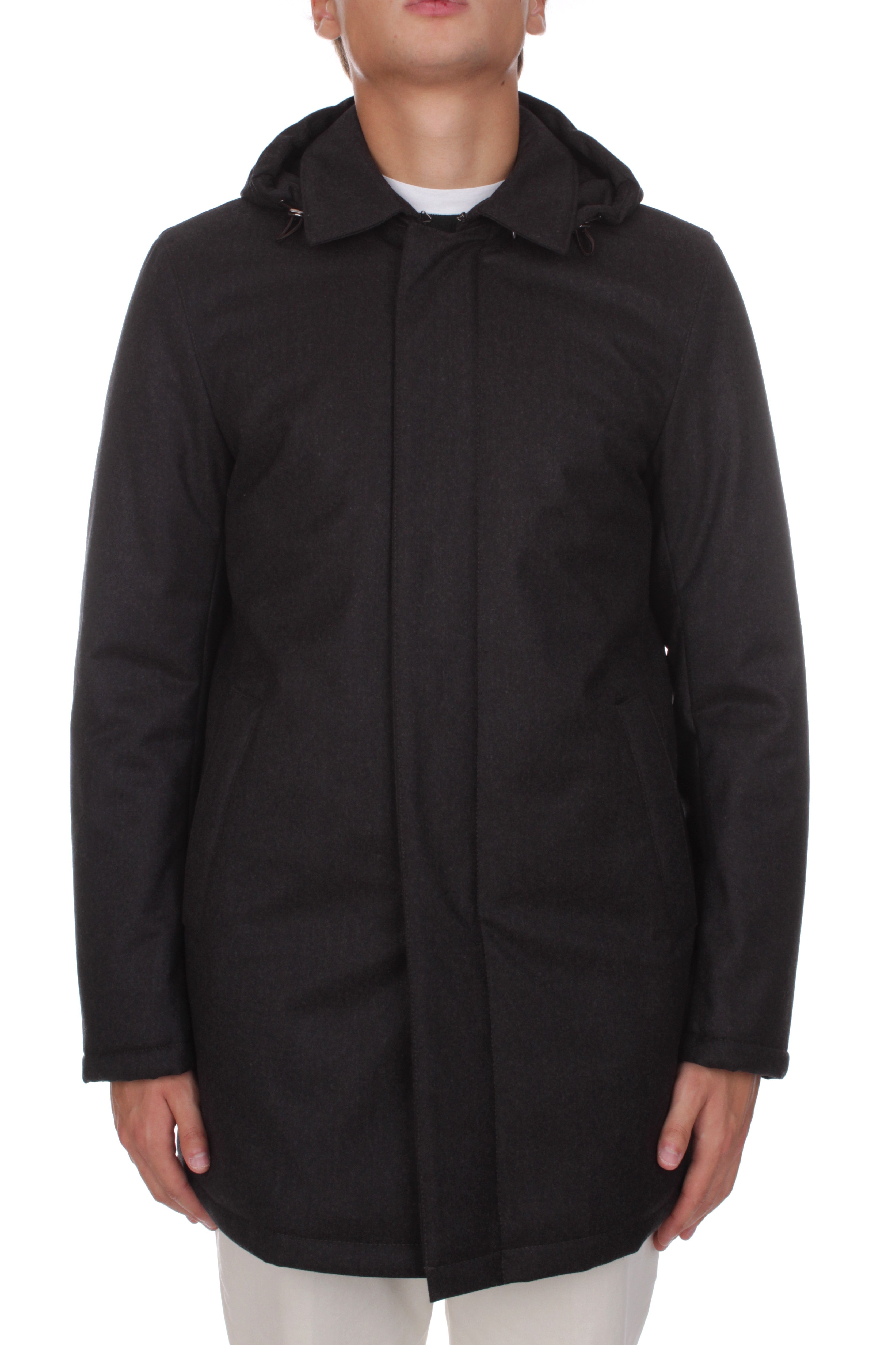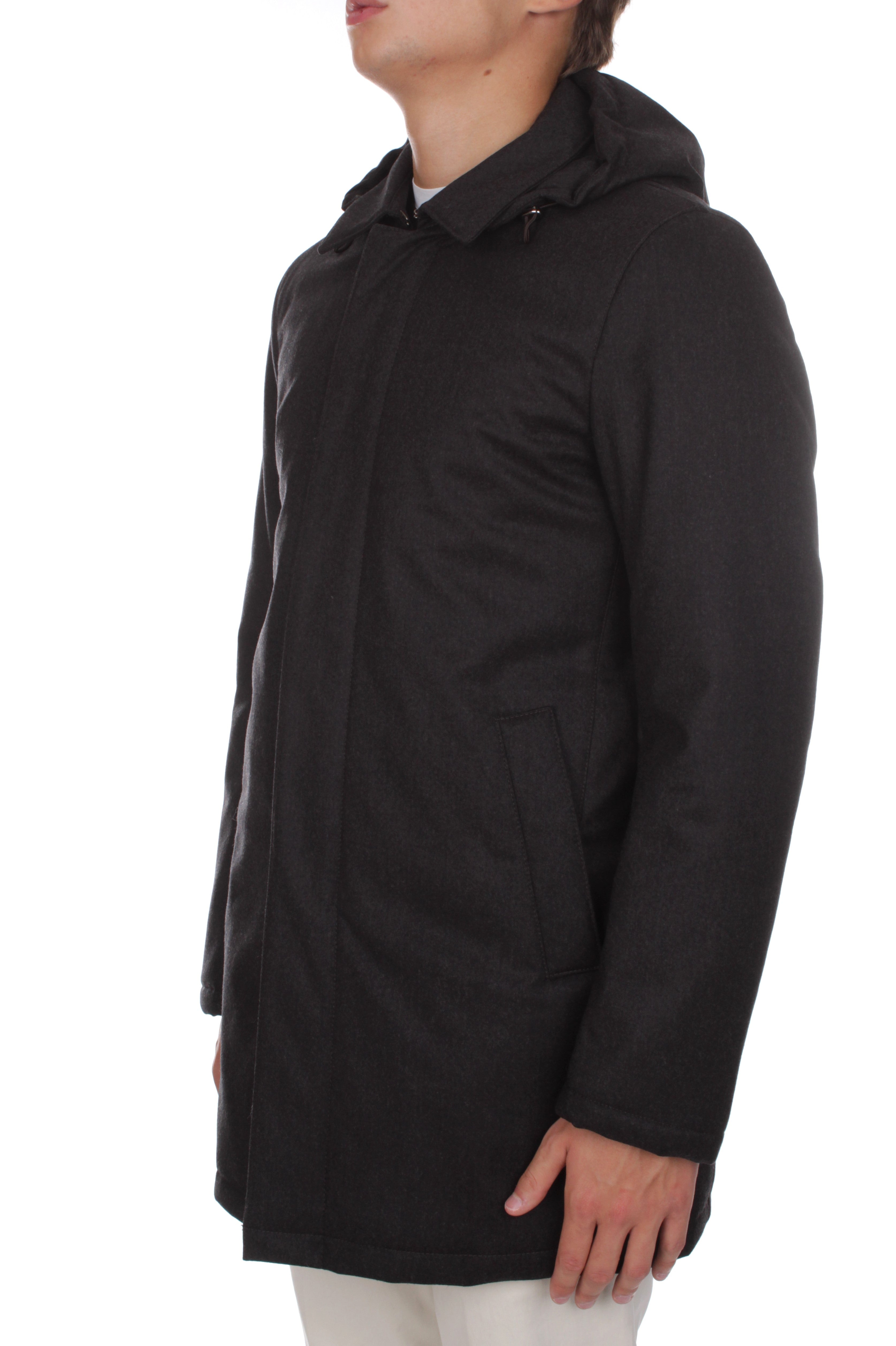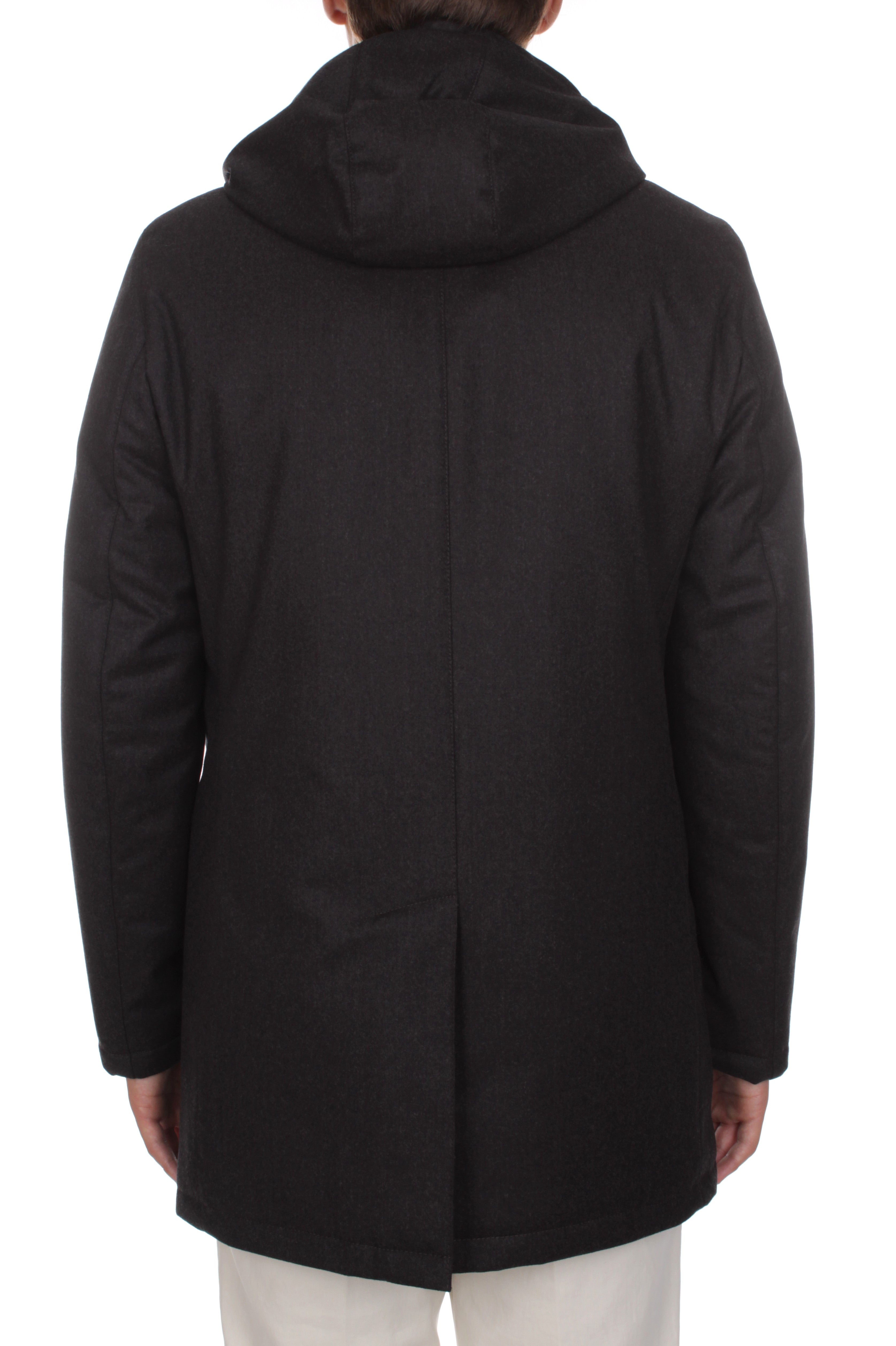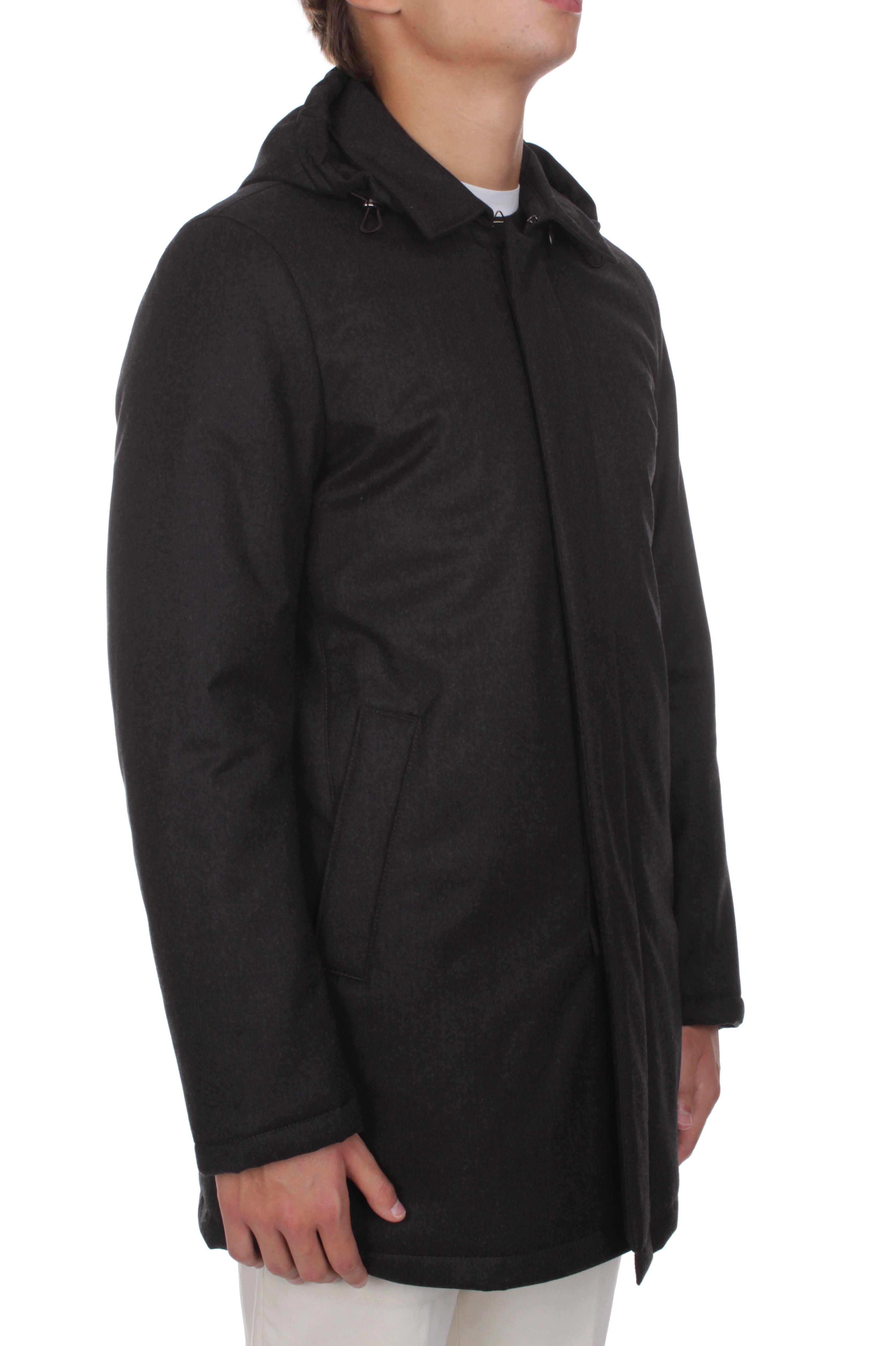 Michi D’Amato Marvin down jacket is made of 93% virgin wool Vitale Barberis Canonico fabric and 7% polyurethane and features polyester insulation, double slider zip and snap button closure, two side welt pockets with snap button closure and detachable hood. Regular fit. Model is 180 cm tall and wears size 48. Made in Italy.