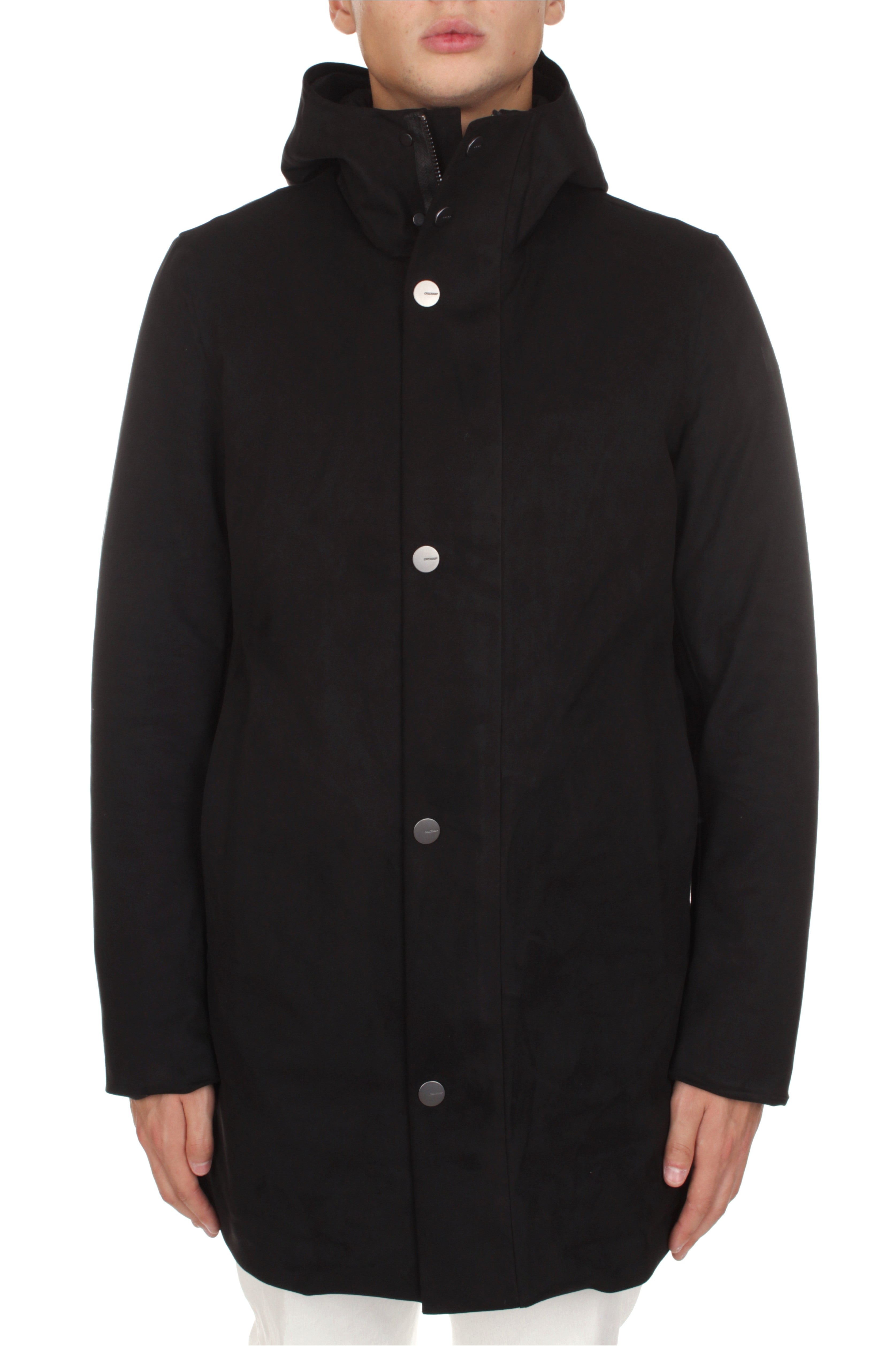 RRD Nabucco Eskimo down jacket is made of 80% polyamide and 20% elastane and features duck down insulation, double slider zip and snap button closure, two side pockets and brand logo patch on the left sleeve. Slim fit. Model is 180 cm tall and wears size 48.