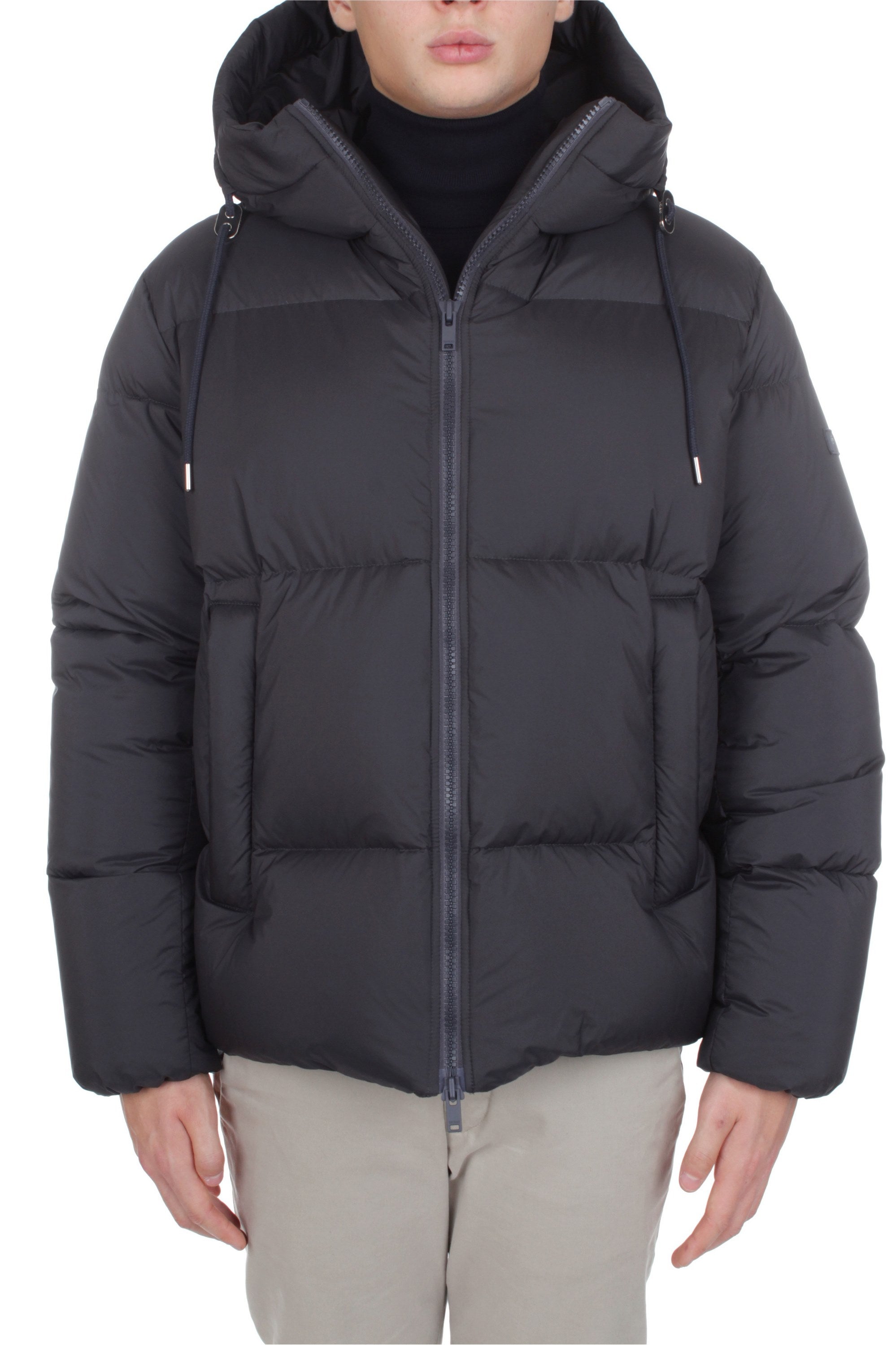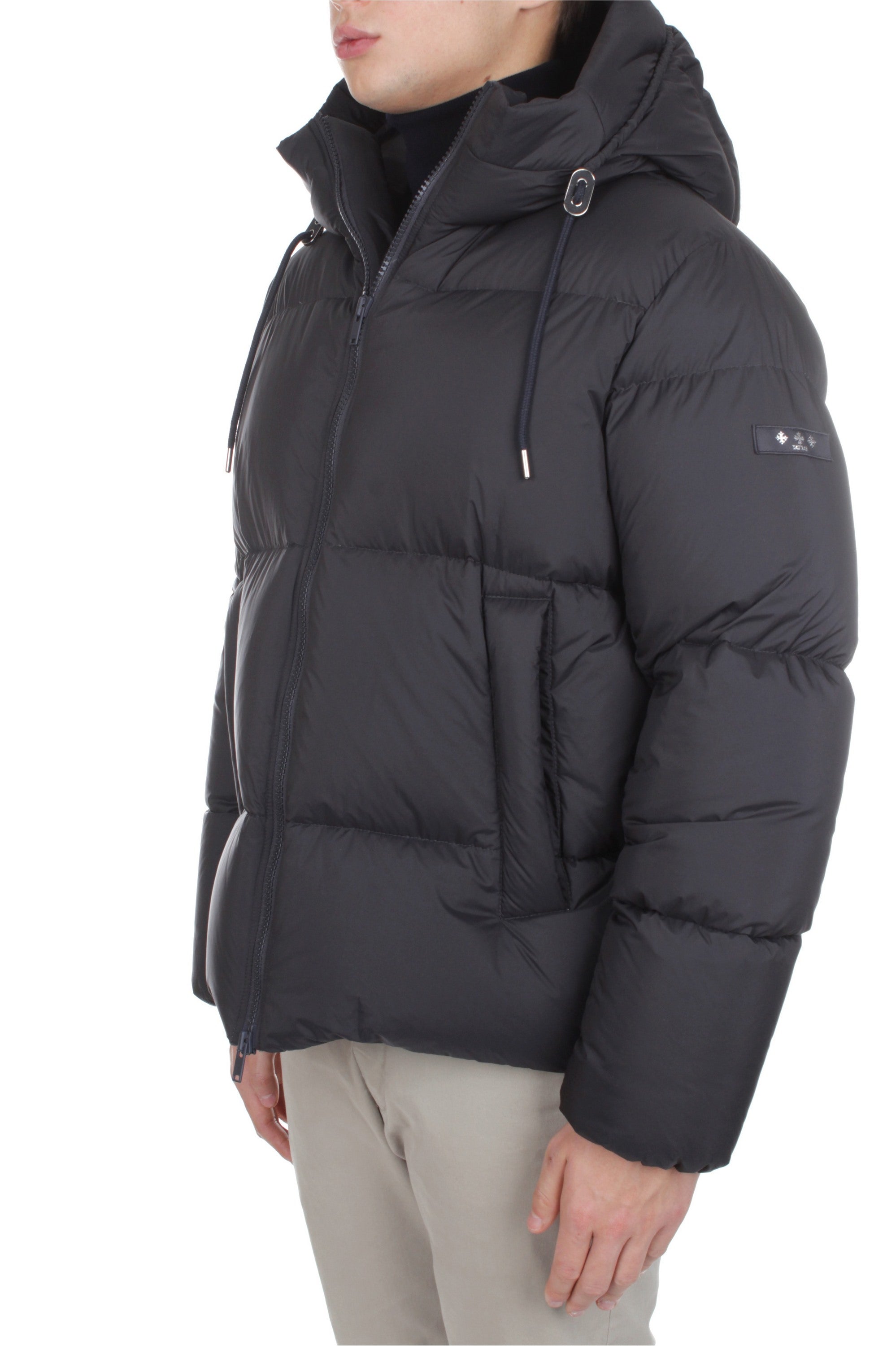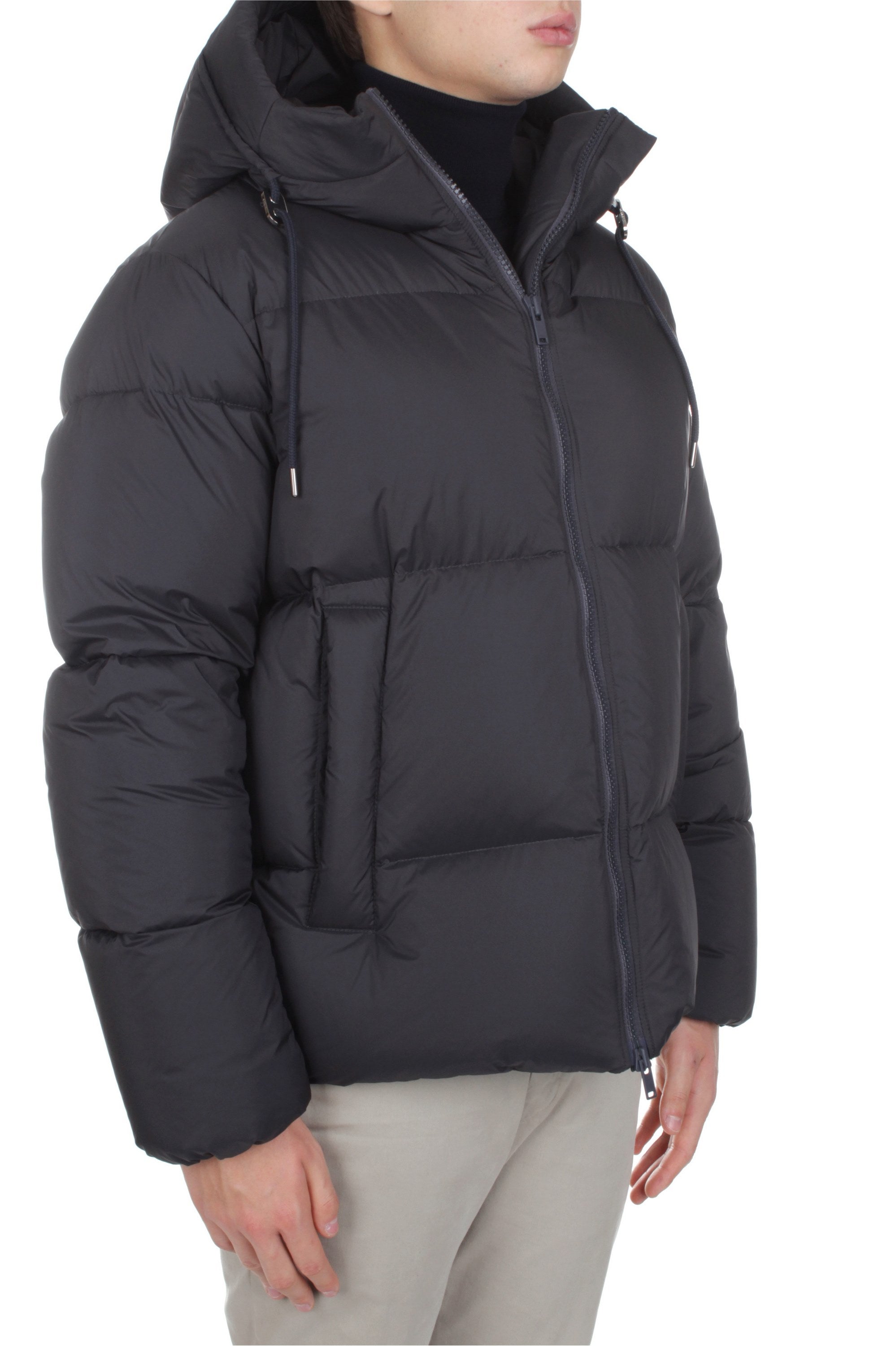 Tatras Acate Down Jacket in anthracite grey captures a refined take on modern outerwear. Crafted from high-performance nylon and padded with 90/10 goose down, it combines warmth, lightness and technical precision. Its oversized, boxy silhouette defines a bold contemporary look, while draft tubes along the zip — inspired by sleeping-bag design — enhance insulation and visual structure. The adjustable hood and two-way front zip add practicality and comfort, making it ideal for both urban and travel wear. Minimalist in design, the Acate is finished with tonal trims and subtle metal details that highlight Tatras’ signature fusion of craftsmanship and innovation. A sophisticated winter essential where functionality meets understated elegance.