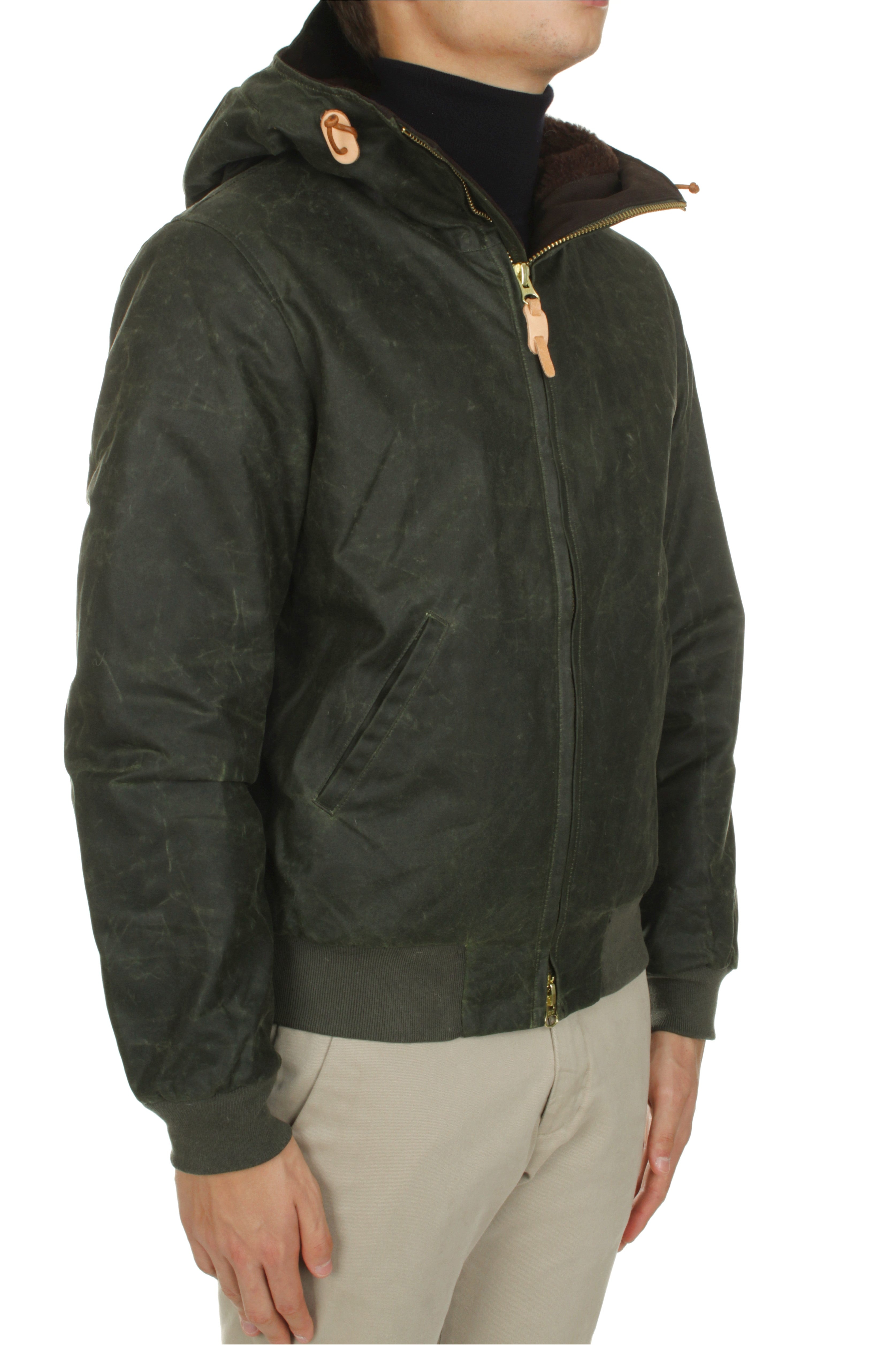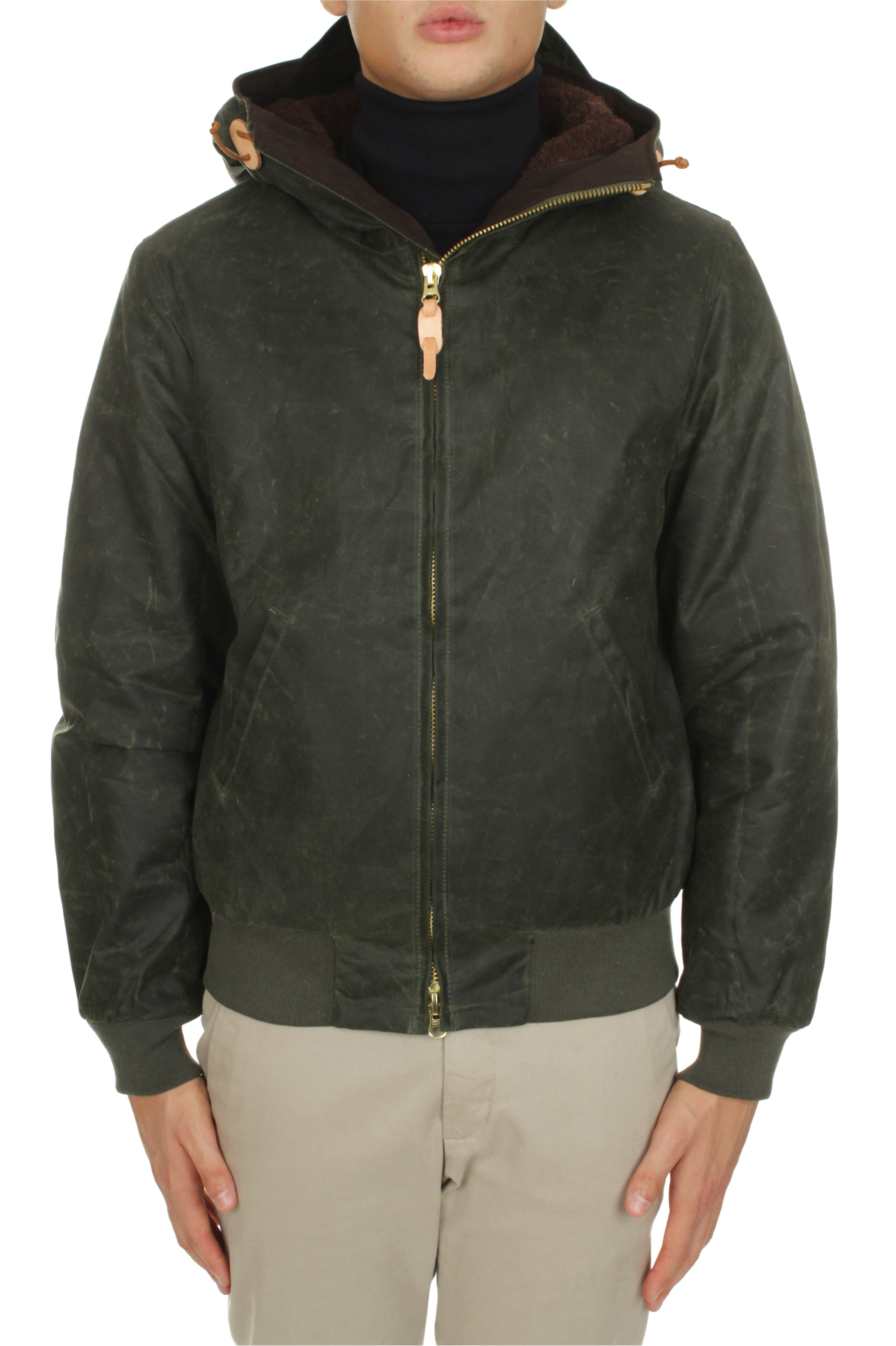 Manifattura Ceccarelli jacket is made of 100% waxed cotton and features wool lining, wool insulation, double slider zip closure and two side welt pockets. Regular fit. Model is 180 cm tall and wears size 38. UK size chart. Made in Italy.