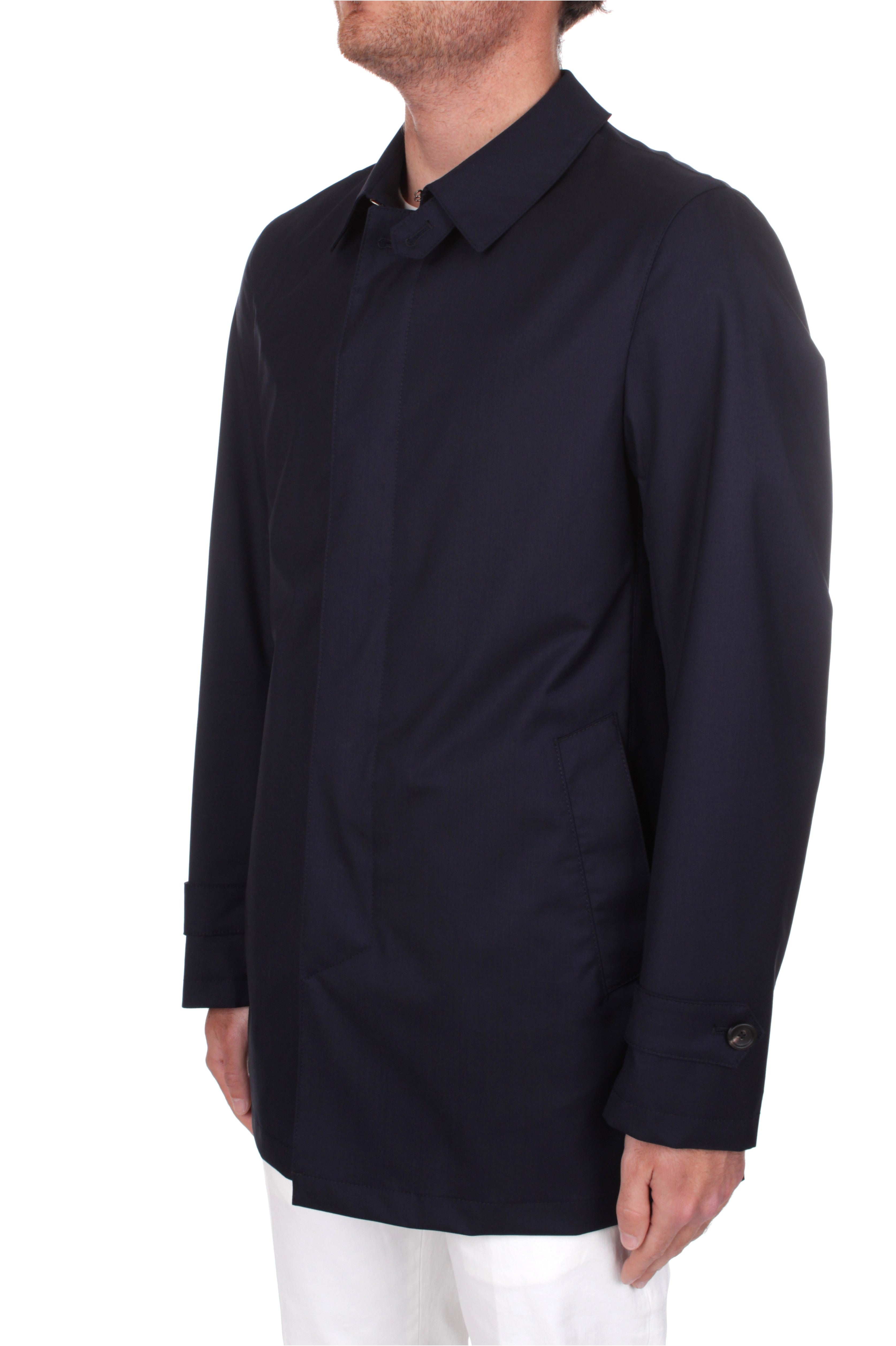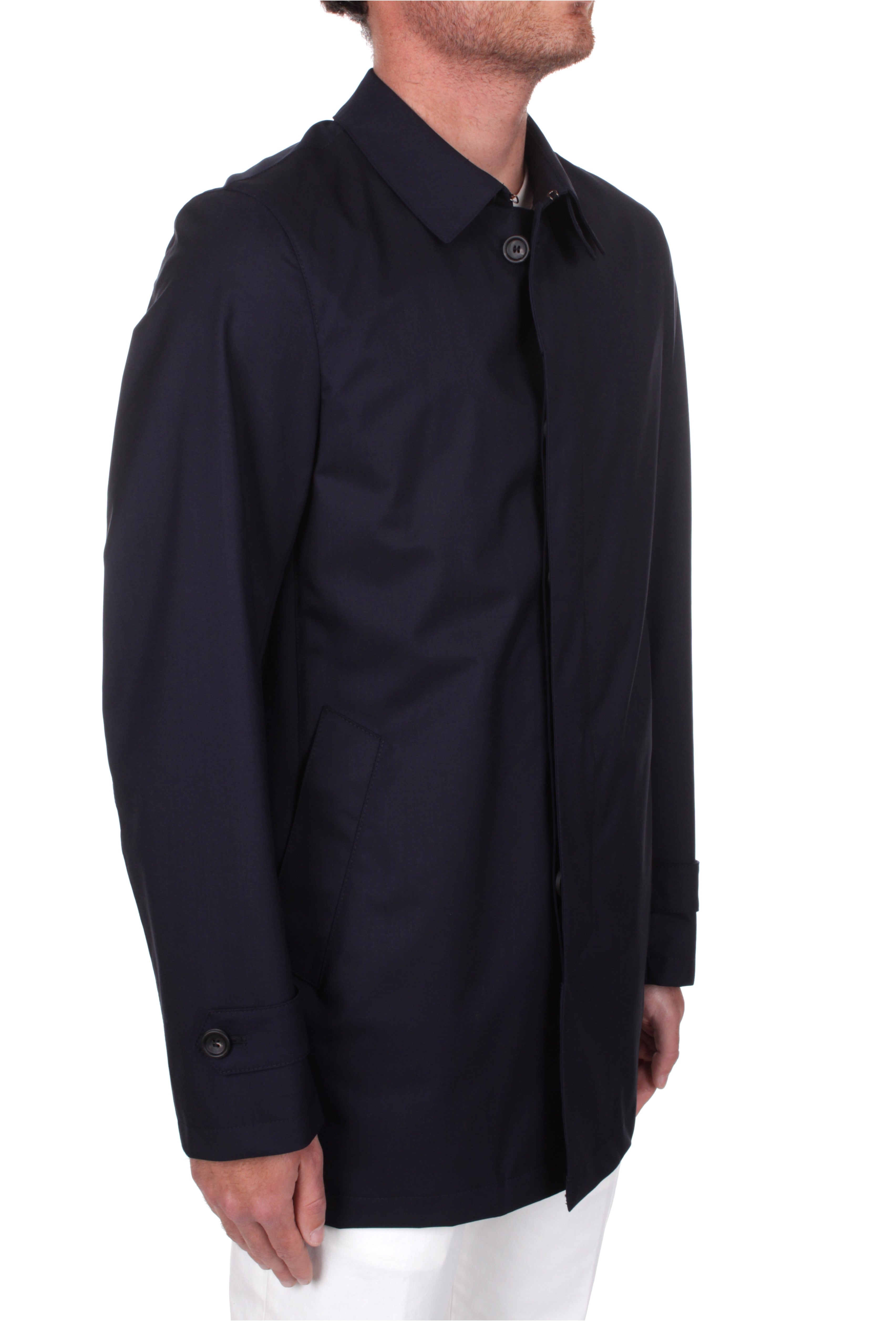 Michi D’Amato Manfredi raincoat is made of 75% virgin wool and 25% polyurethane and features polyester lining, button closure and two side pockets. Slim fit. Model is 180 cm tall wears size 48. Made in Italy.