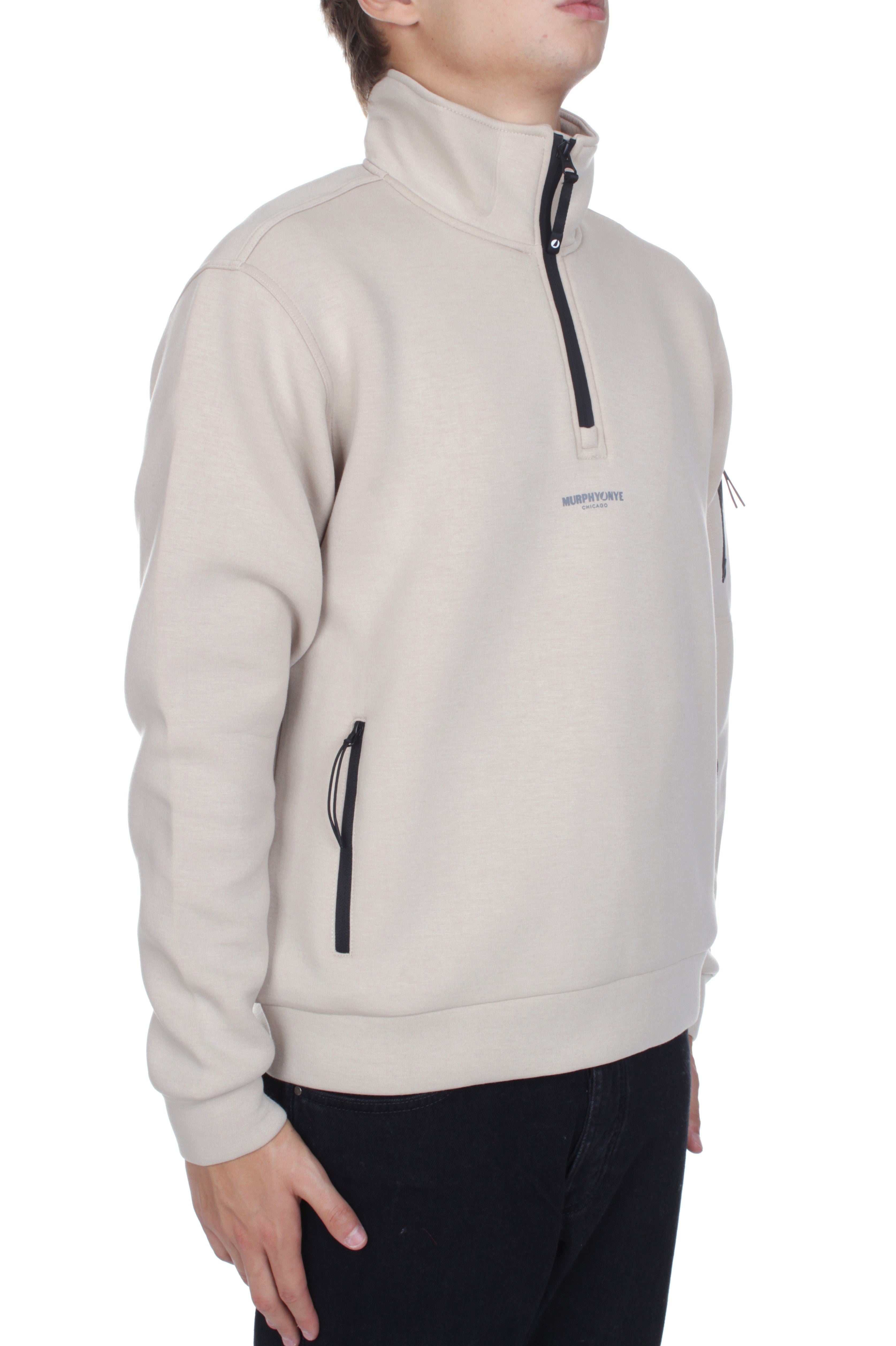 Murphy & Nye Flight sweatshirt is made of 67% polyester, 25% viscosa and 8% elastane and features half zip closure, two side pockets with zip closure and printed brand logo on the chest and on the left sleeve. Regular fit. Model is 180 cm tall and wears size M.