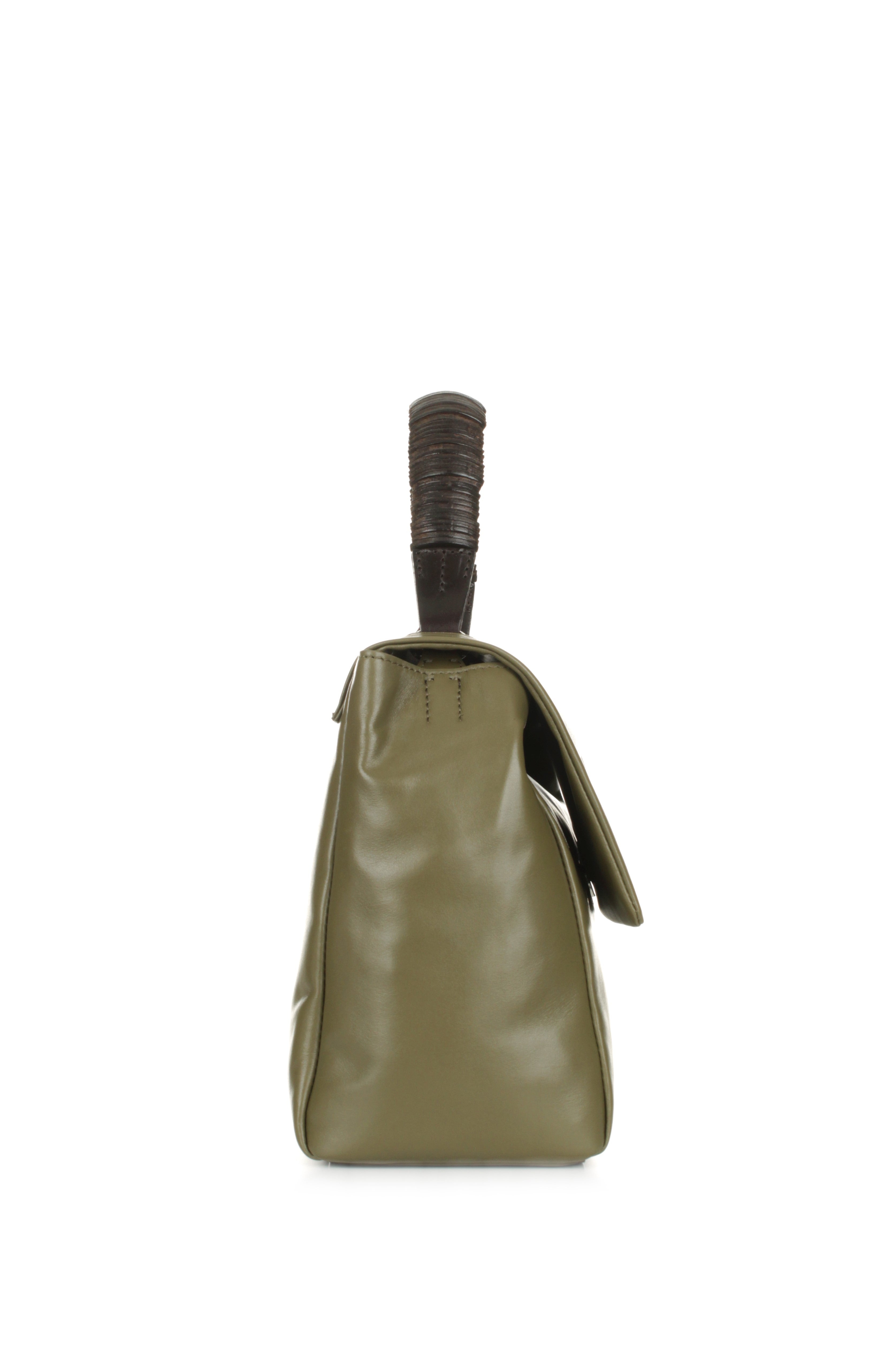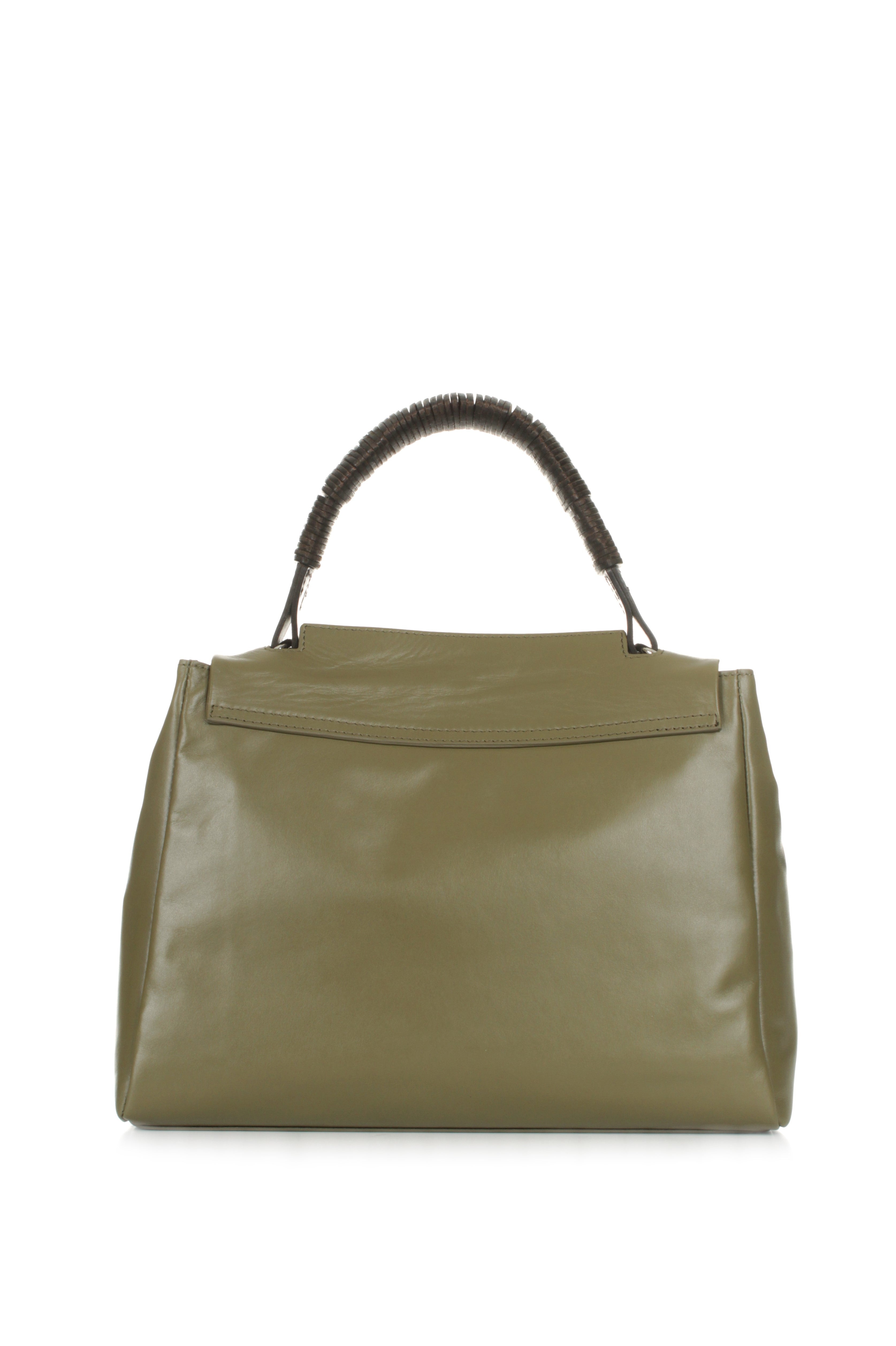 A sophisticated tribute to the serene depths of nature, the Sveva Jungle Media in the captivating Oasi shade redefines contemporary elegance for the Spring Summer season. This Made in Italy masterpiece, crafted from exceptionally supple smooth calfskin, features a unique spiral-wound leather handle that serves as a bold structural statement. Its refined silhouette balances visual purity with everyday utility, offering a spacious interior with three dedicated pockets and a secure magnetic flap closure. The addition of a removable, adjustable shoulder strap allows for effortless transitions between styles, while the cool nickel-palladium hardware accents the deep green hue with artisanal brilliance. Designed for the discerning curator of style, the Sveva Jungle Oasi is an investment in timeless craftsmanship and modern sophistication.