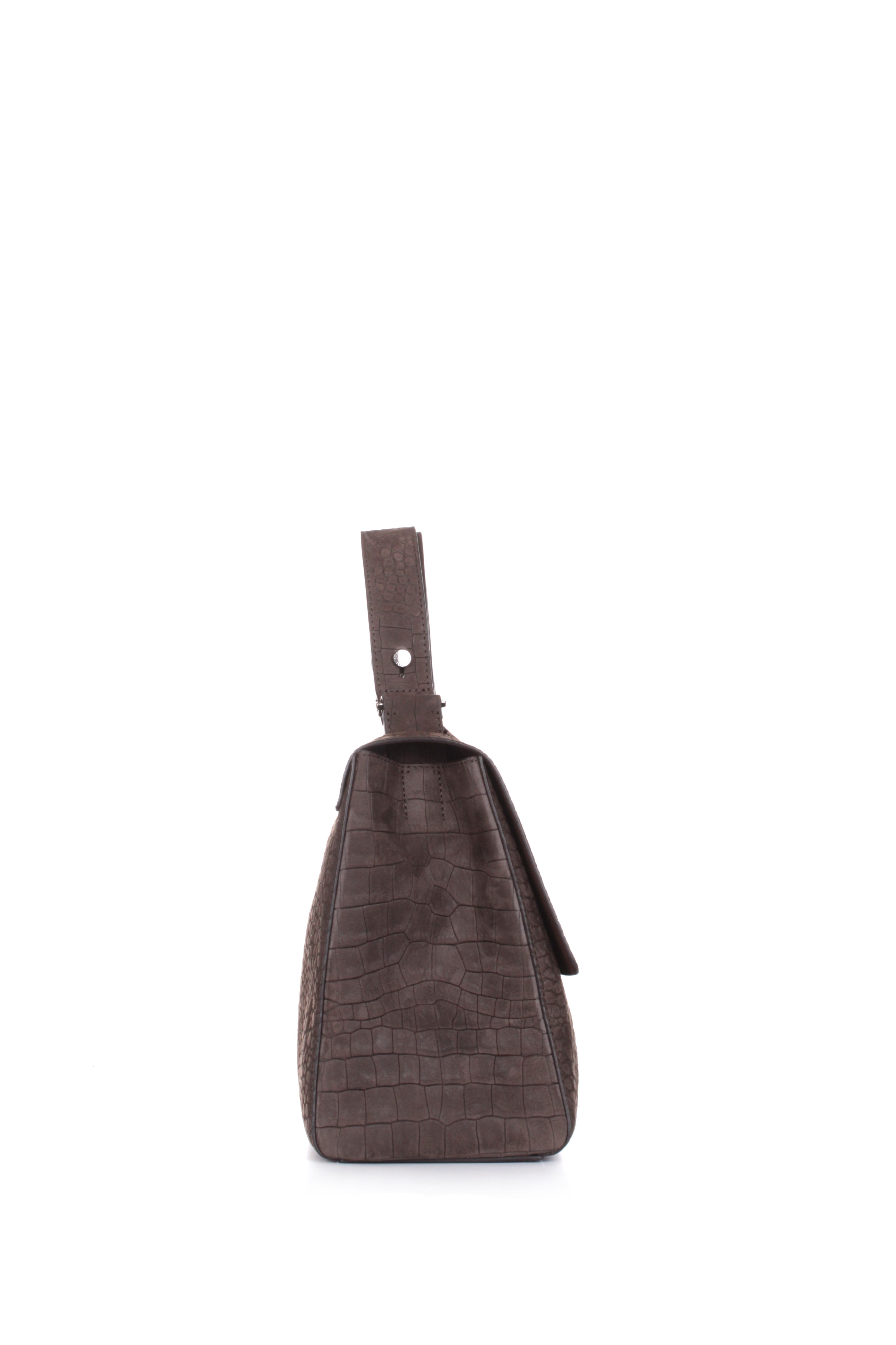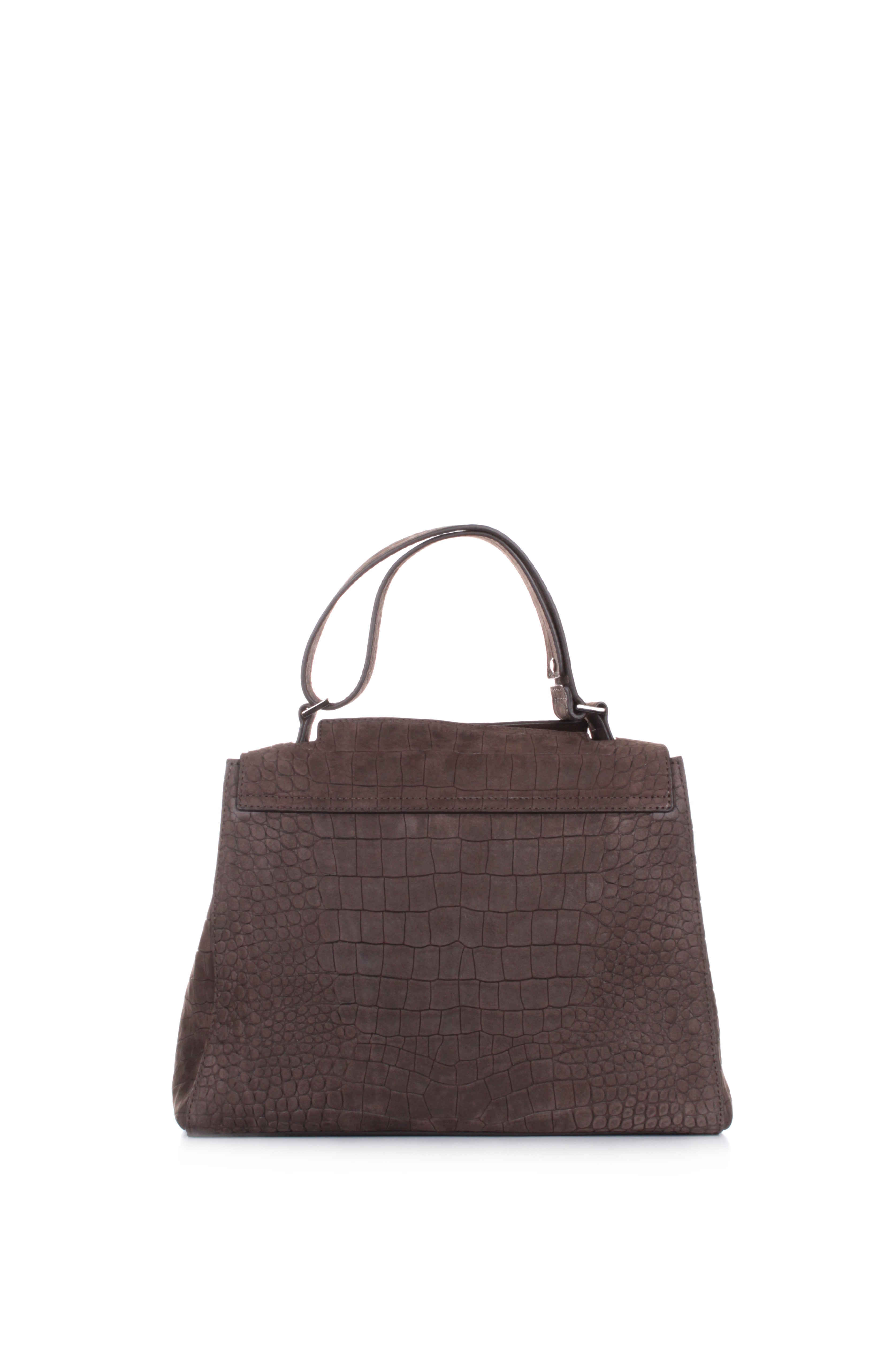 Orciani Sveva Nabucco Medium bag in dark brown nubuck leather embodies Italian sophistication and modern versatility. Crafted from premium hammered nubuck leather, it features a velvety, tactile surface that enhances its natural elegance. The deep brown tone and structured yet soft silhouette make it an essential accessory for both everyday wear and refined occasions. Inside, three compartments — including one with a zip — offer perfect organization, while the elongated top handle and adjustable, detachable strap allow for multiple carrying options: by hand, on the shoulder, or crossbody. Polished gold-finish hardware adds a touch of luminosity, elevating its understated luxury. A timeless piece that reflects Orciani’s commitment to craftsmanship, elegance, and effortless functionality.