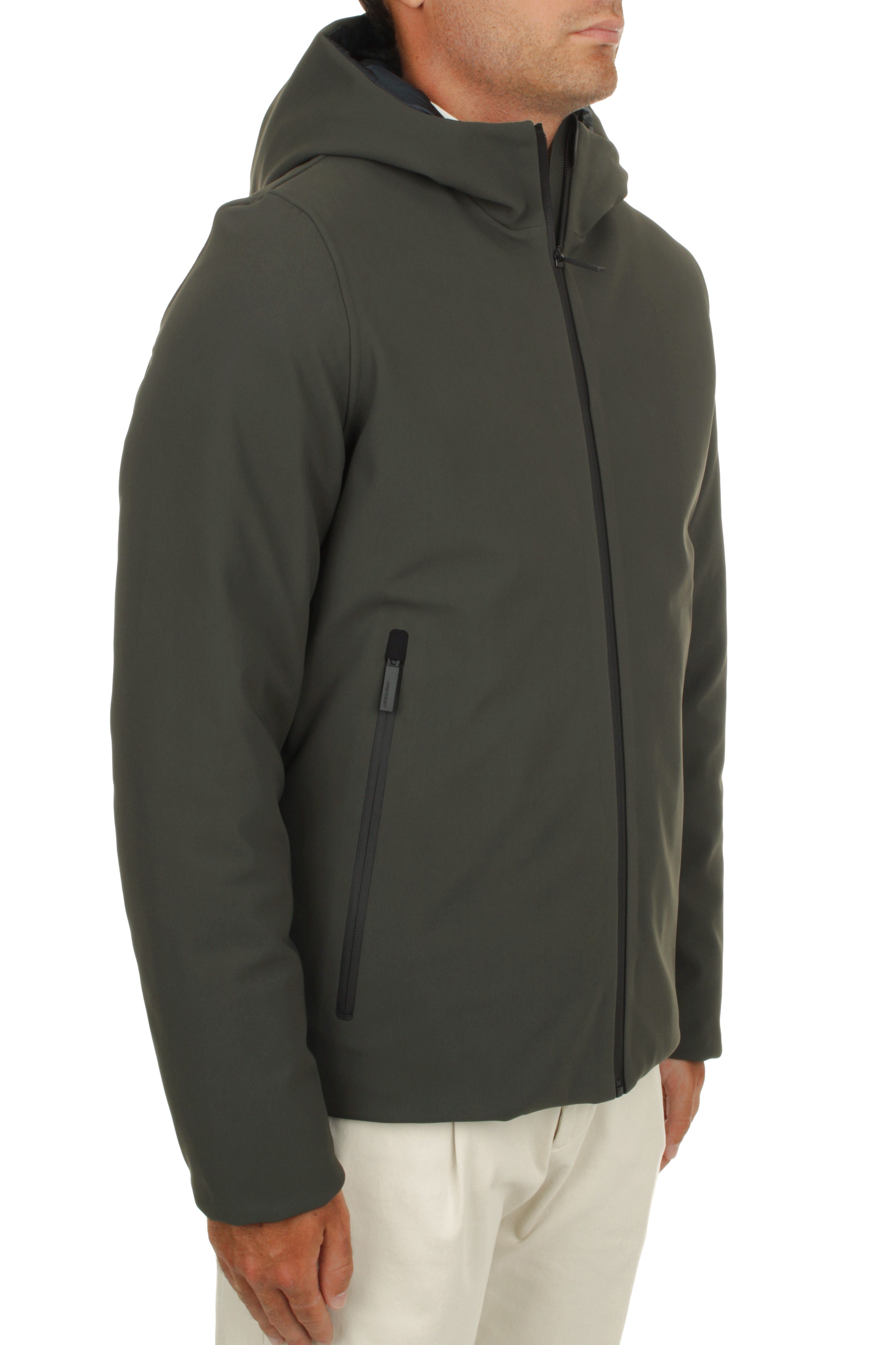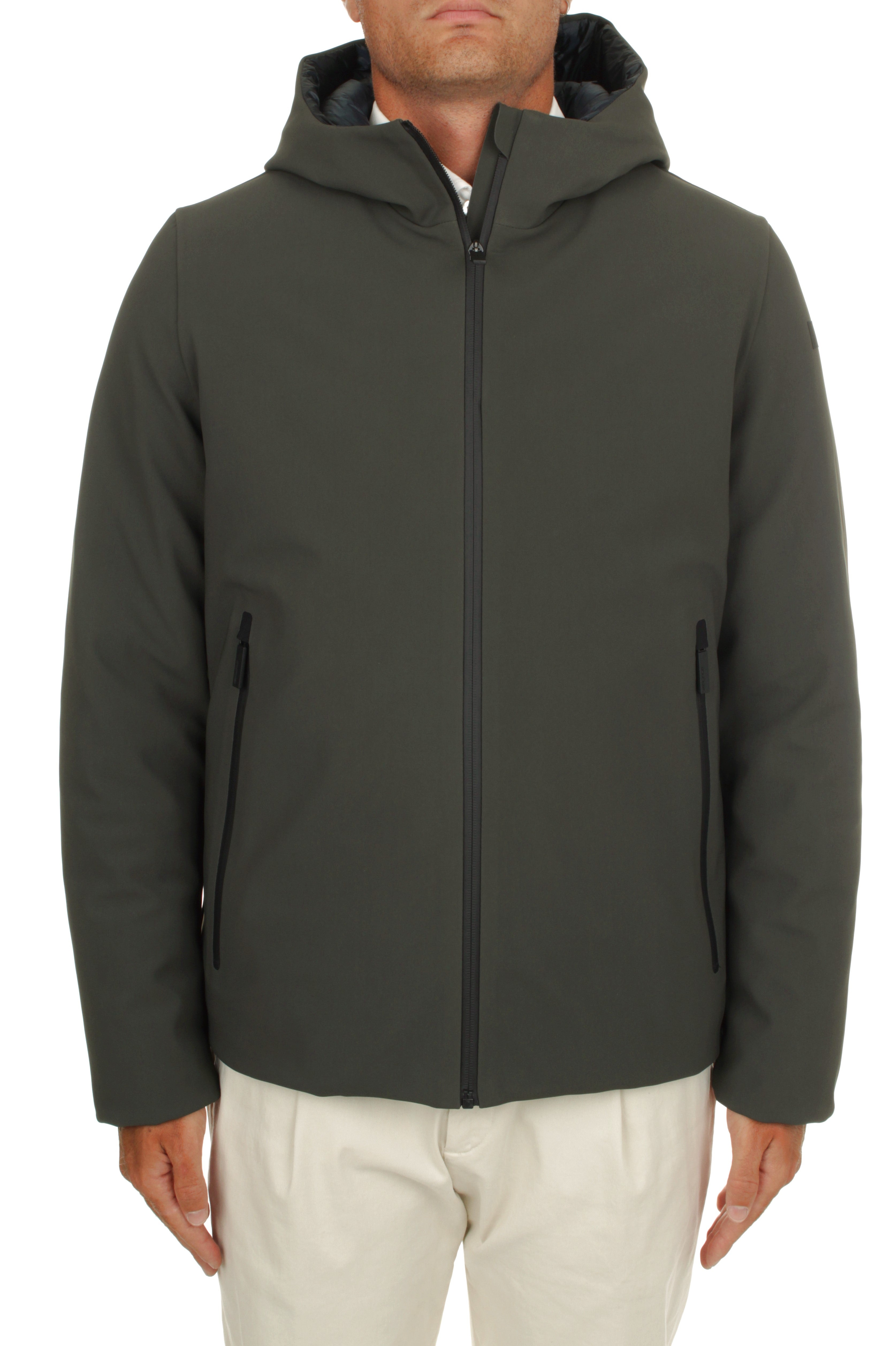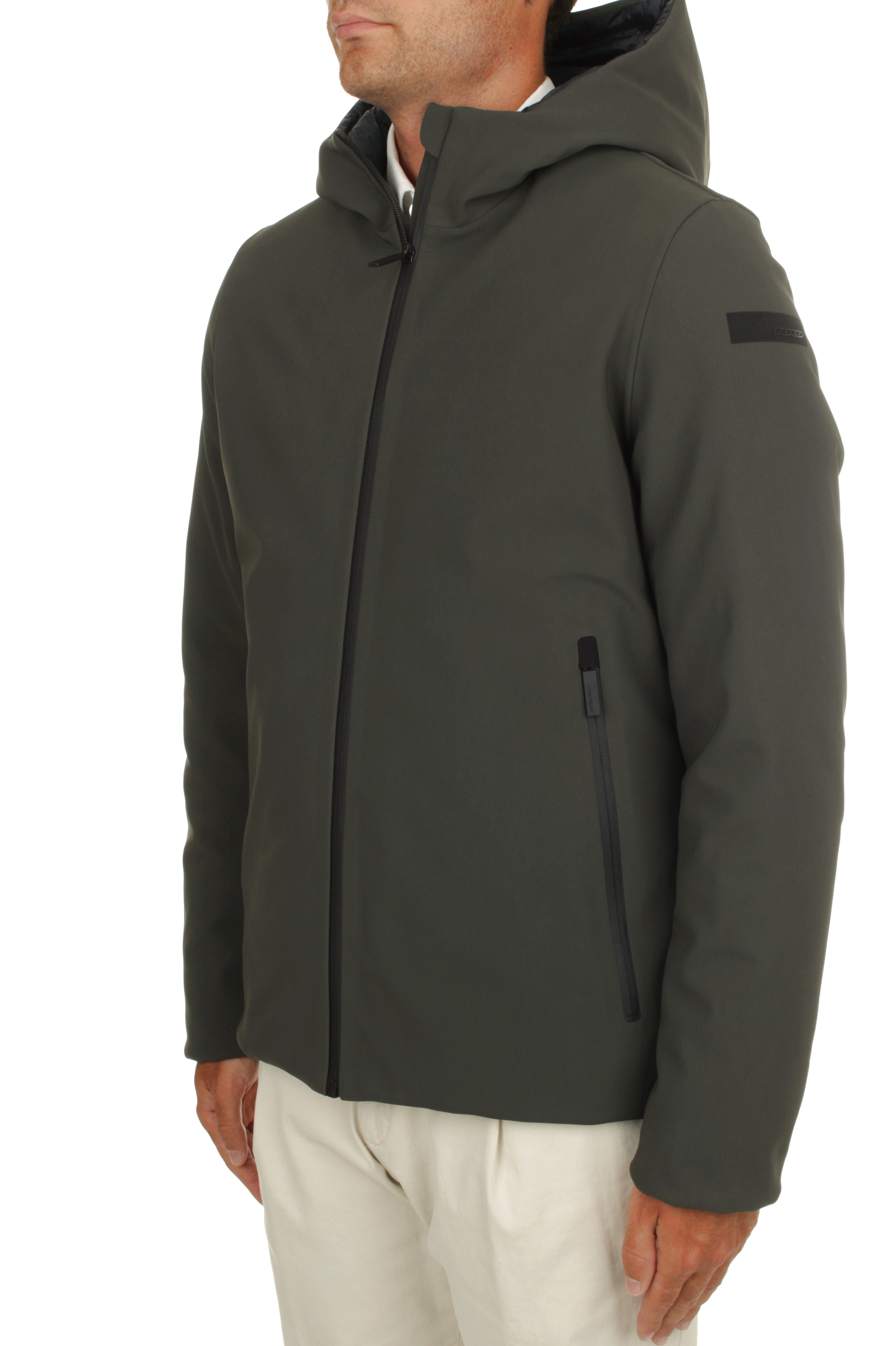 RRD Winter Storm down jacket is made of 79% polyamide and 21% elastane and features down insulation, zip closure, two side pockets with zip closure and brand logo patch on the left sleeve. Slim fit. Model is 180 cm tall and he wears size 48.