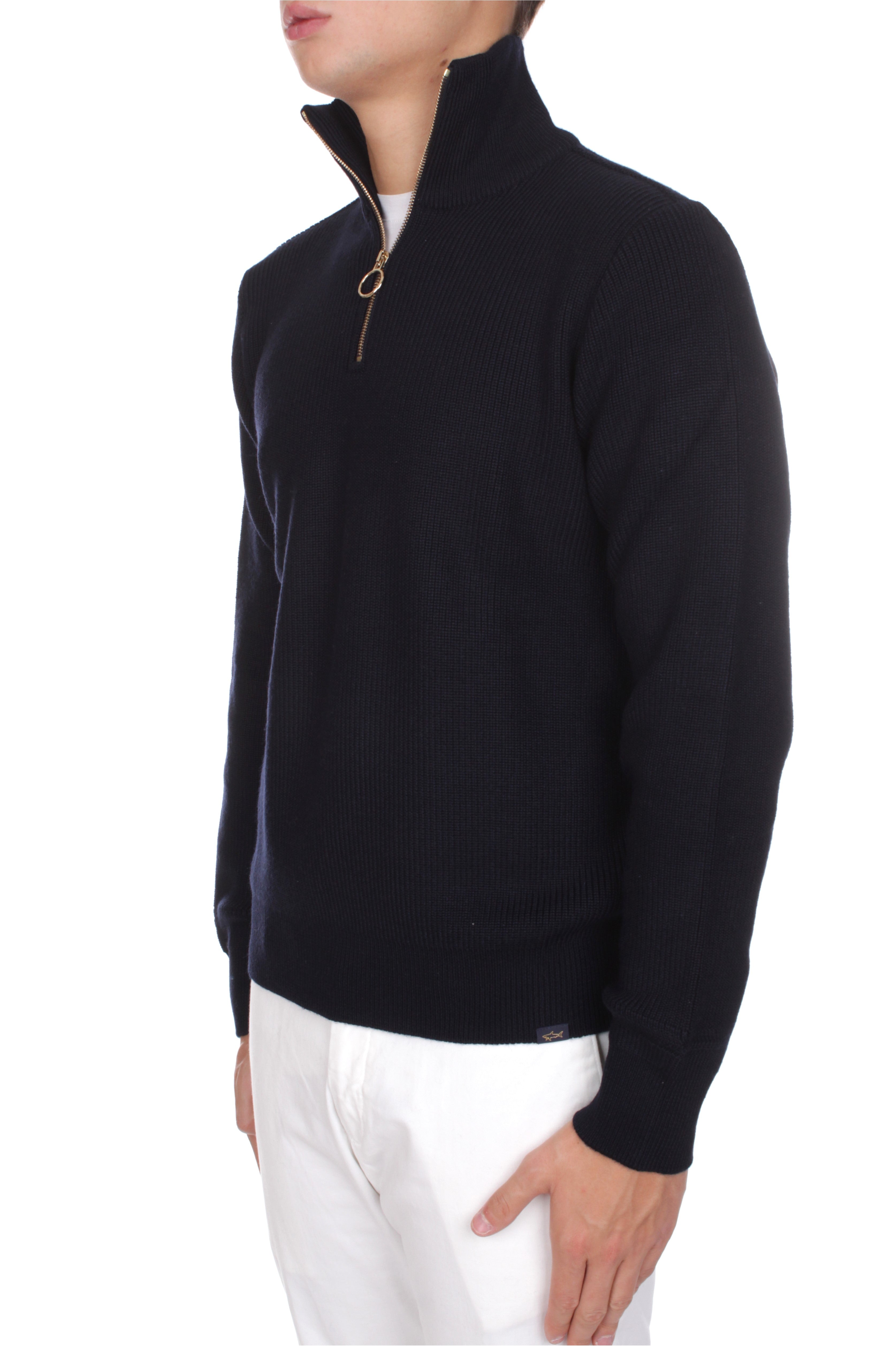 Paul & Shark sweater is made of 50% wool and 50% acrylic and features half zip closure. Slim fit. Model is 180 cm tall and wears size M.