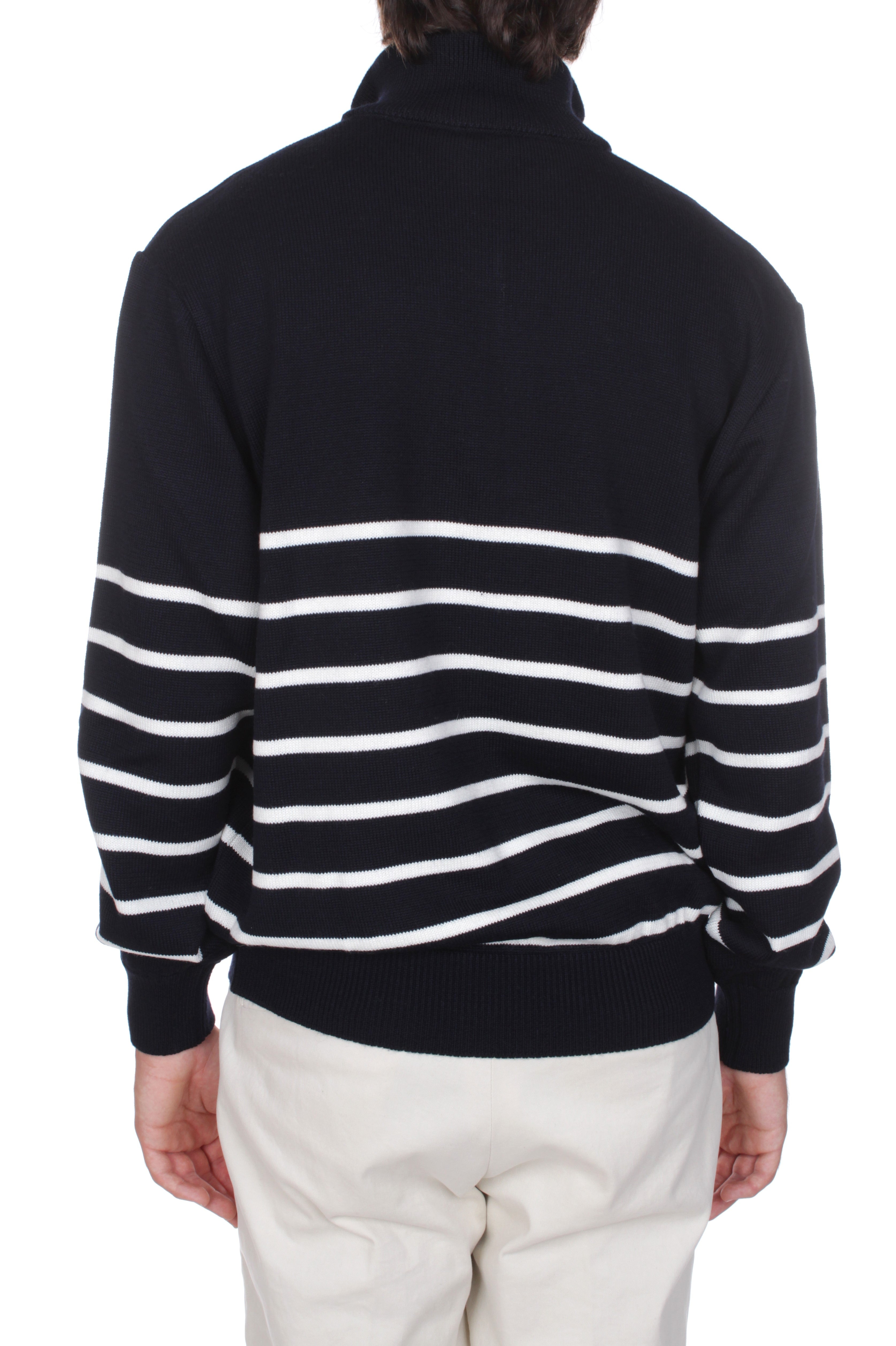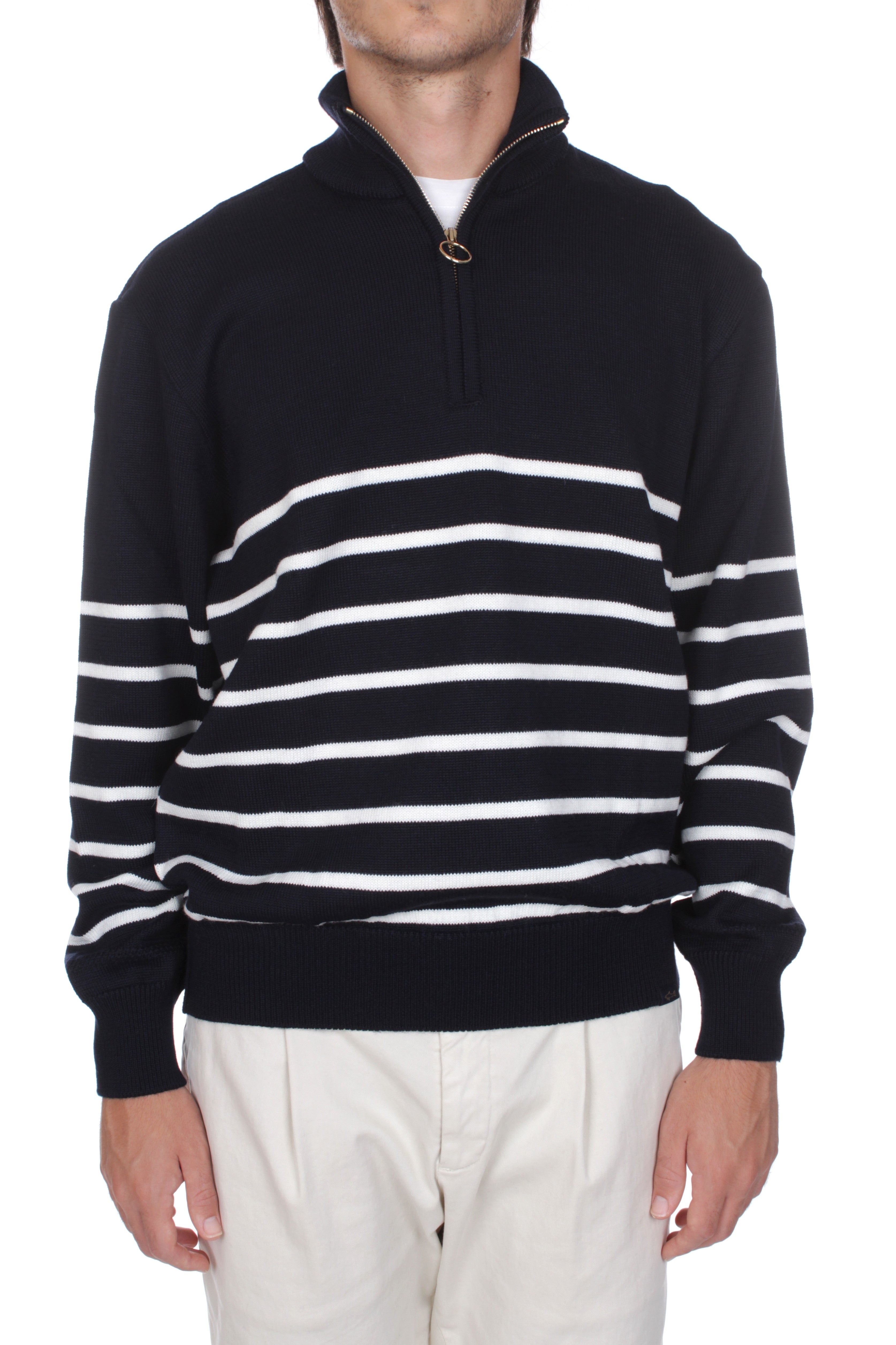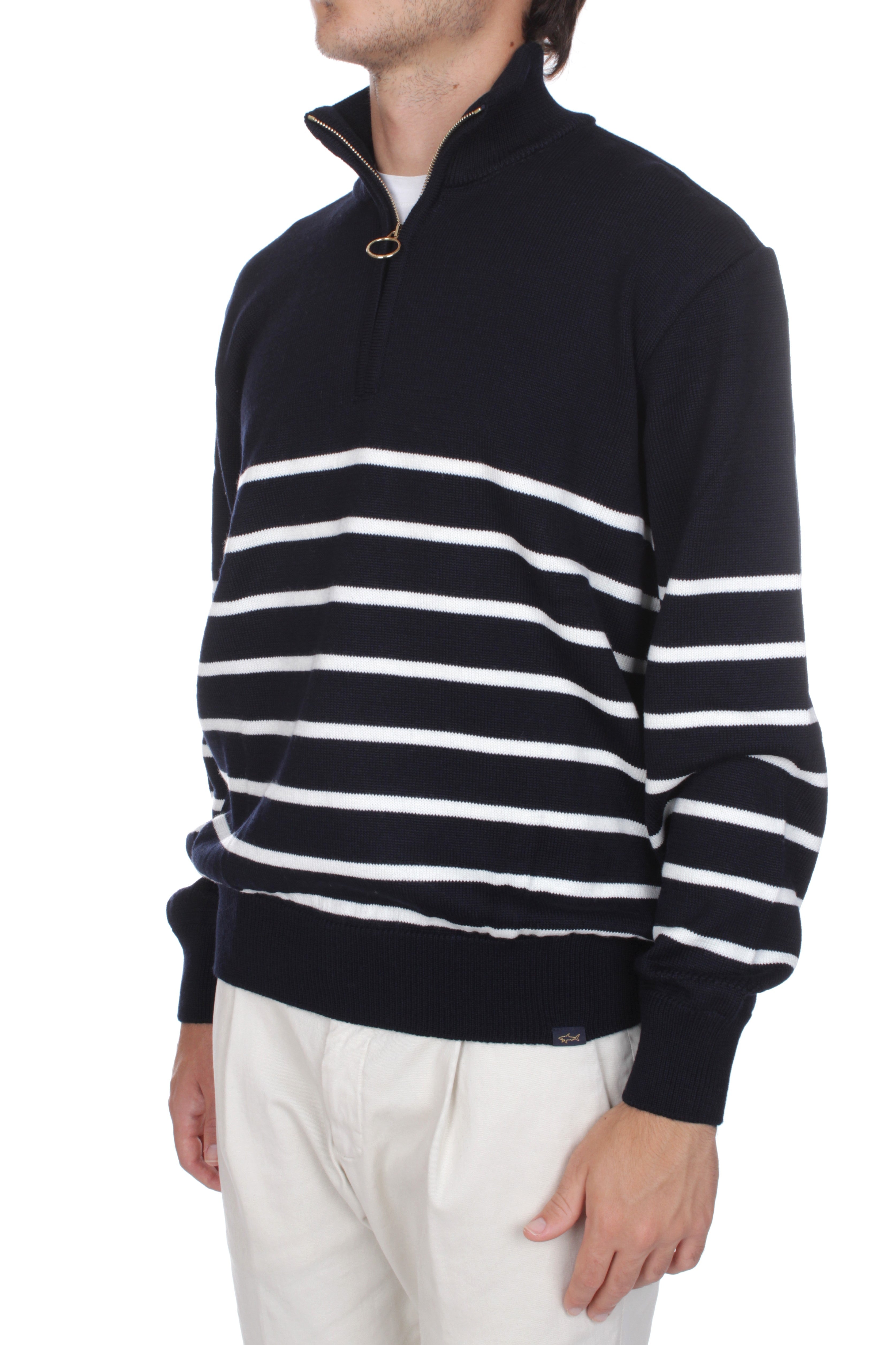 Paul & Shark sweater is made of 50% wool and 50% acrylic and features half zip closure. Slim fit. Model is 180 cm tall and wears size M.