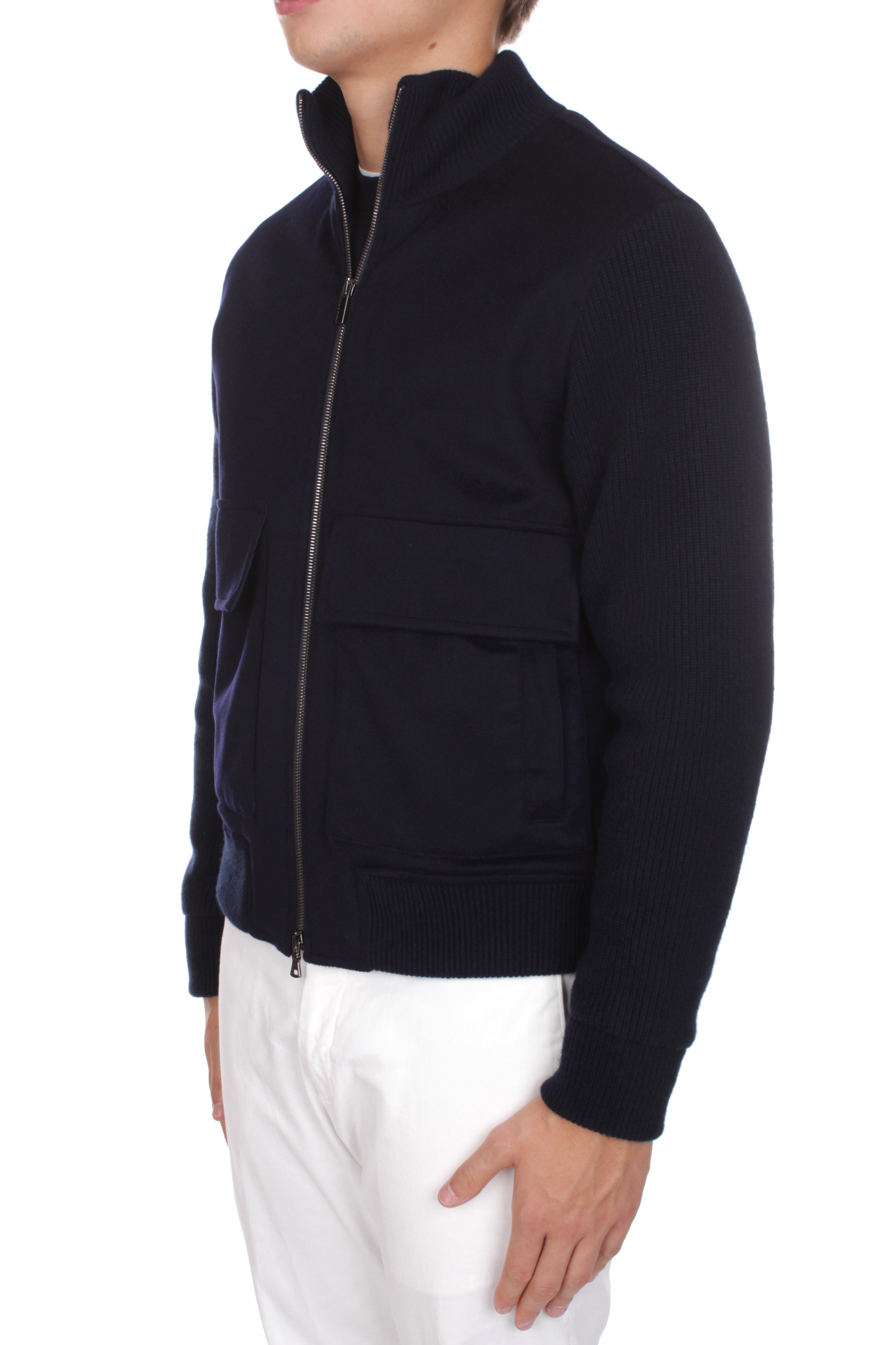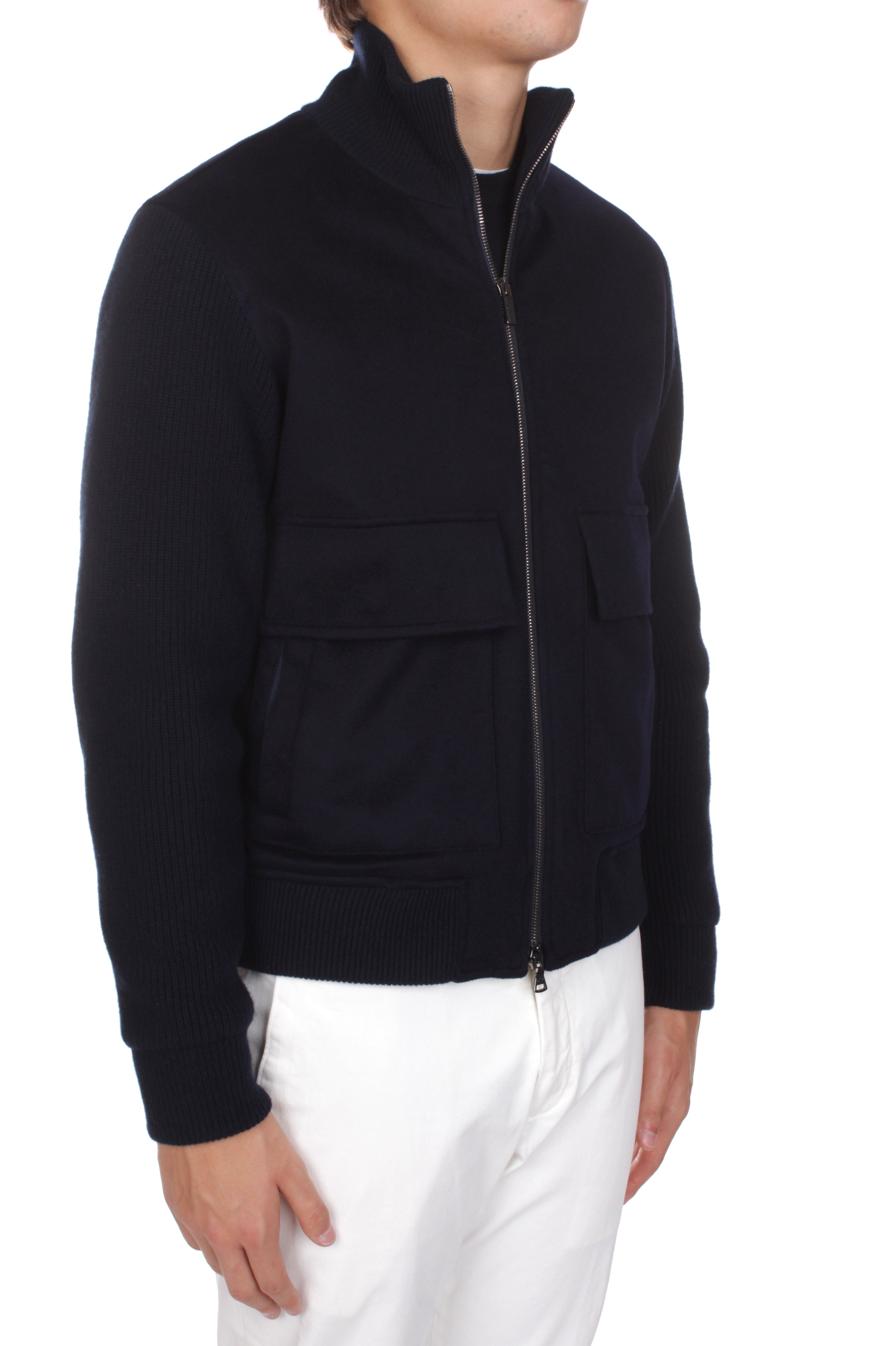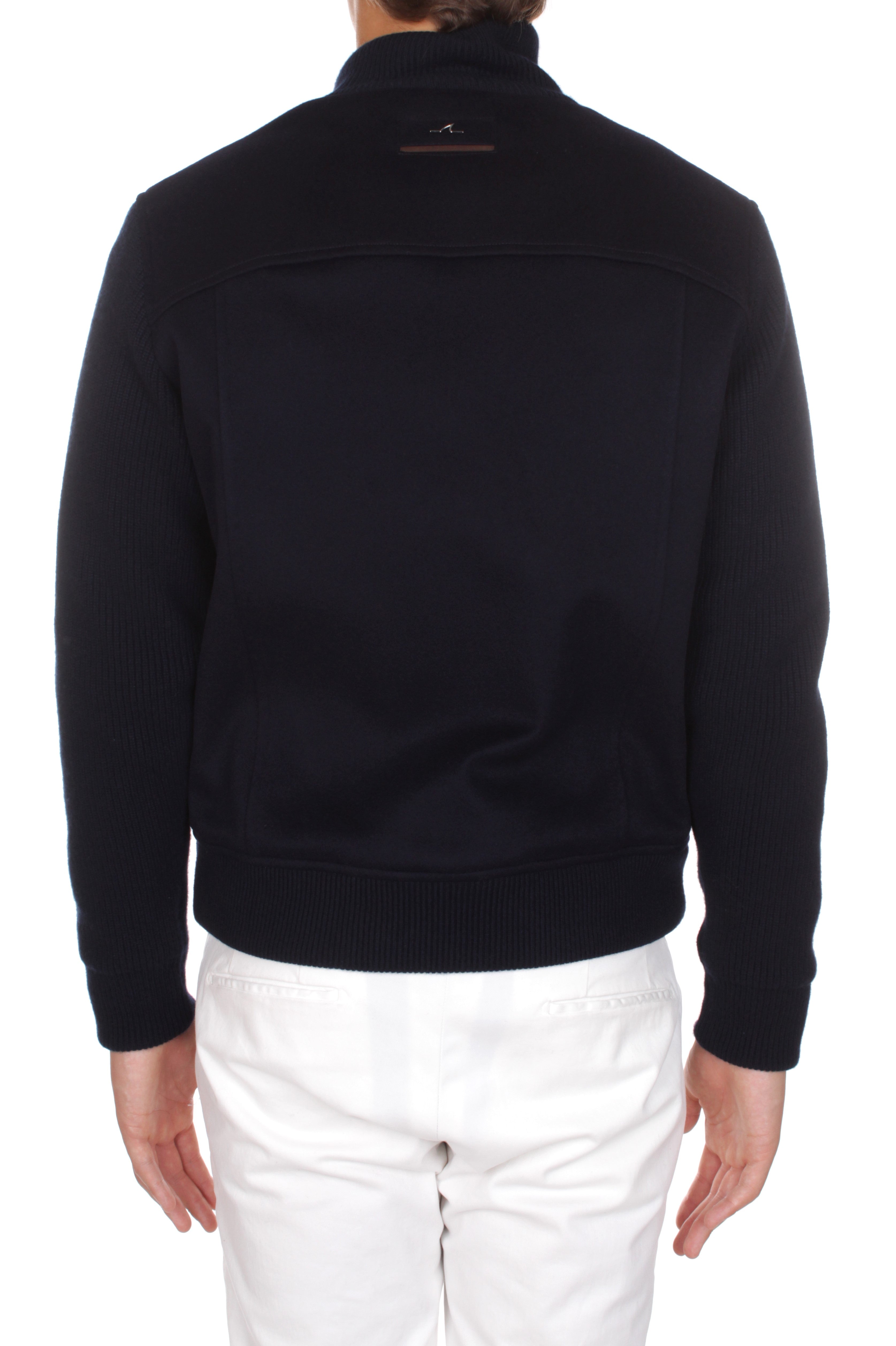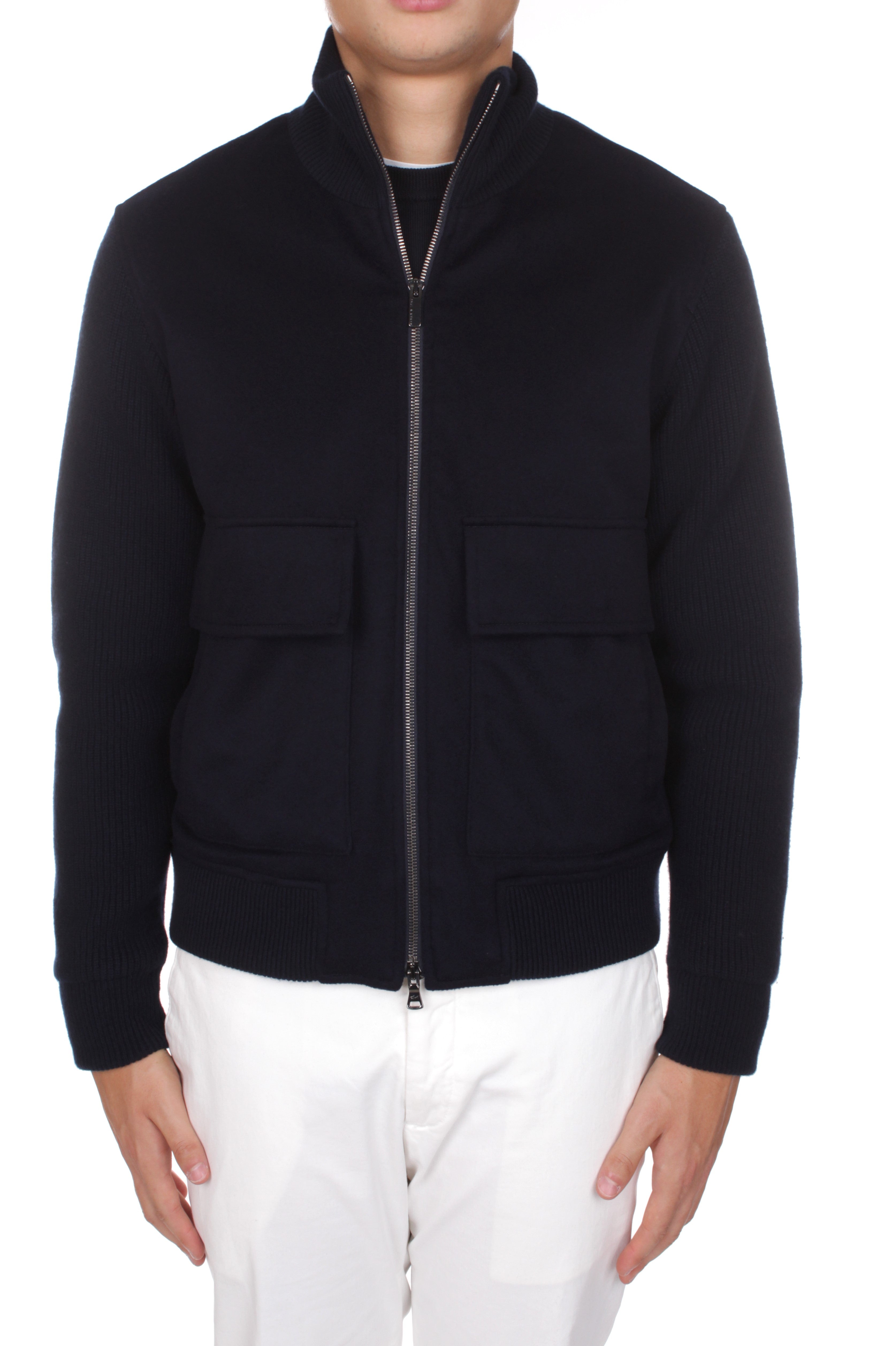 Paul & Shark jacket is made of 45% wool, 30% viscosa and 25% cashmere and features double slider zip closure, two side welt pockets and two side patch pockets with flap and snap button closure. Slim fit. Model is 180 cm tall and wears size M. Made in Italy.