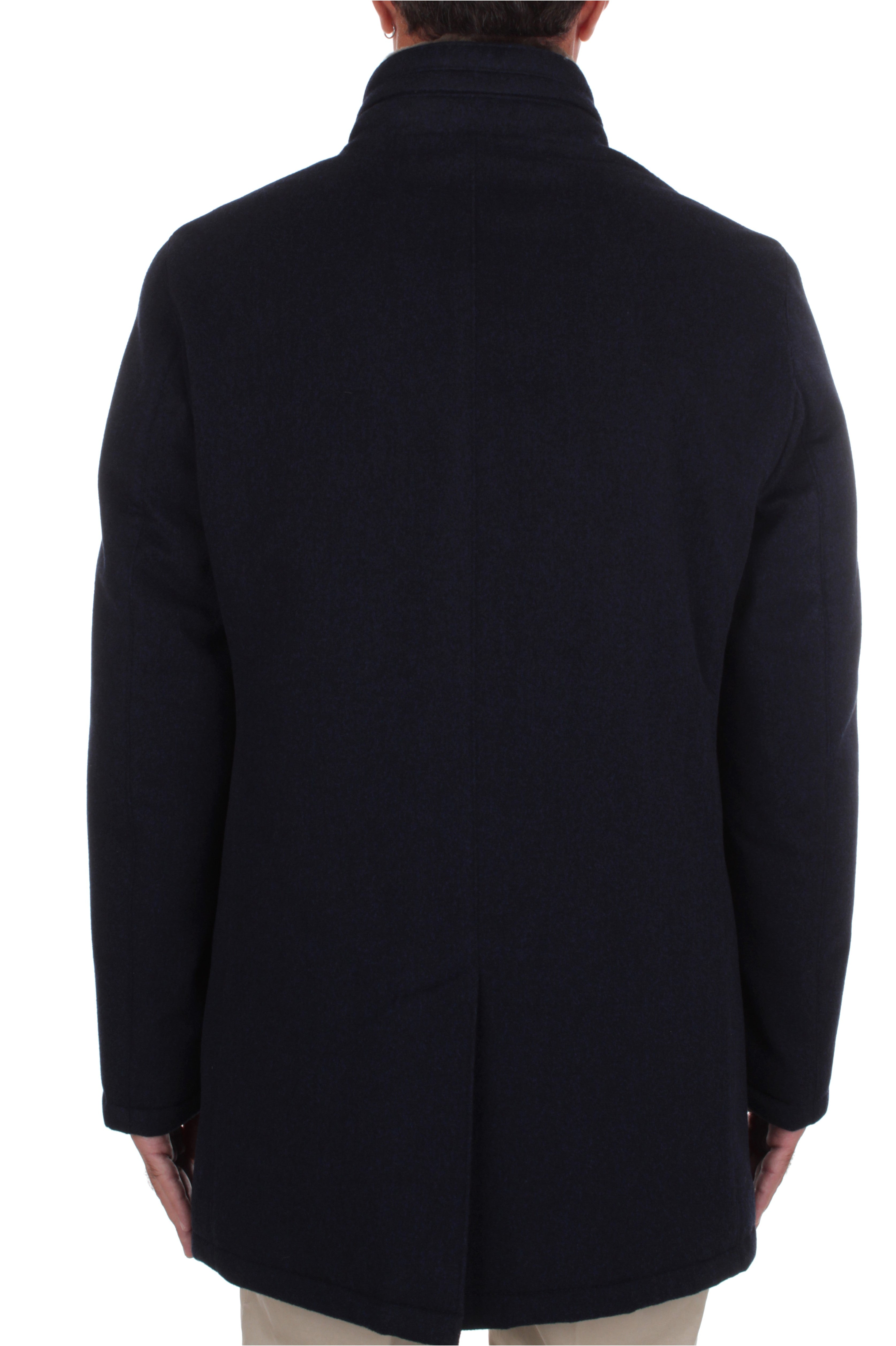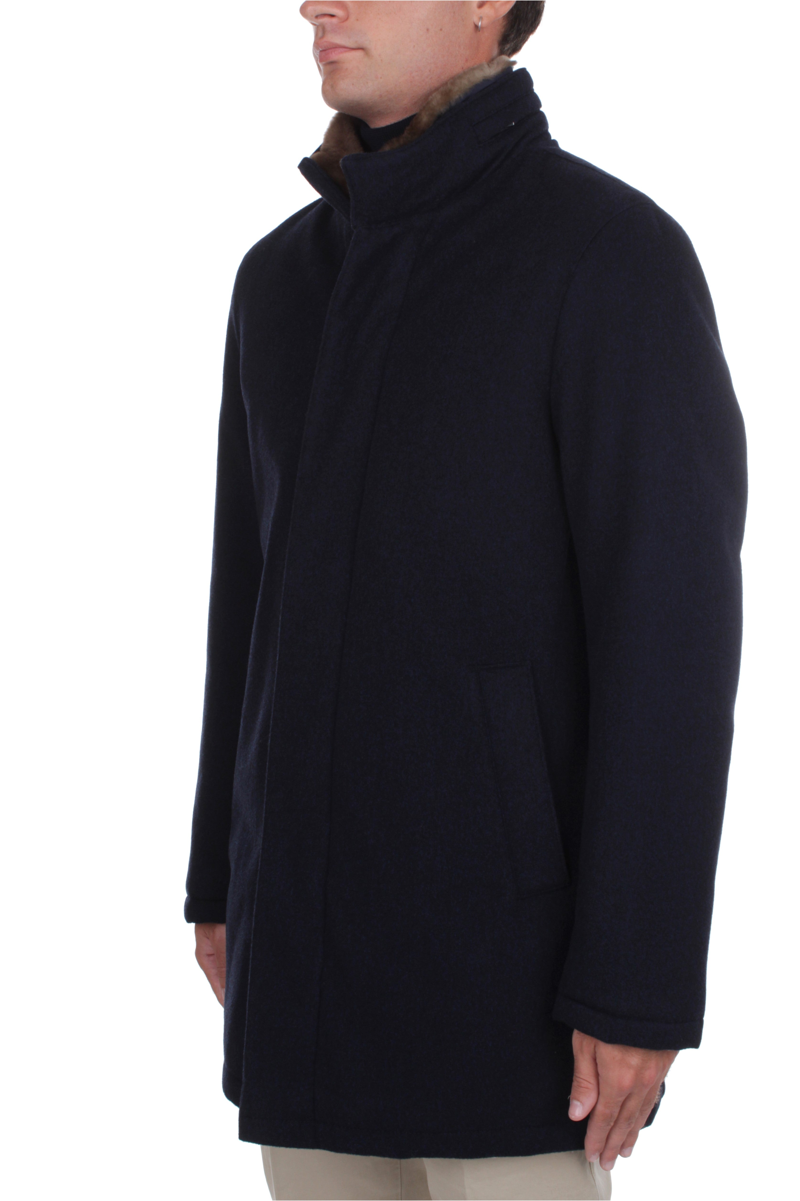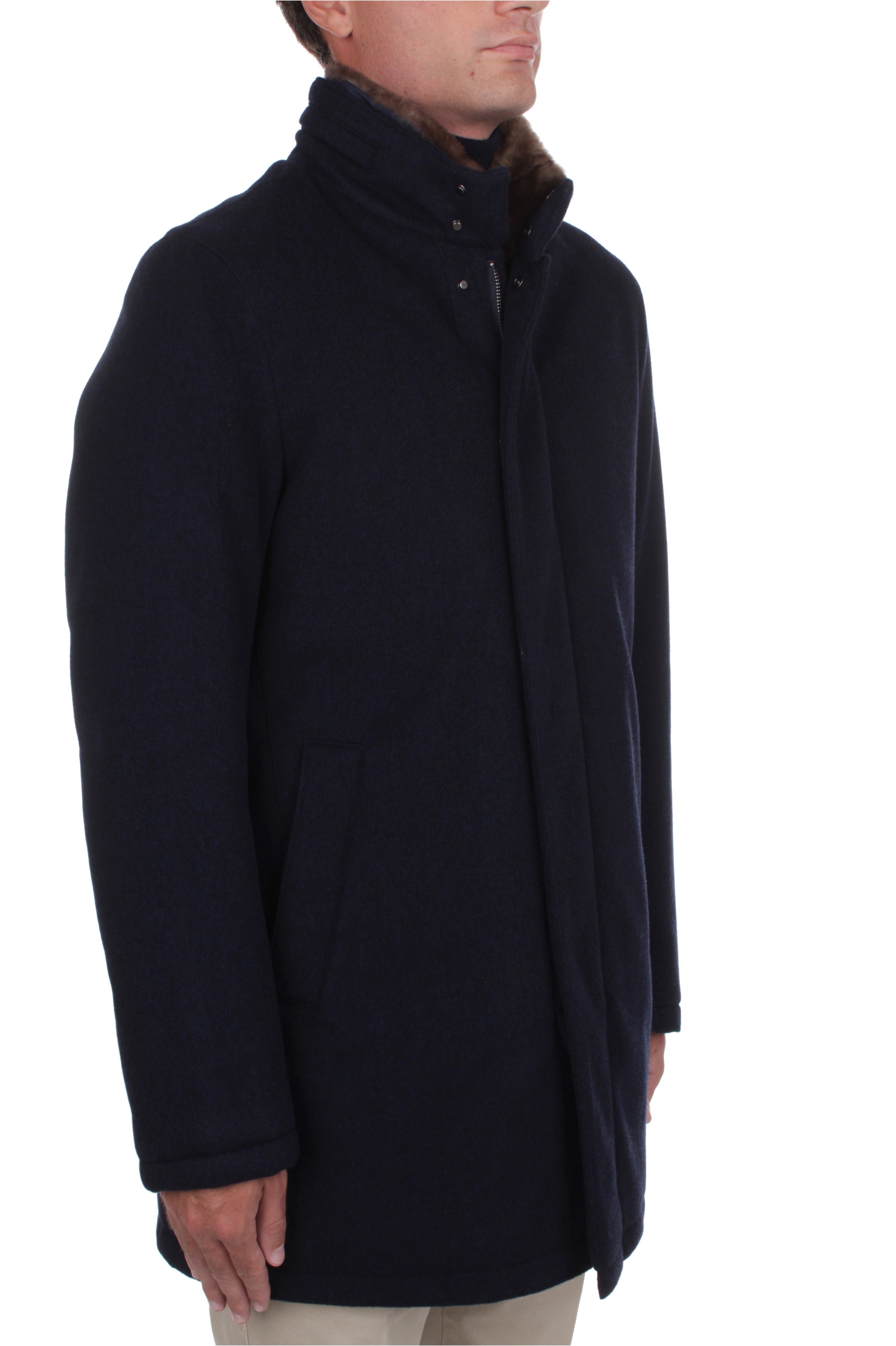 Michi D’Amato Connor quilted jacket is made of 100% virgin wool Loro Piana fabric and features polyester lining, double slider zip and snap button closure, two side welt pockets with snap button closure, retractable hood and detachable collar fur. Regular fit. Model is 180 cm tall and wears size 48. Made in Italy.