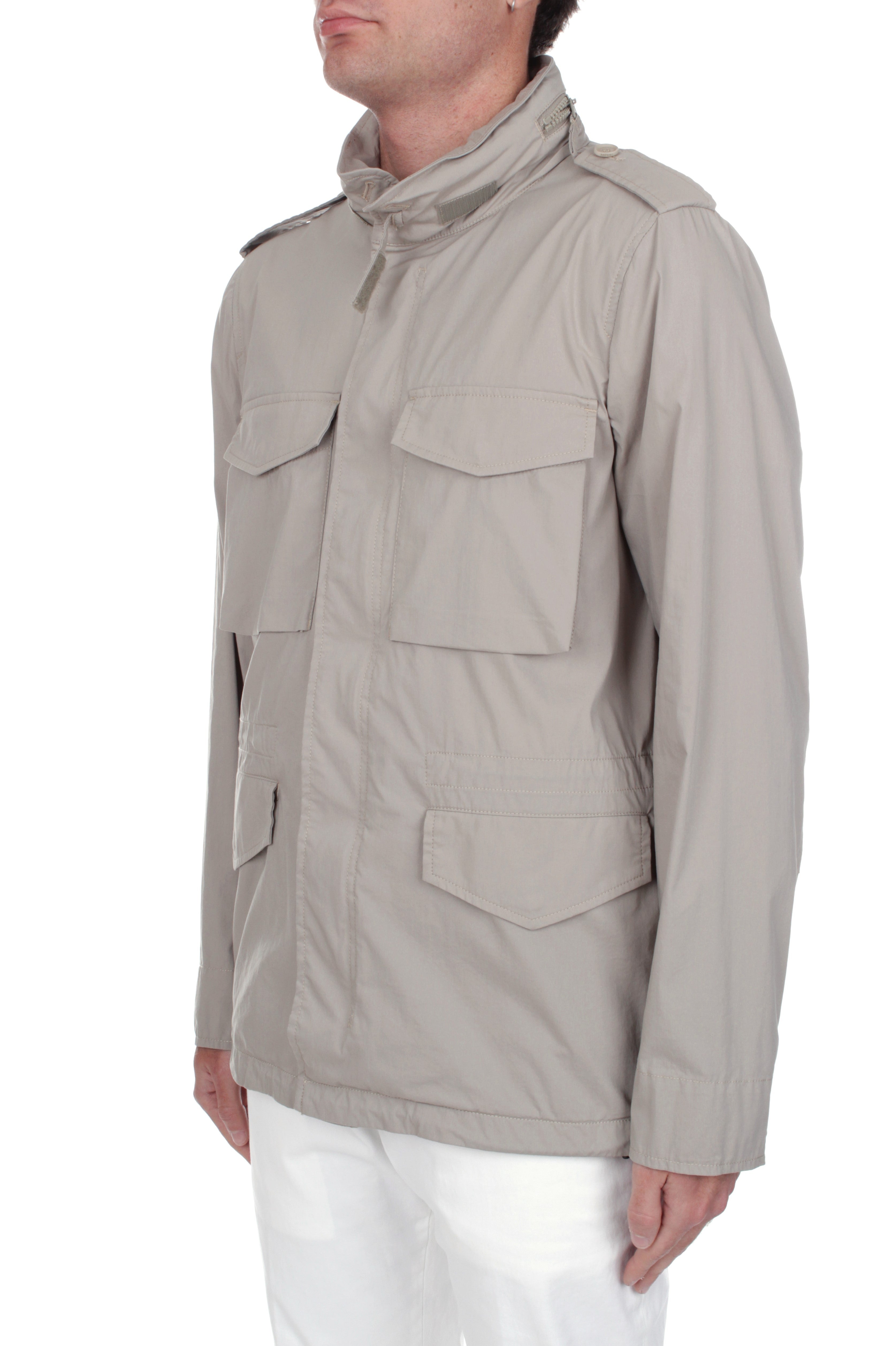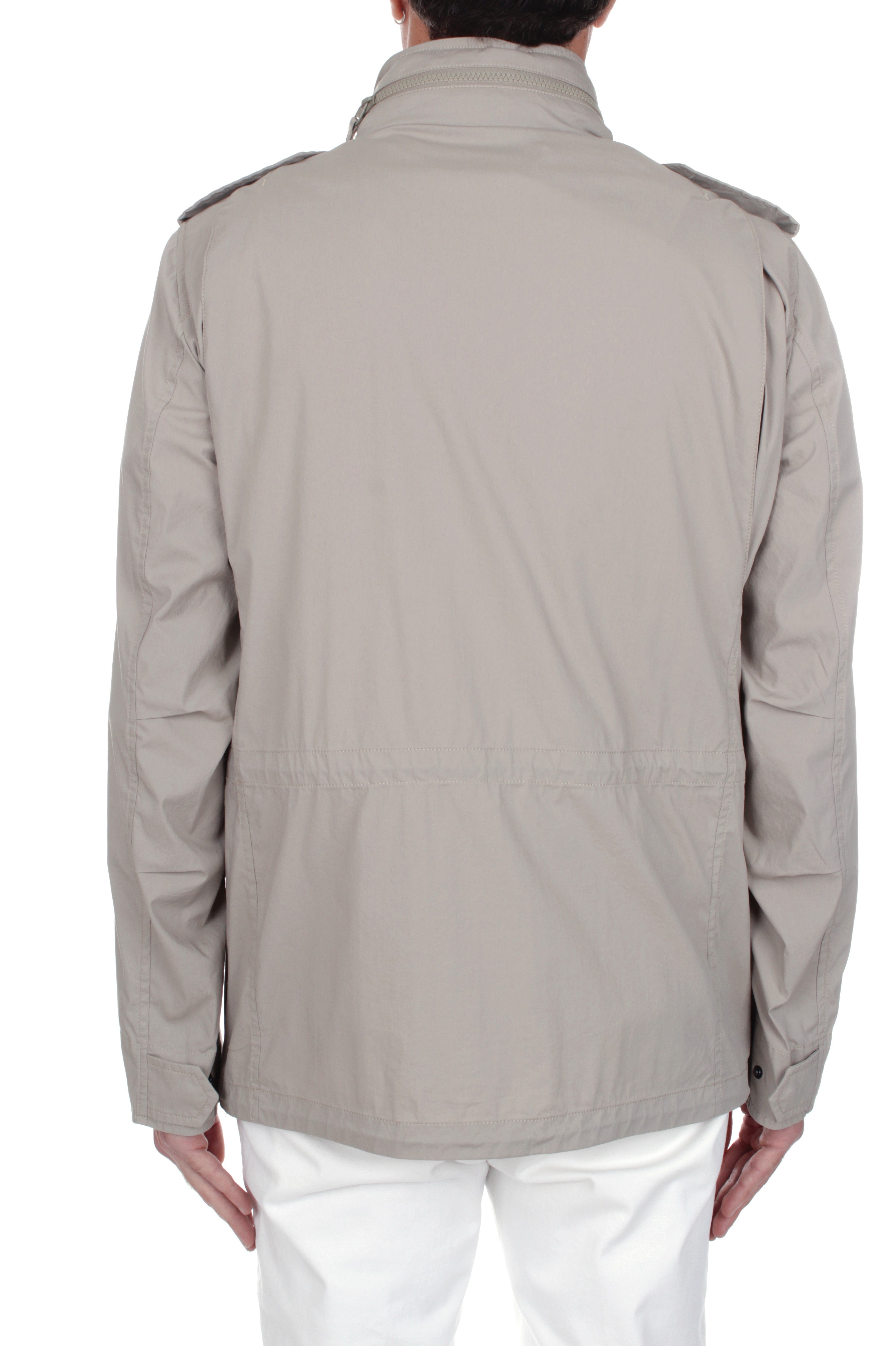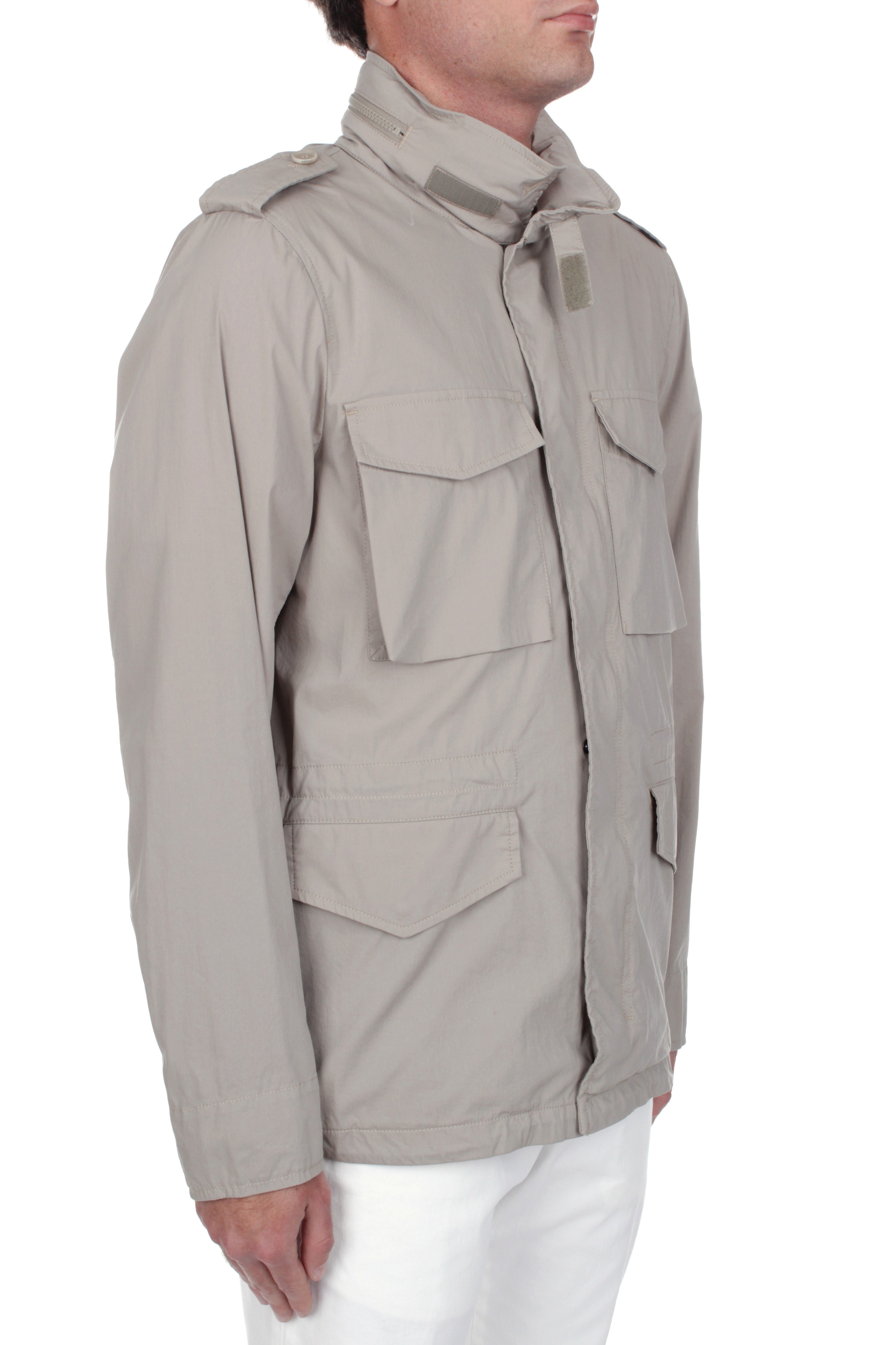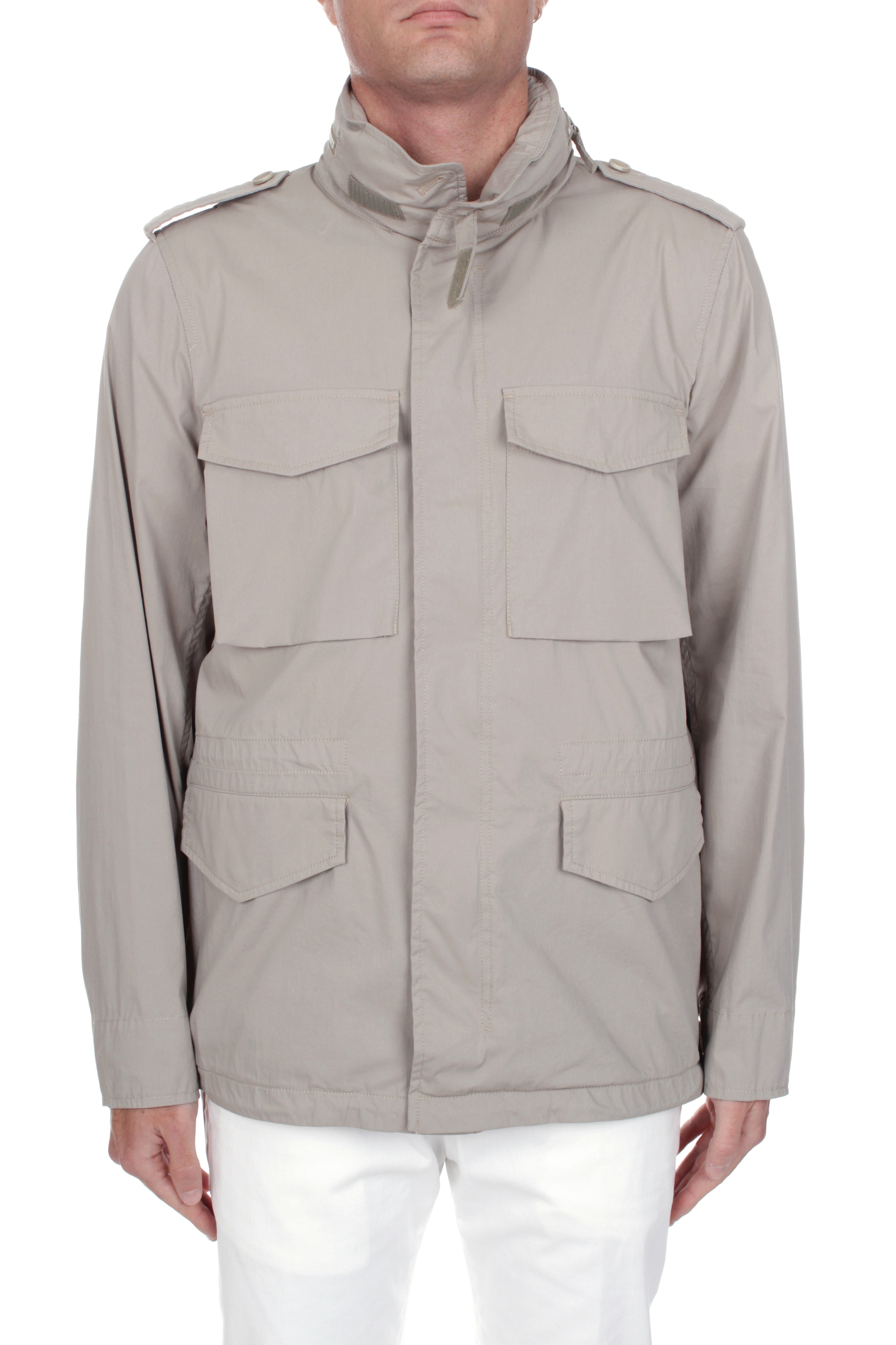 Aspesi field jacket is made of 62% cotton, 35% polyamide and 3% elastane and features double slider zip and snap button closure, two side welt pockets with flap and snap button closure, two chest patch pockets with flap and snap button closure and hidden hood. Regular fit. Model is 180 cm tall and wears size M.