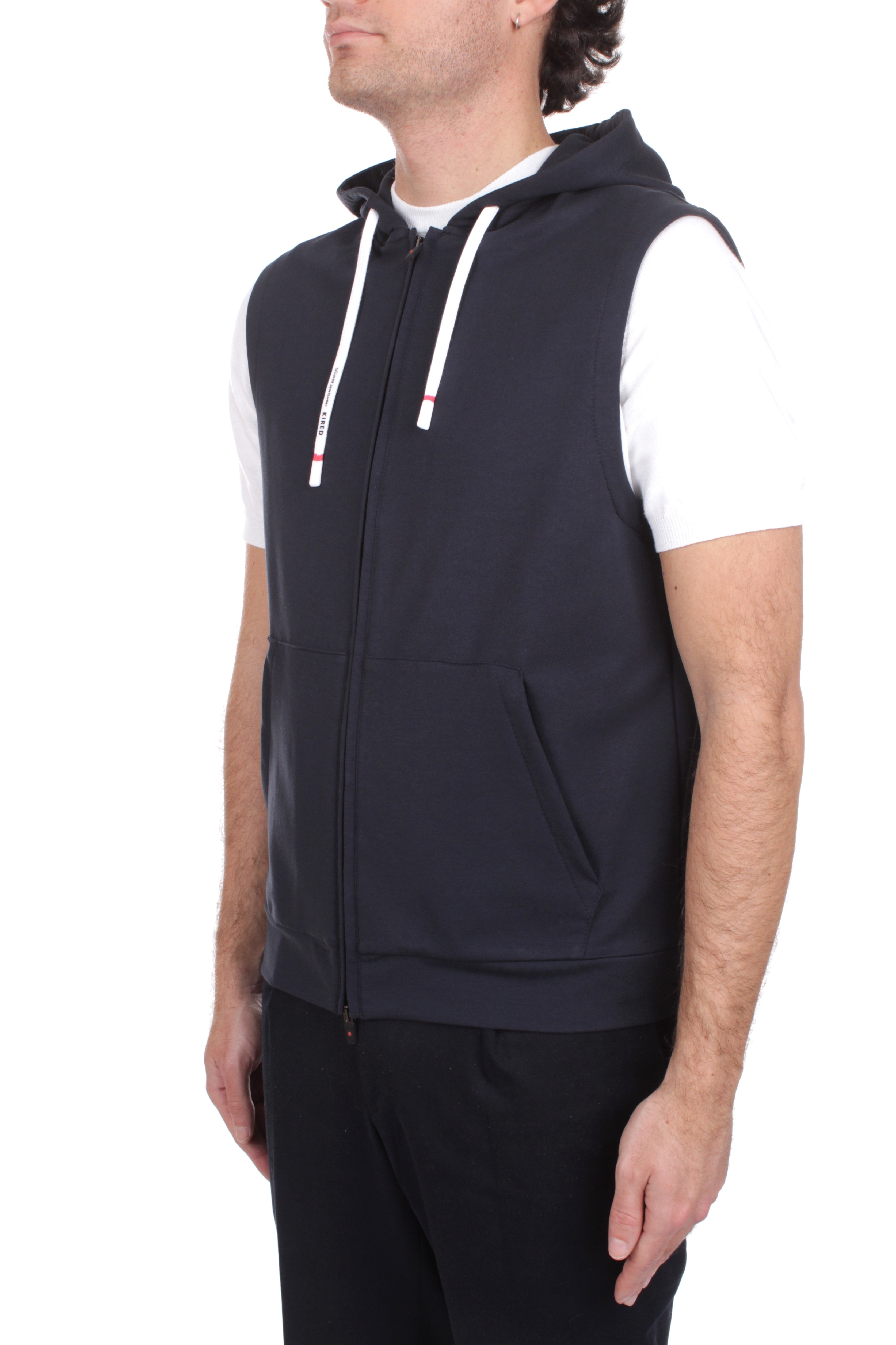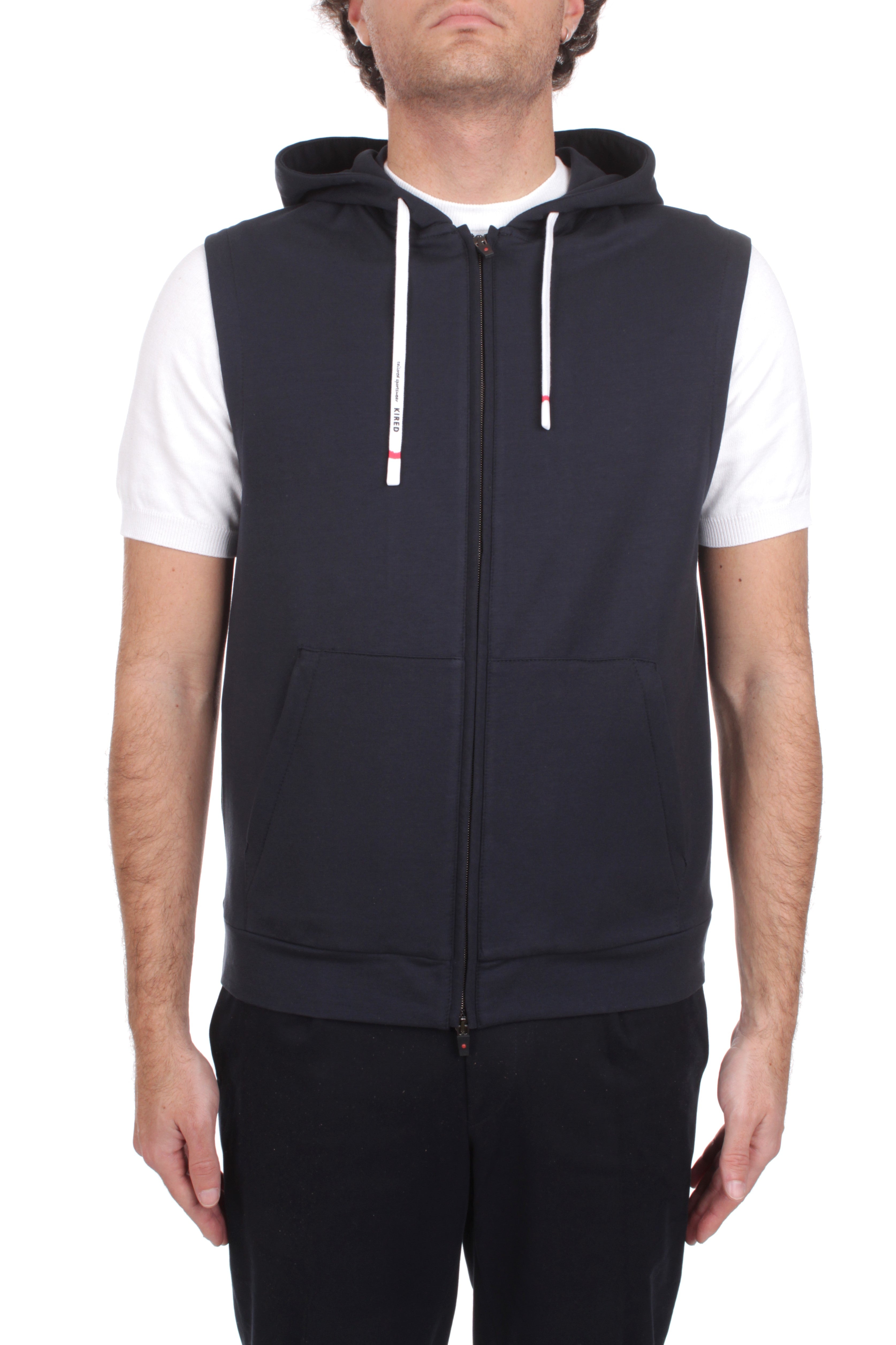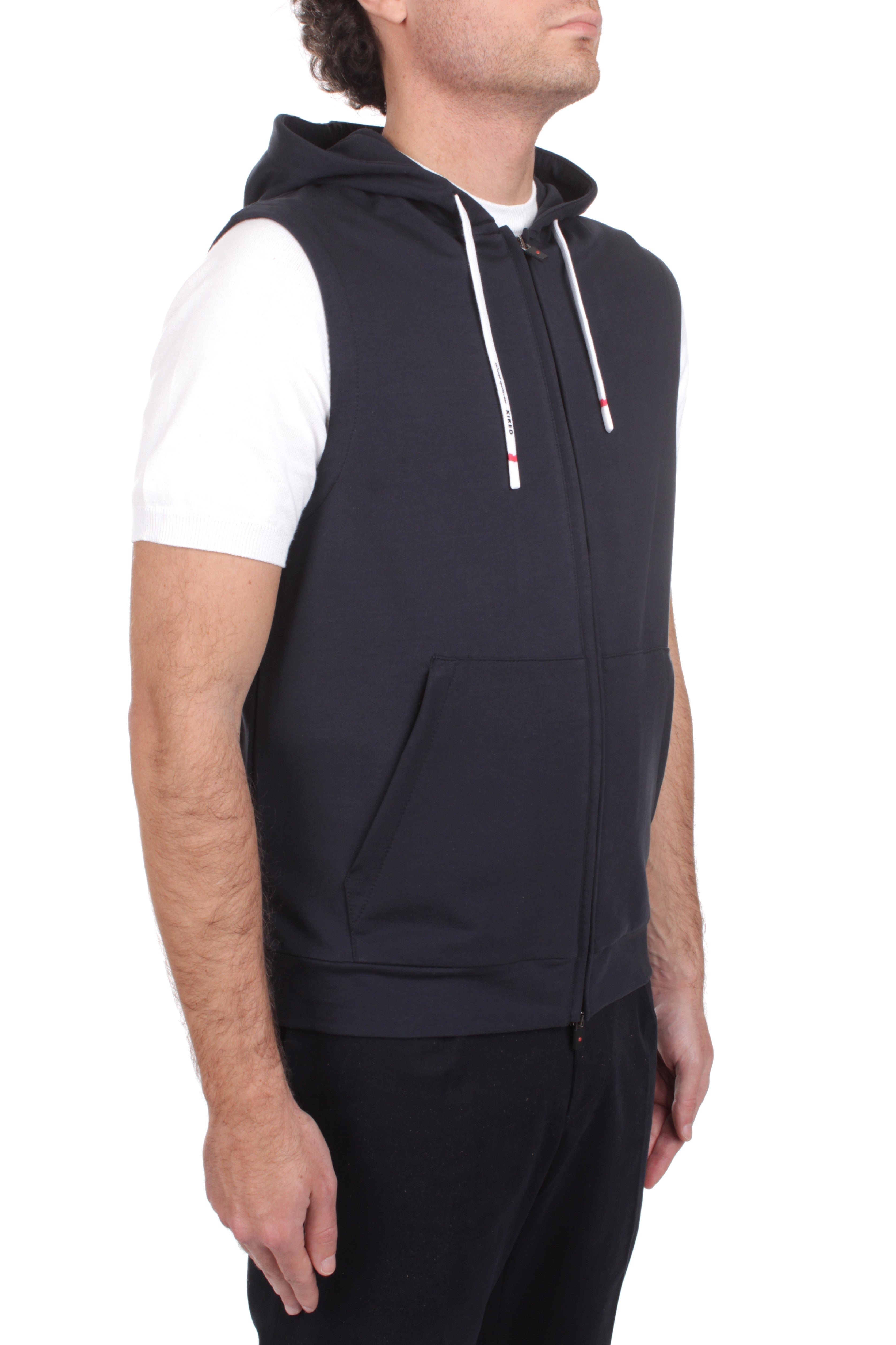 The spirit of refined leisure finds its ultimate expression in a garment that balances athletic dynamism with Italian sartorial excellence. This Kired sleeveless hoodie is a definitive staple for the Spring Summer season, offering an elevated approach to casual layering. Expertly crafted in Italy from a premium cotton-rich blend with a touch of elastane, it ensures a sharp slim fit and exceptional recovery. The design features a functional hood, a versatile two-way zip closure, and secure side zip pockets, maintaining a streamlined silhouette that caters to the modern global traveler. Perfect for those who appreciate tactile luxury and a sophisticated sporty aesthetic, this piece provides an effortless transition from the gym to the yacht with incomparable grace and quality.