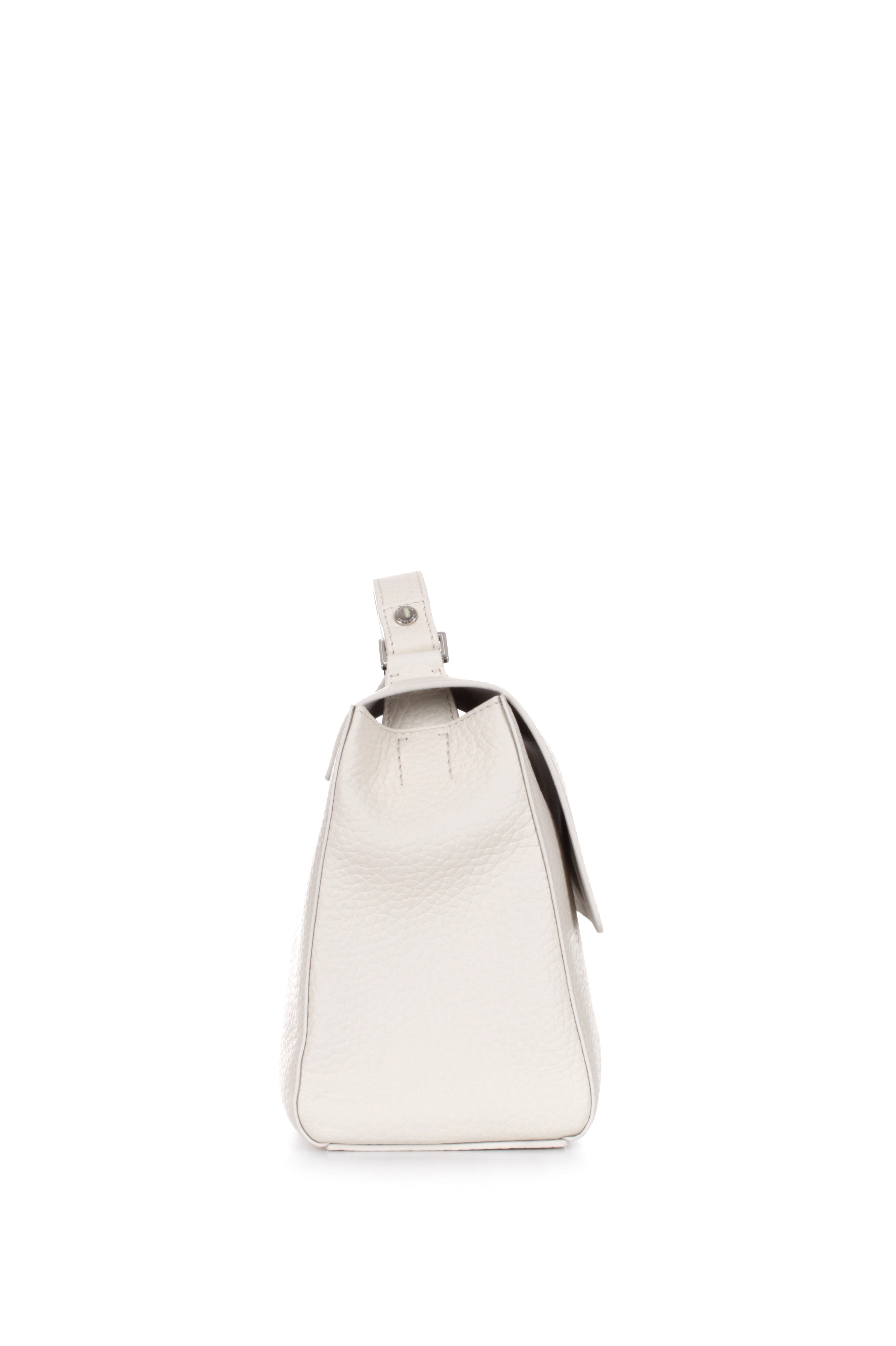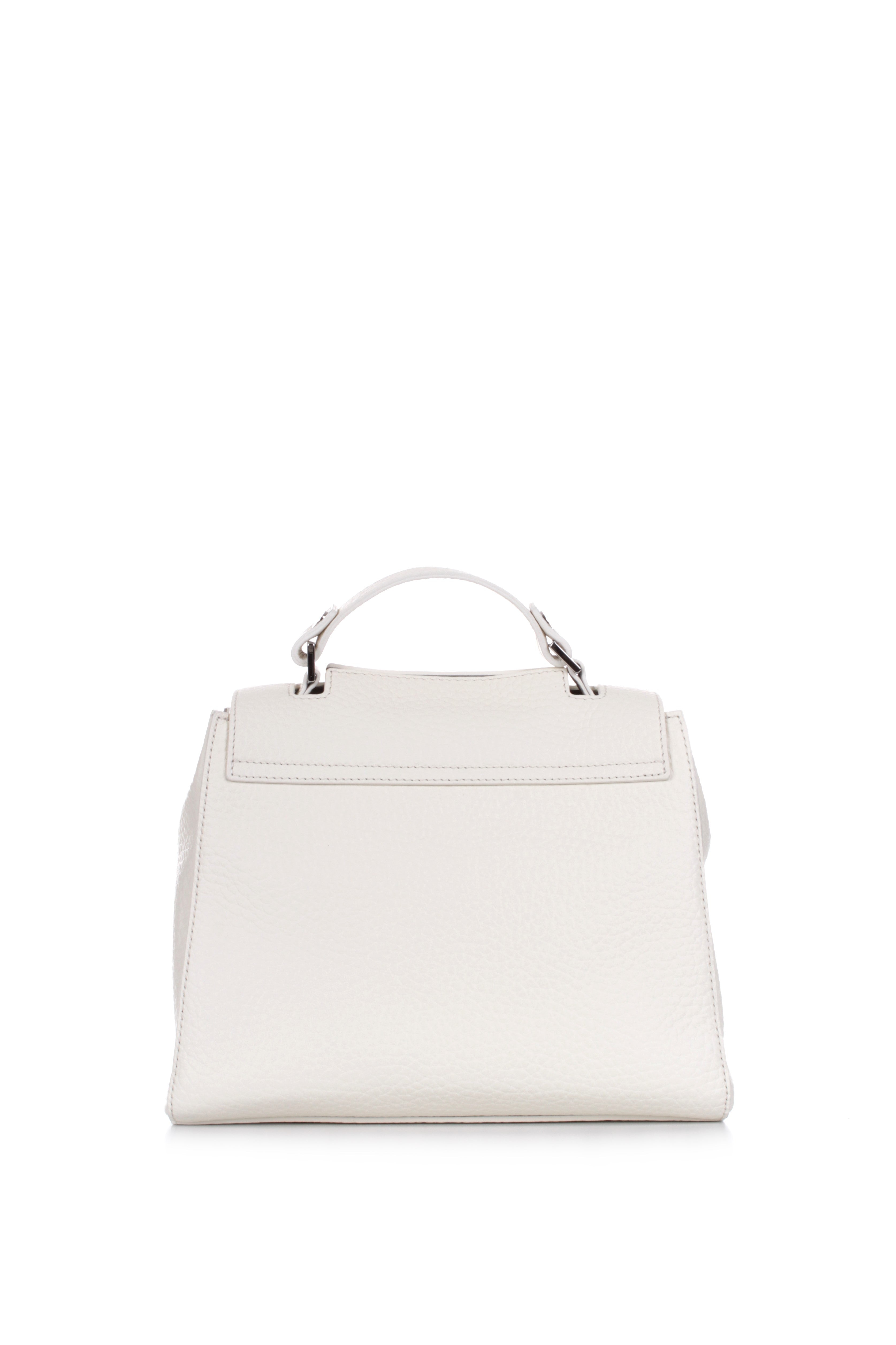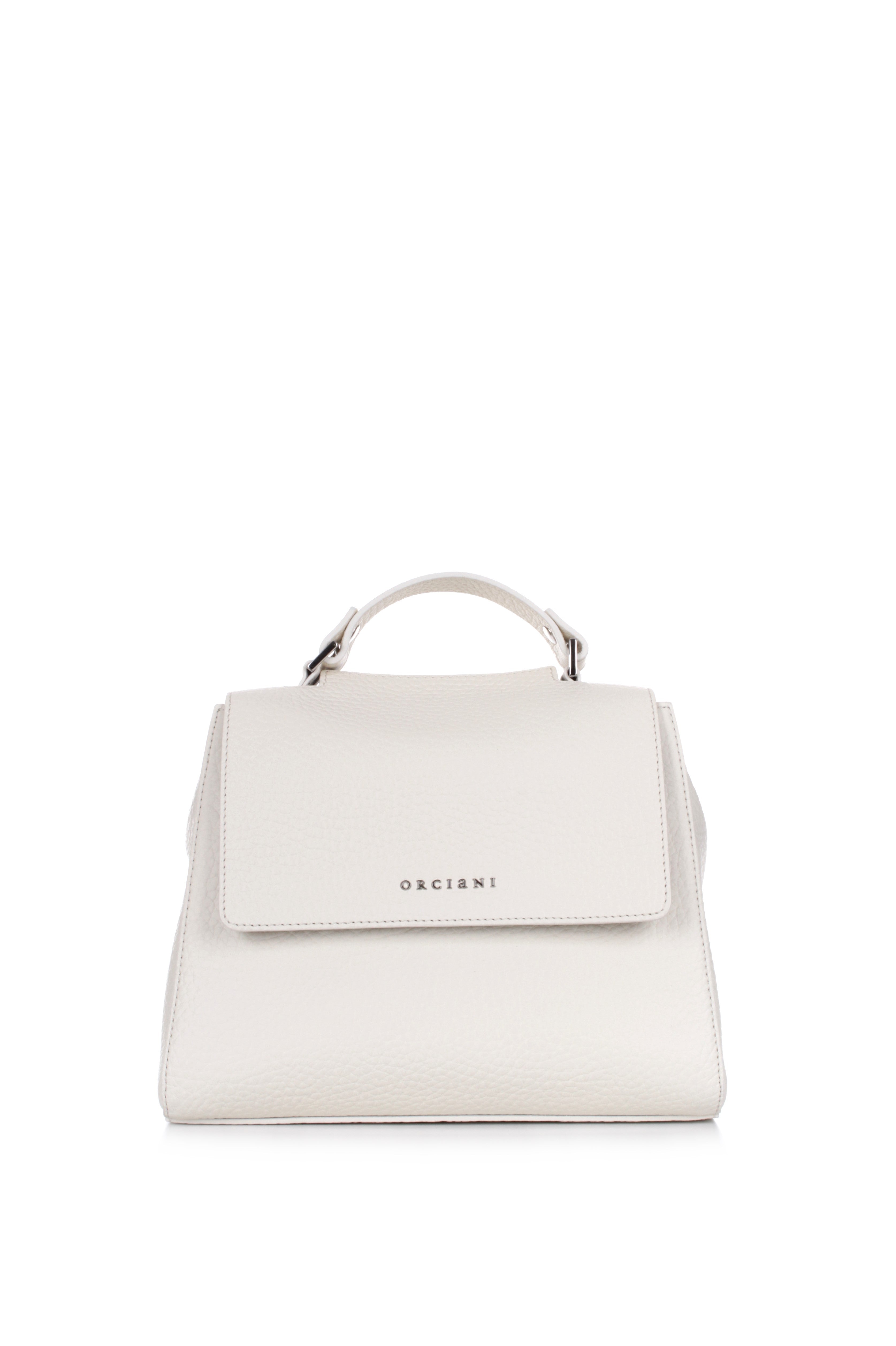 ORCIANI SVEVA SOFT SMALL HANDBAG IN WHITE HAMMERED LEATHER