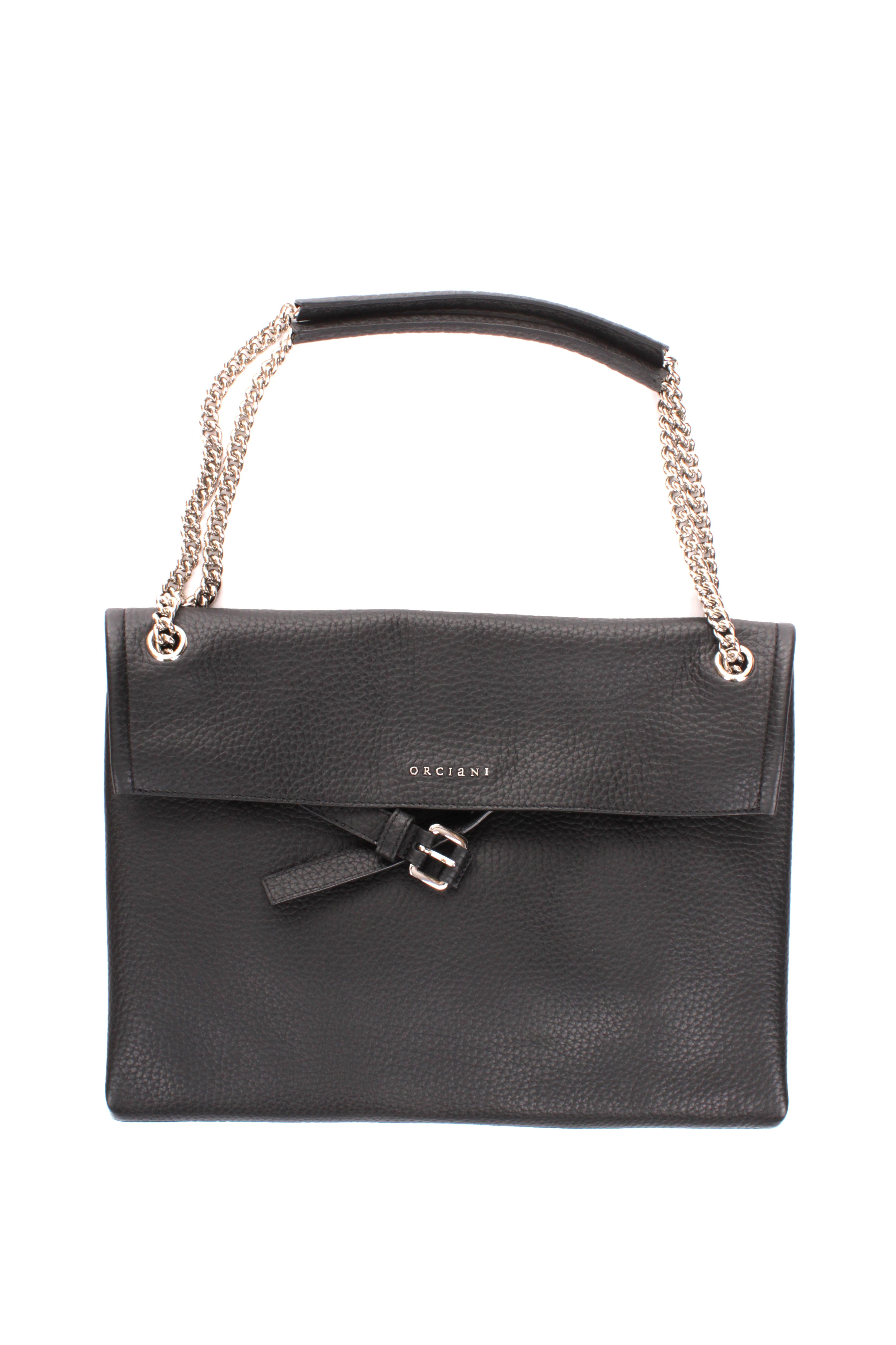 ORCIANI VENUS SOFT MIDI SHOULDER BAG IN BLACK HAMMERED LEATHER