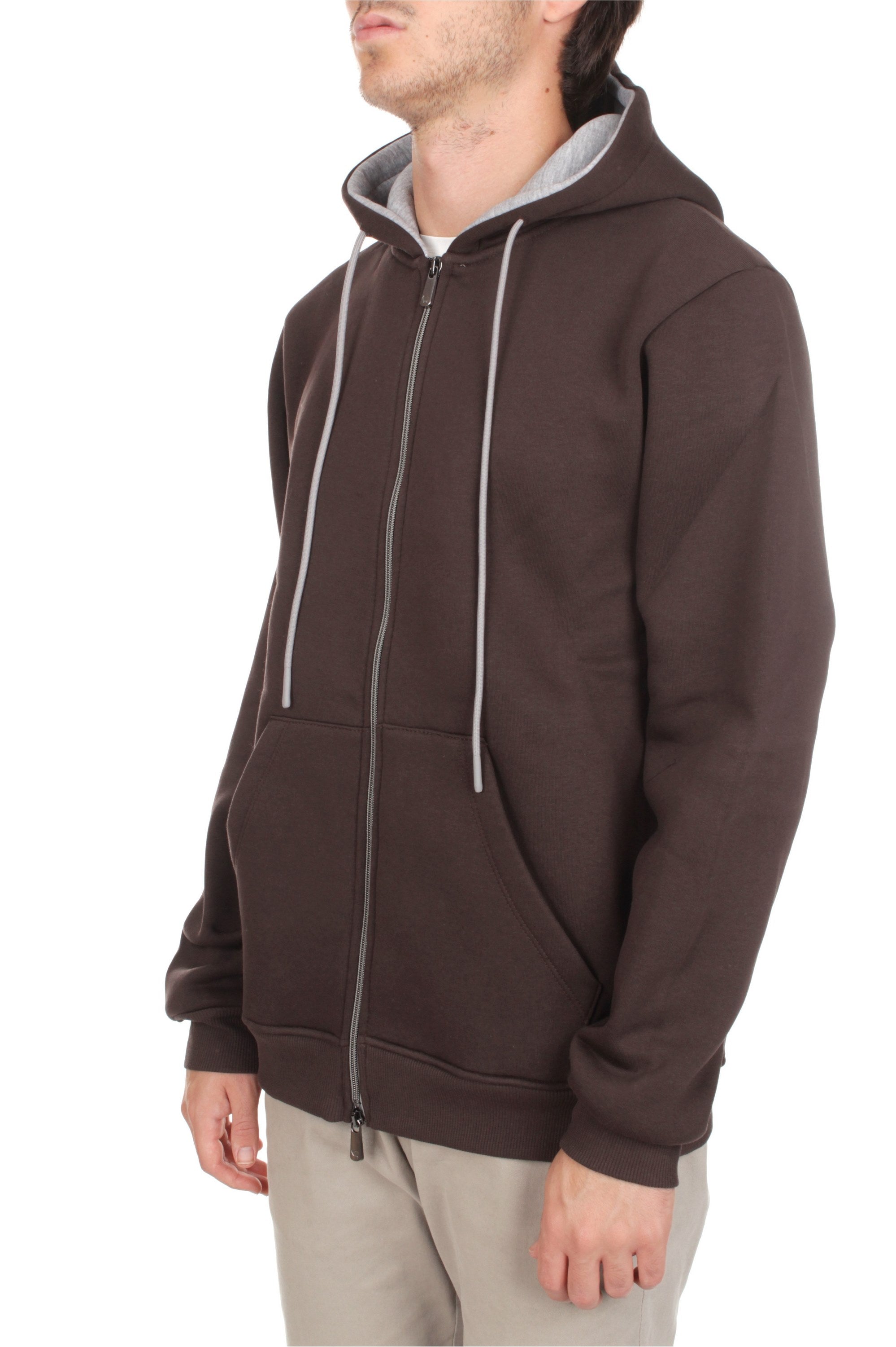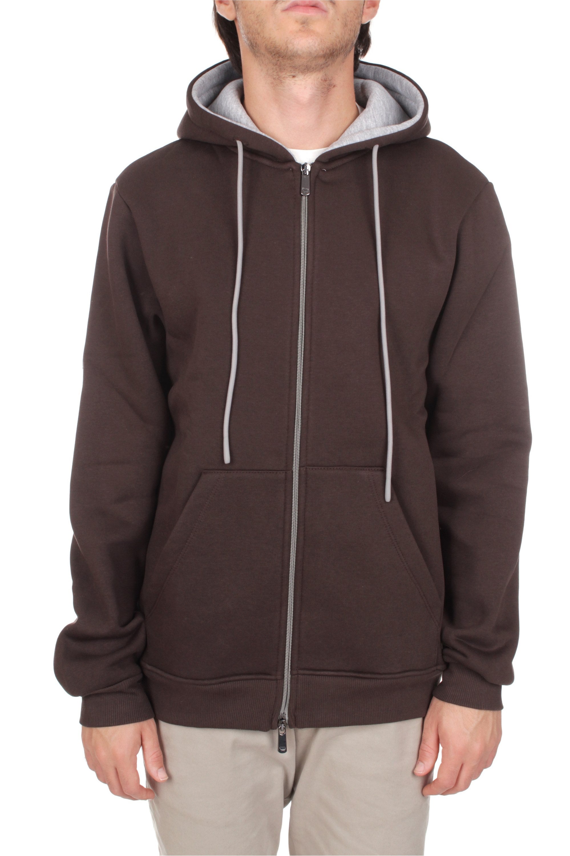 Detwelve chocolate hooded sweatshirt conveys effortless refinement and relaxed Italian style. Its warm brown tone enhances the premium feel of the 65% cotton and 35% polyester fabric, soft yet durable. Featuring a double-slider zip and side pockets, it combines practicality with modern design. The regular fit and brushed interior ensure all-day comfort and warmth. Entirely Made in Italy, this sweatshirt represents contemporary craftsmanship with understated elegance—perfect for both urban wear and leisure.