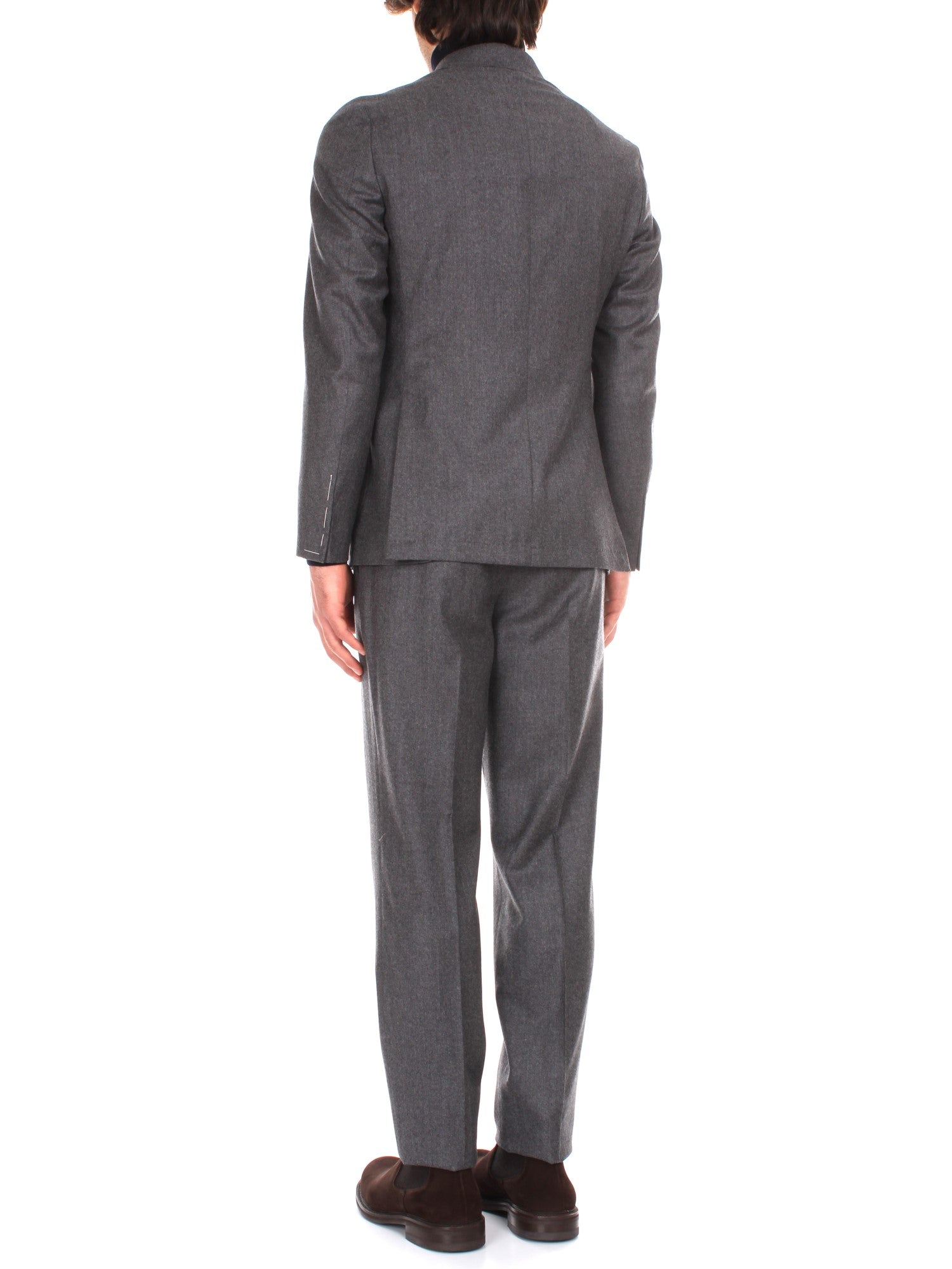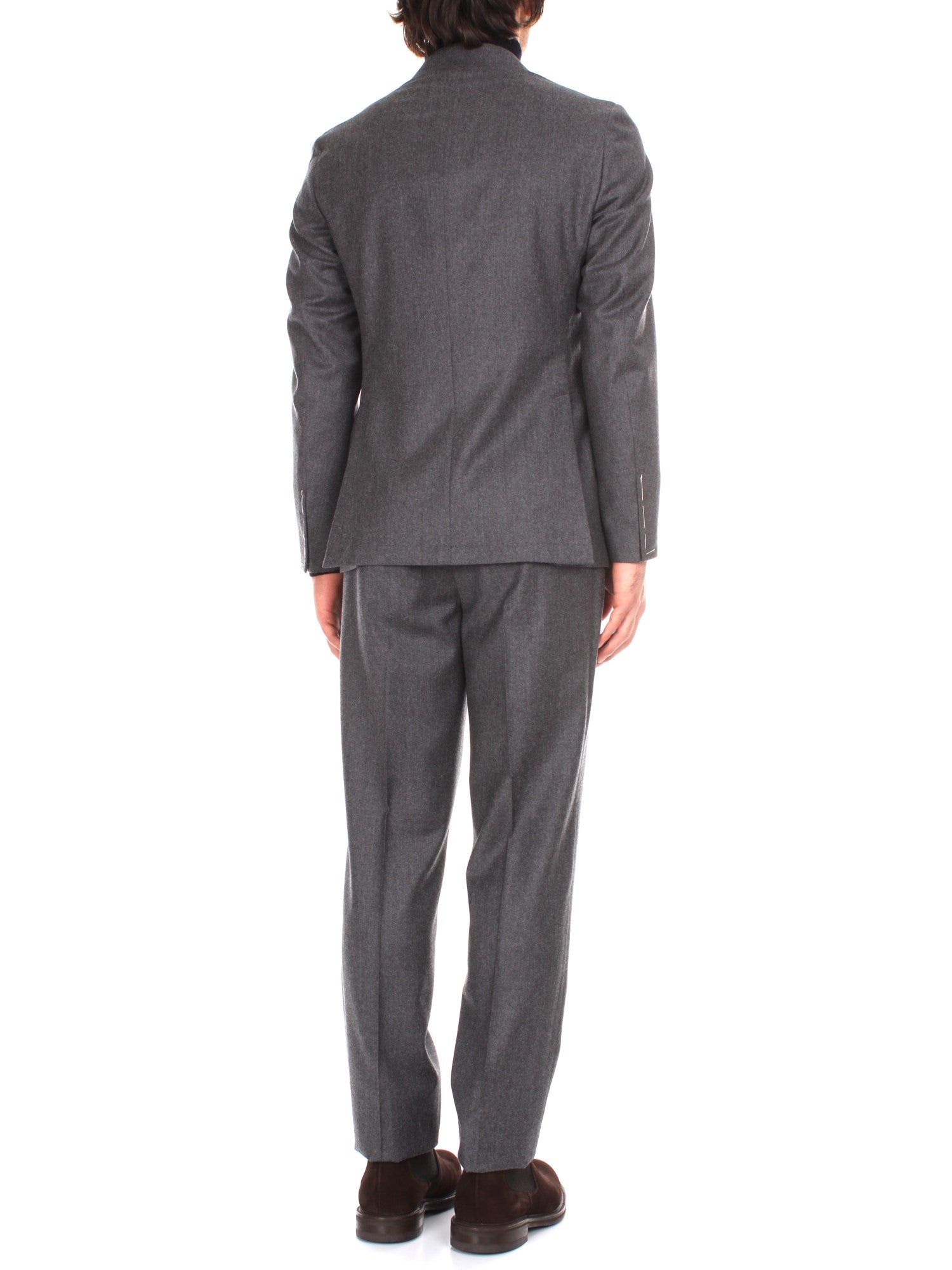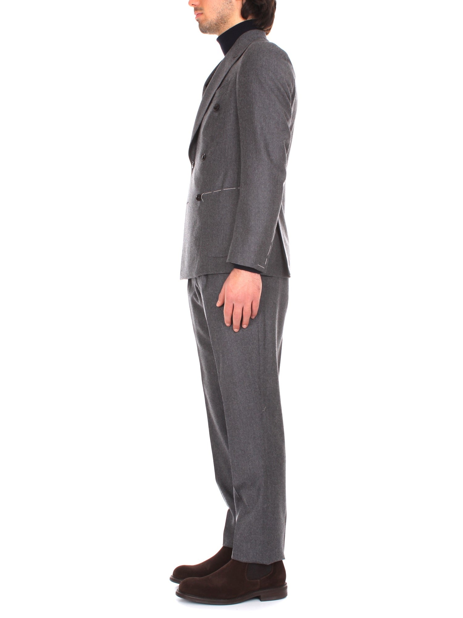 Michi D’Amato suit is made of 100% virgin wool. Double-breasted blazer features peak lapel, two patch side pockets and a welt pocket on the chest. Single-pince trousers feature zipper fly and button closure, two slant side pockets and two welt back pockets with button closure. Slim fit. Model is 180 cm tall and he wears size 48.