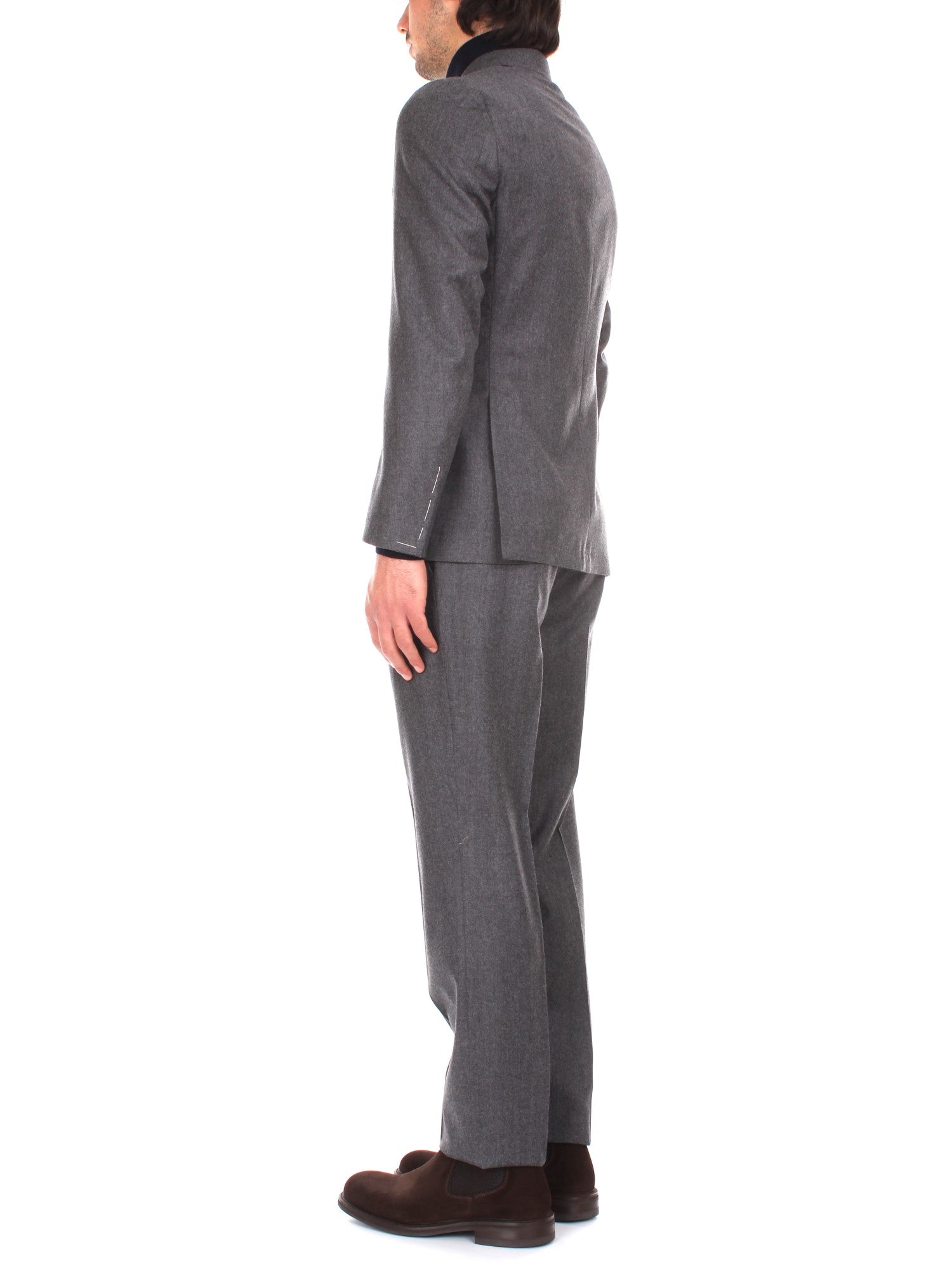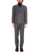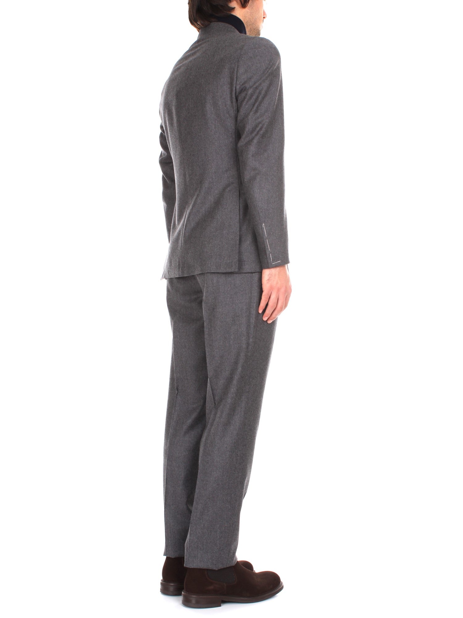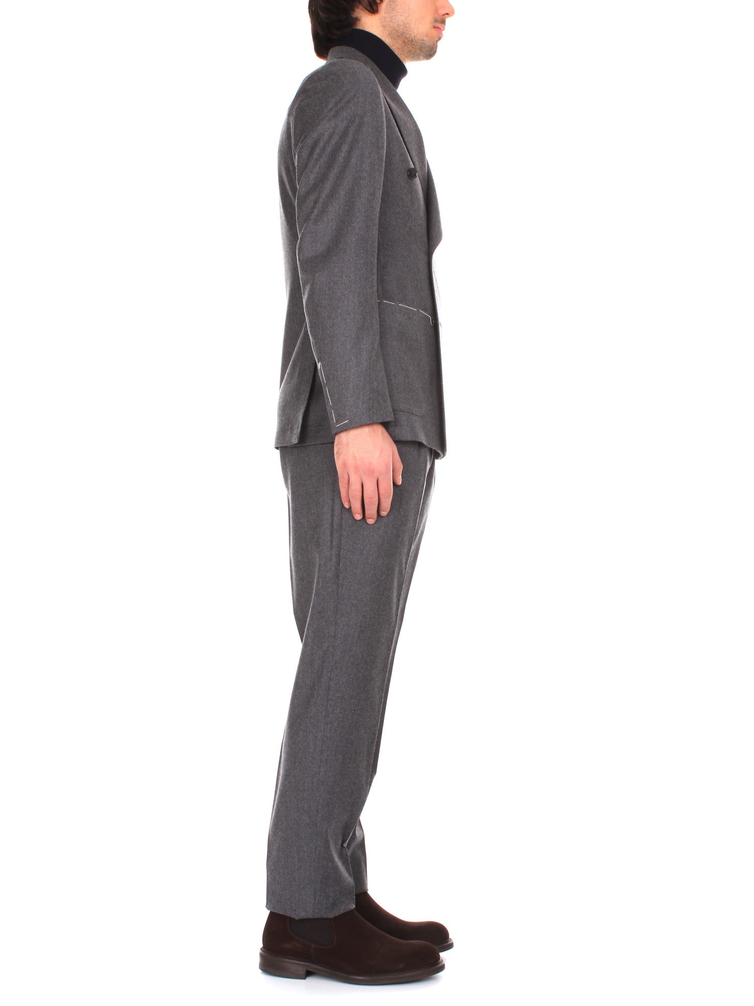Michi D’Amato suit is made of 100% virgin wool. Double-breasted blazer features peak lapel, two patch side pockets and a welt pocket on the chest. Single-pince trousers feature zipper fly and button closure, two slant side pockets and two welt back pockets with button closure. Slim fit. Model is 180 cm tall and he wears size 48.