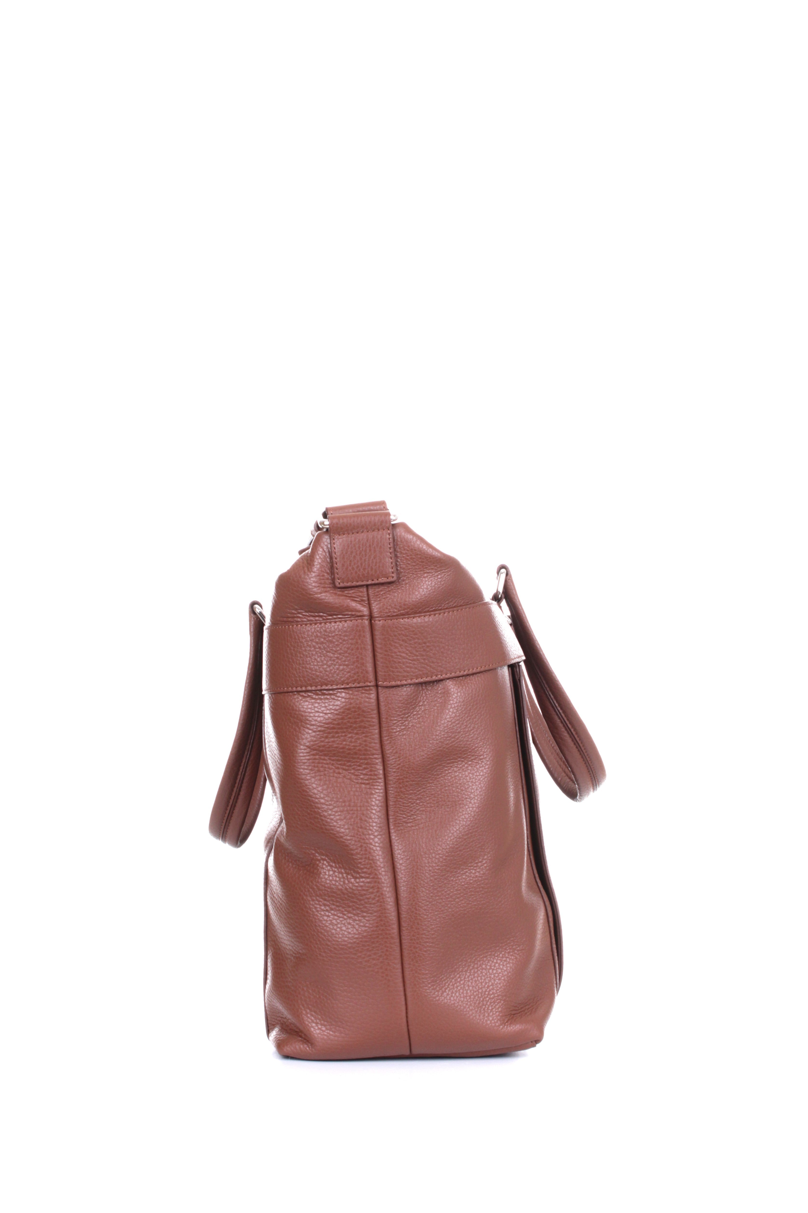 Orciani Micron crossbody and handbag is made of tumbled leather and features inside compartment with zip closure and organizer pockets, an external pocket with zip closure, detachable shoulder strap and brand logo on the front. Size: 40 cm x 36 cm x 18 cm. Made in Italy.