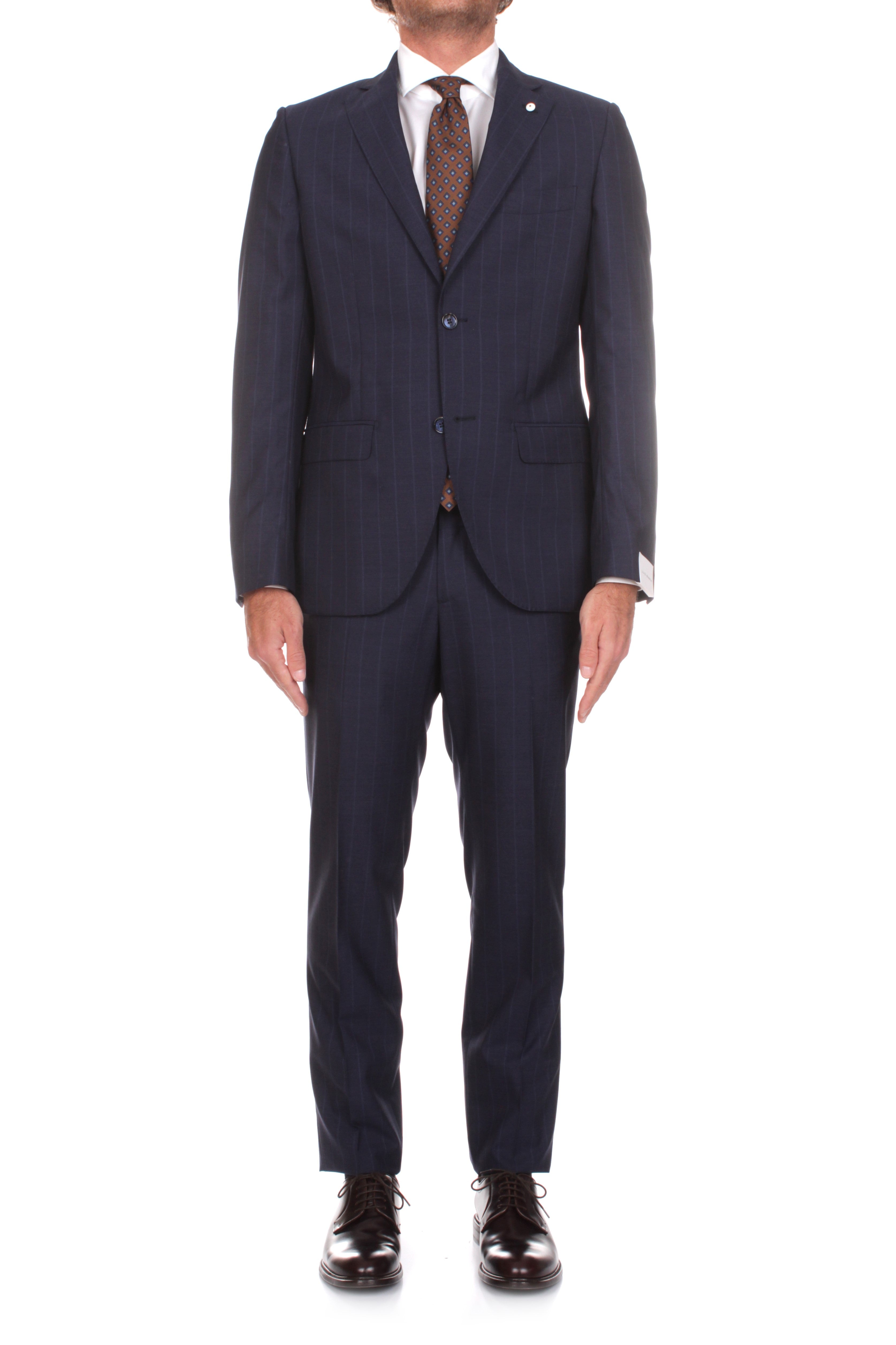 ABITO MONOPETTO LUIGI BIANCHI BLU GESSATO IN LANA VERGINE