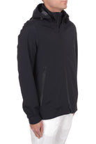 Il giubbino RRD Tech Pack è realizzato in poliammide 95% e elastane 5% e presenta la chiusura con zip doppio cursore, due tasche laterali con chiusura con zip, il cappuccio staccabile e la patch con il logo del brand sulla manica sinistra. Vestibilità slim. Il modello è alto 180 cm e indossa la taglia 48.
