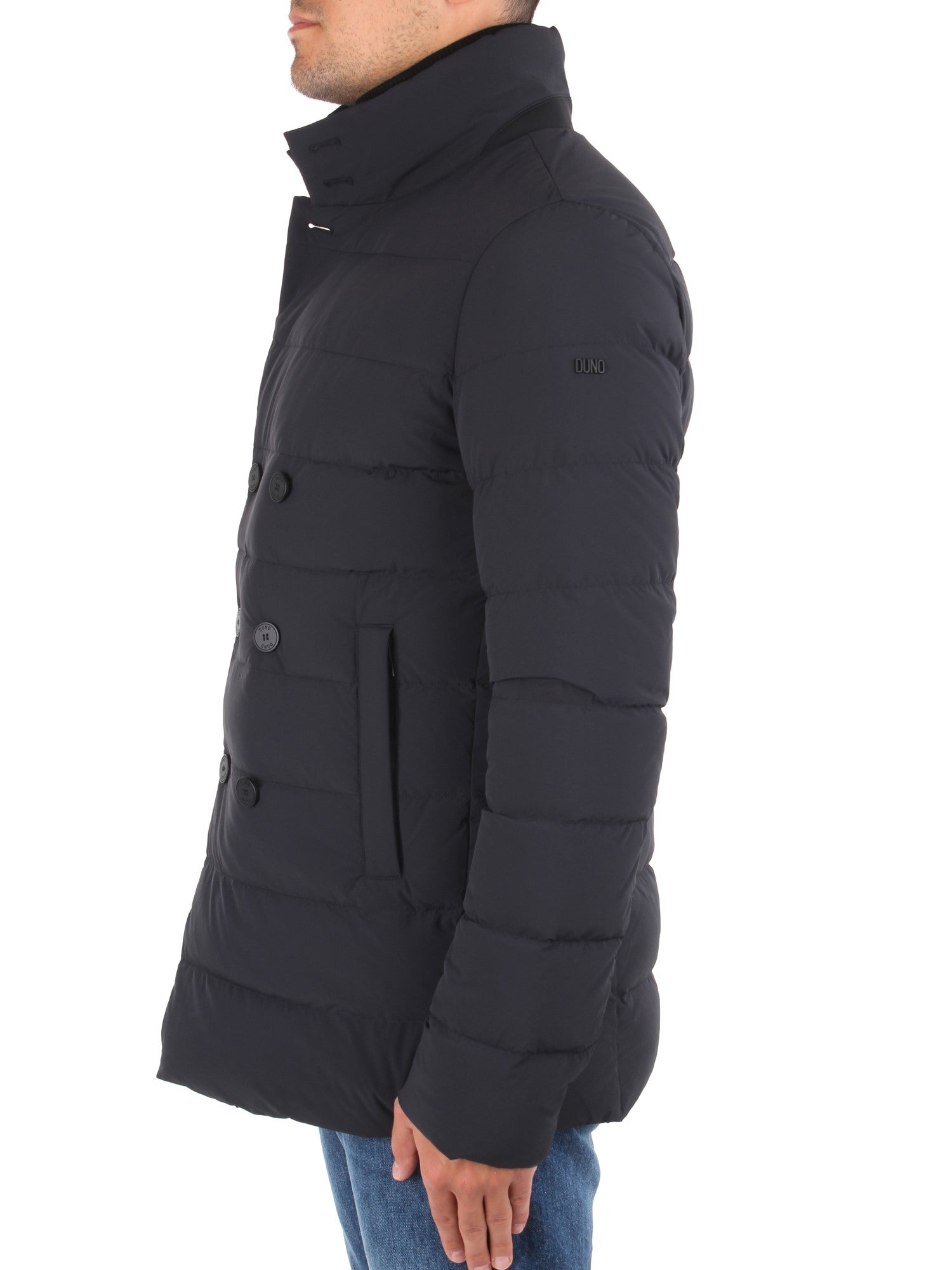 Il piumino Duno Grey Licosa è realizzato in poliammide 83% e elastane 17% e presenta l'imbottitura in piumino d’anatra staccabile, la chiusura con zip e bottoni, due tasche laterali con chiusura con zip e la patch con il logo del brand sulla manica sinistra. Vestibilità slim. Il modello è alto 180 cm e indossa la taglia 48.