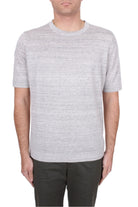 La t-shirt girocollo maniche corte Arrows è realizzata in lino 73% e cotone 27%. Vestibilità slim. Il modello è alto 180 cm e indossa la taglia 48. Made in Italy.